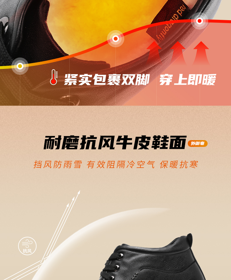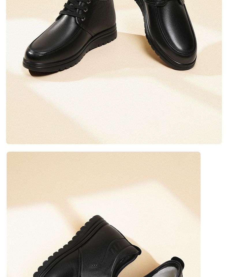 Red Dragonfly Men's Cotton Shoes Winter Men's Shoes Wool Genuine Leather High-Top Fleece-Lined Leather Shoes Middle-Aged and Elderly Warm Dad Shoes