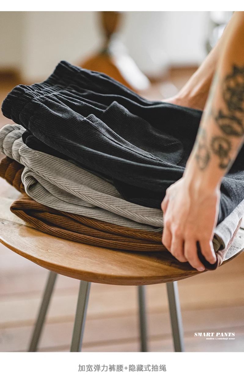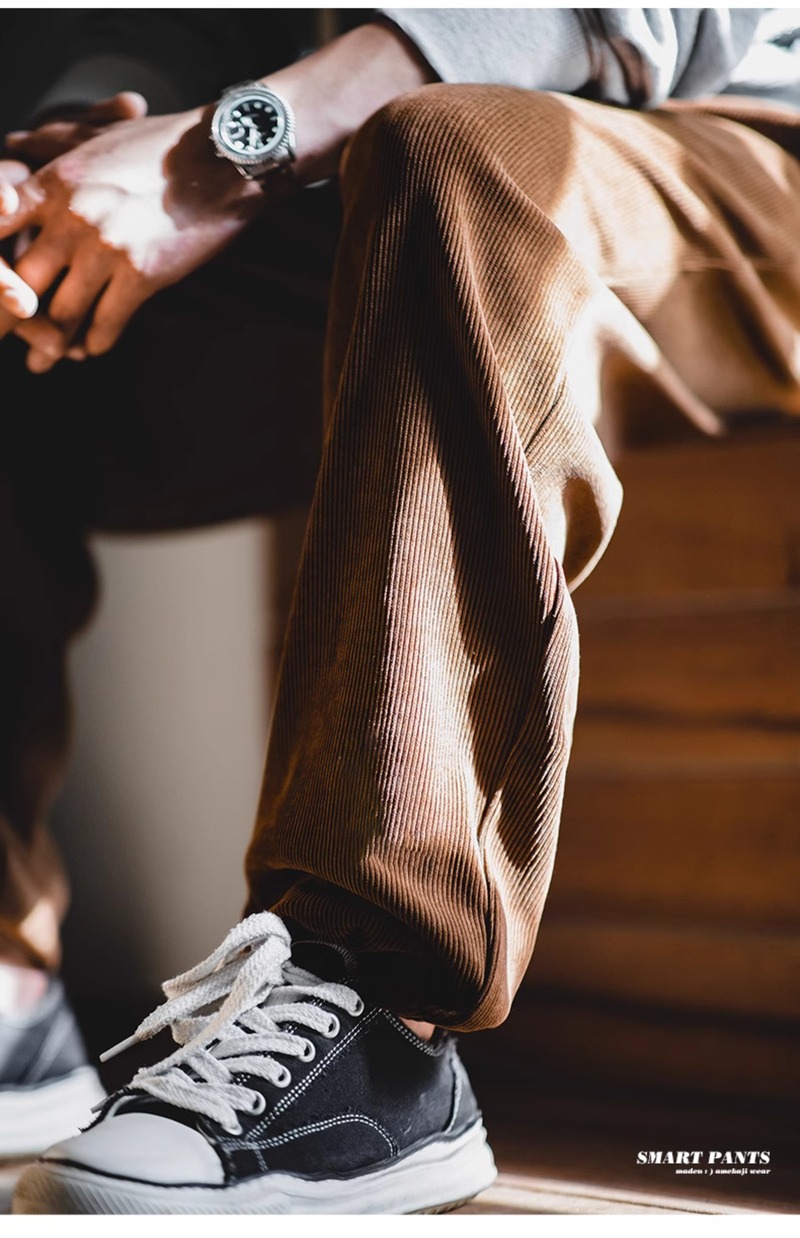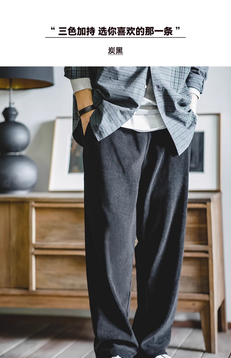 Madden Workwear American Casual Chenille Drape Smart Straight-Leg Pants Imitation Corduroy Melard Pants for Men Autumn