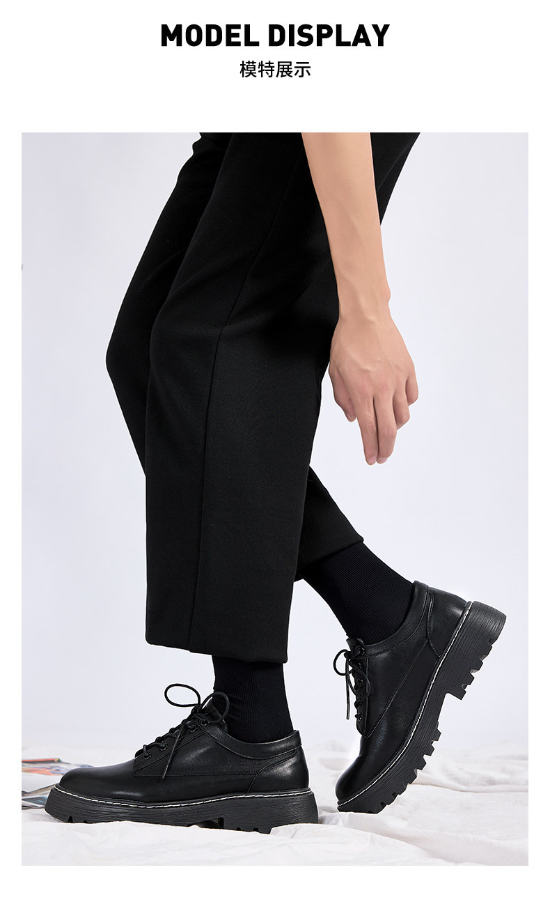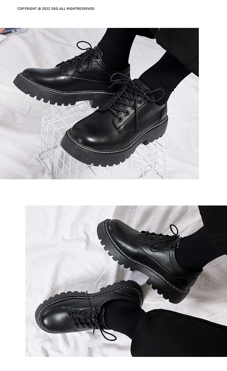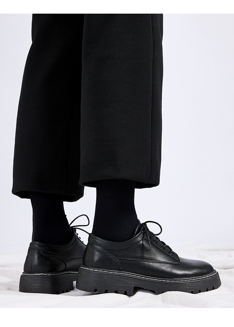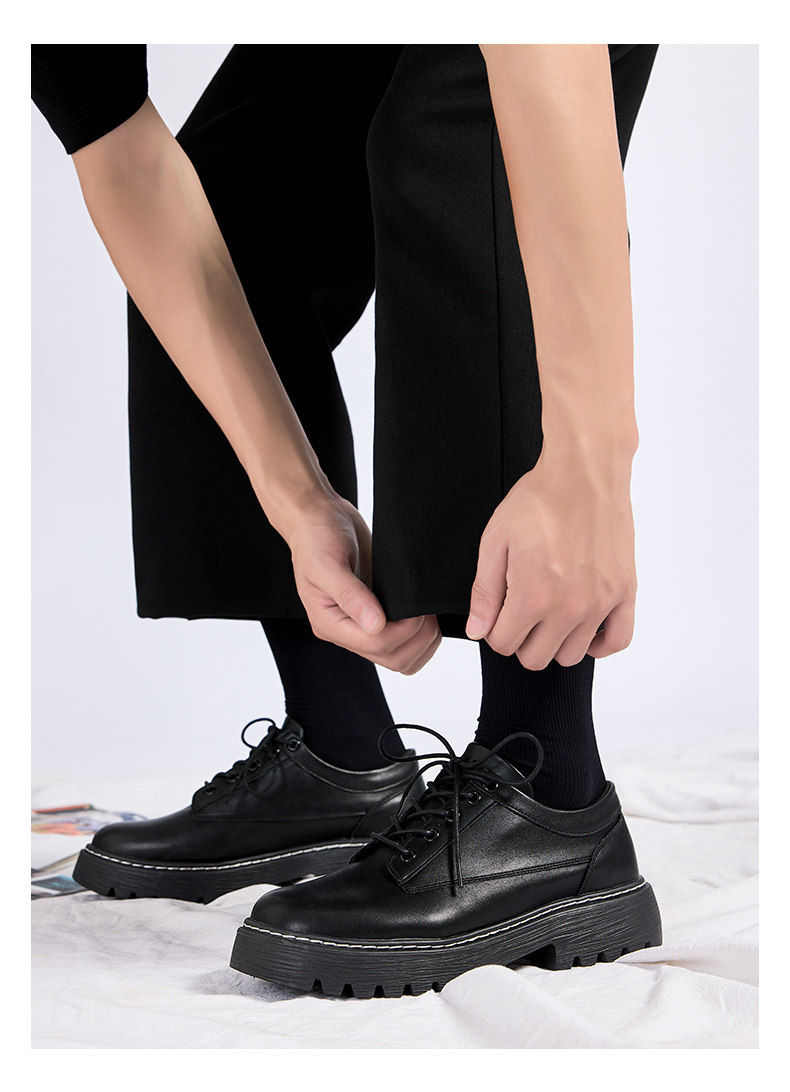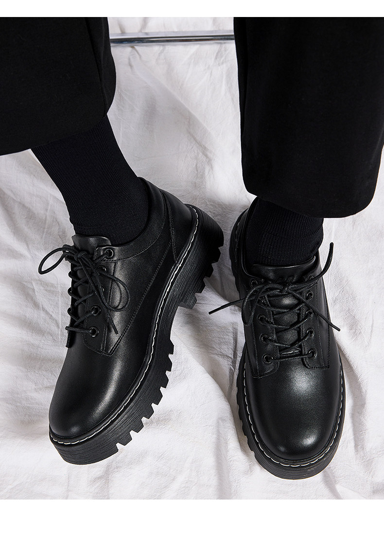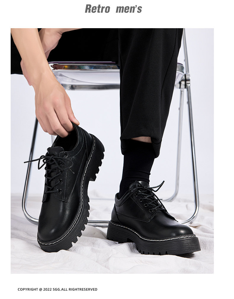 Pull-Back Leather Shoes for Men, British Style, 2026 Spring New Model, Men's Wedding Casual Thick-Soled Round-Toe Black Derby Shoes