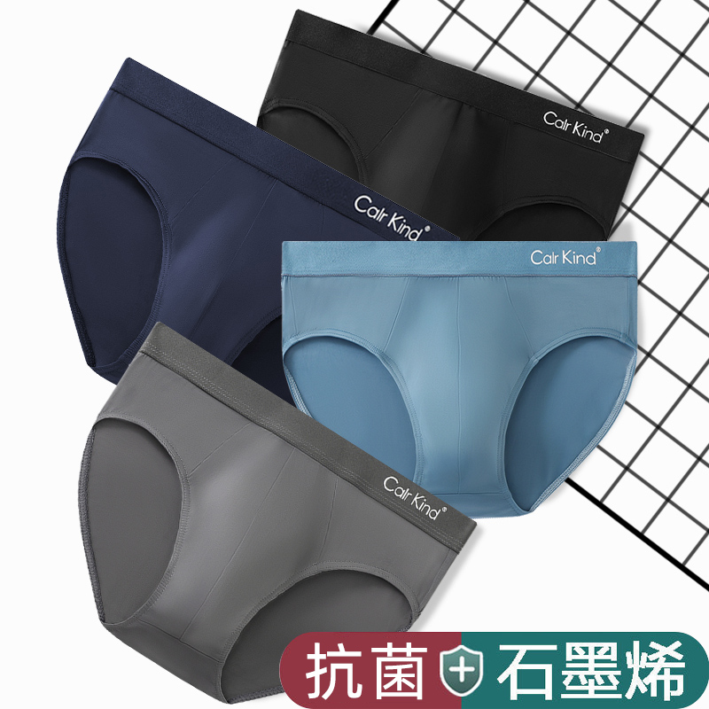 Men briefs head Ice Silk summer thin graphene or cotton bamboo charcoal enlarged mid-waist youth underpants head