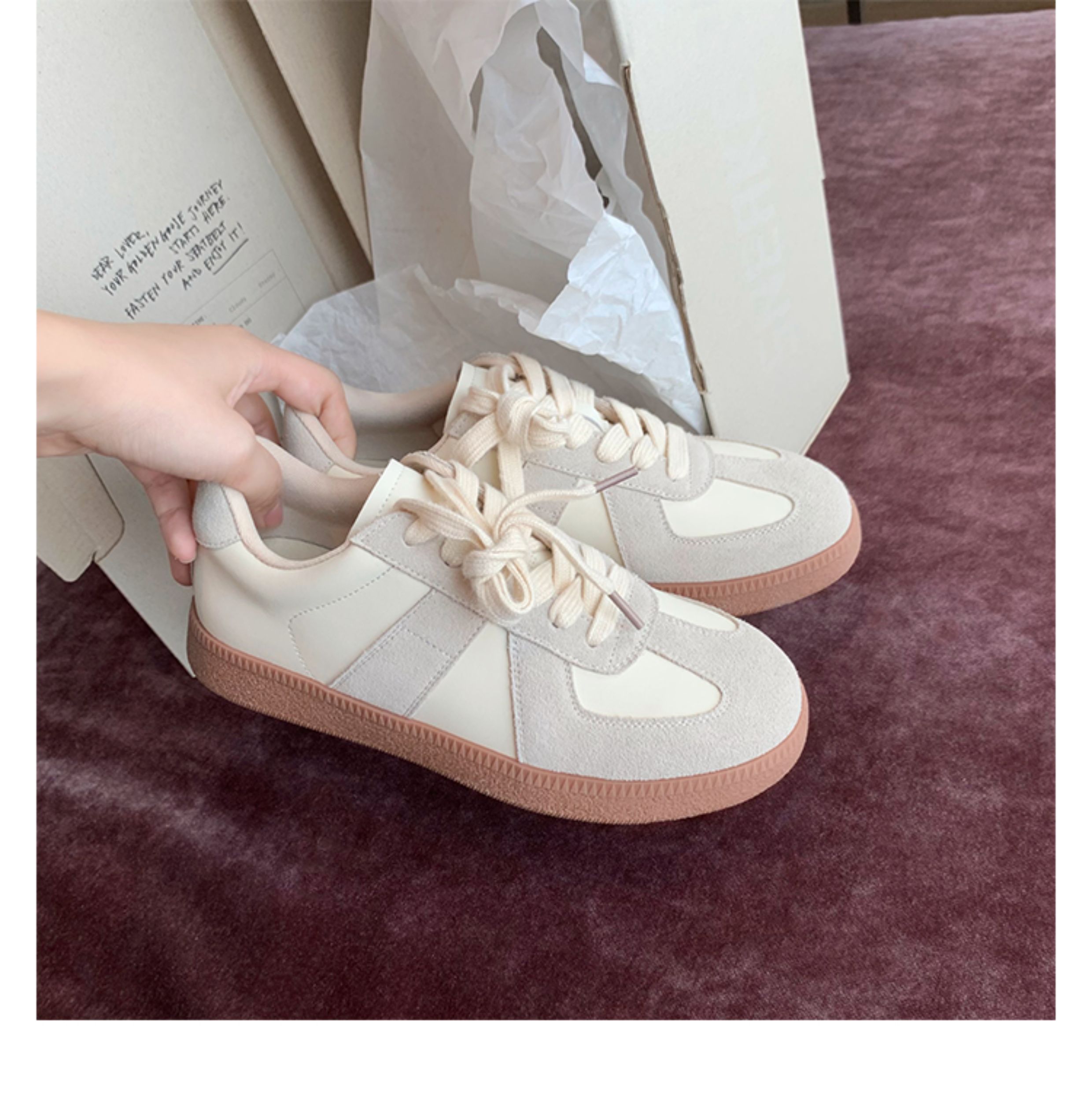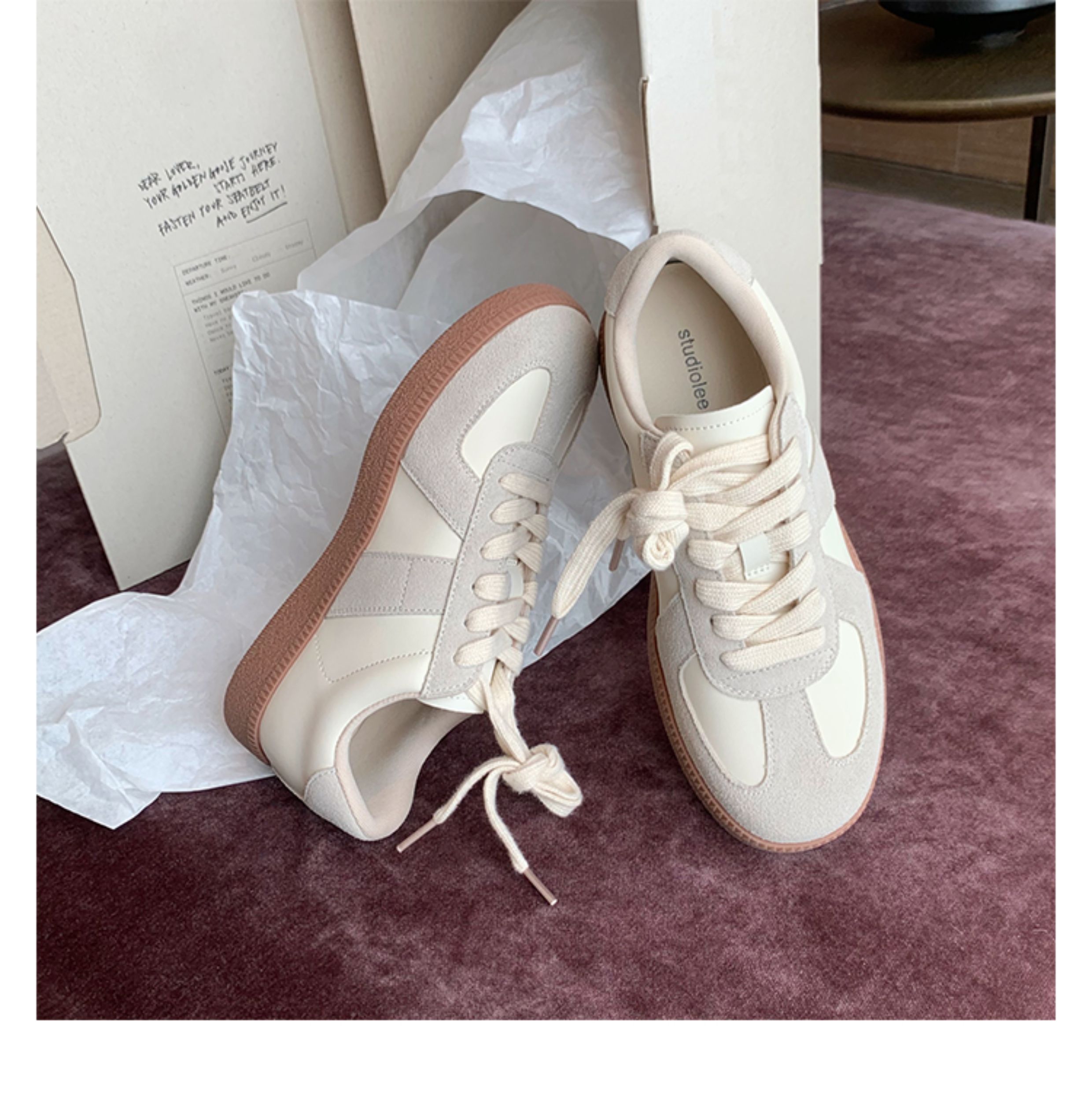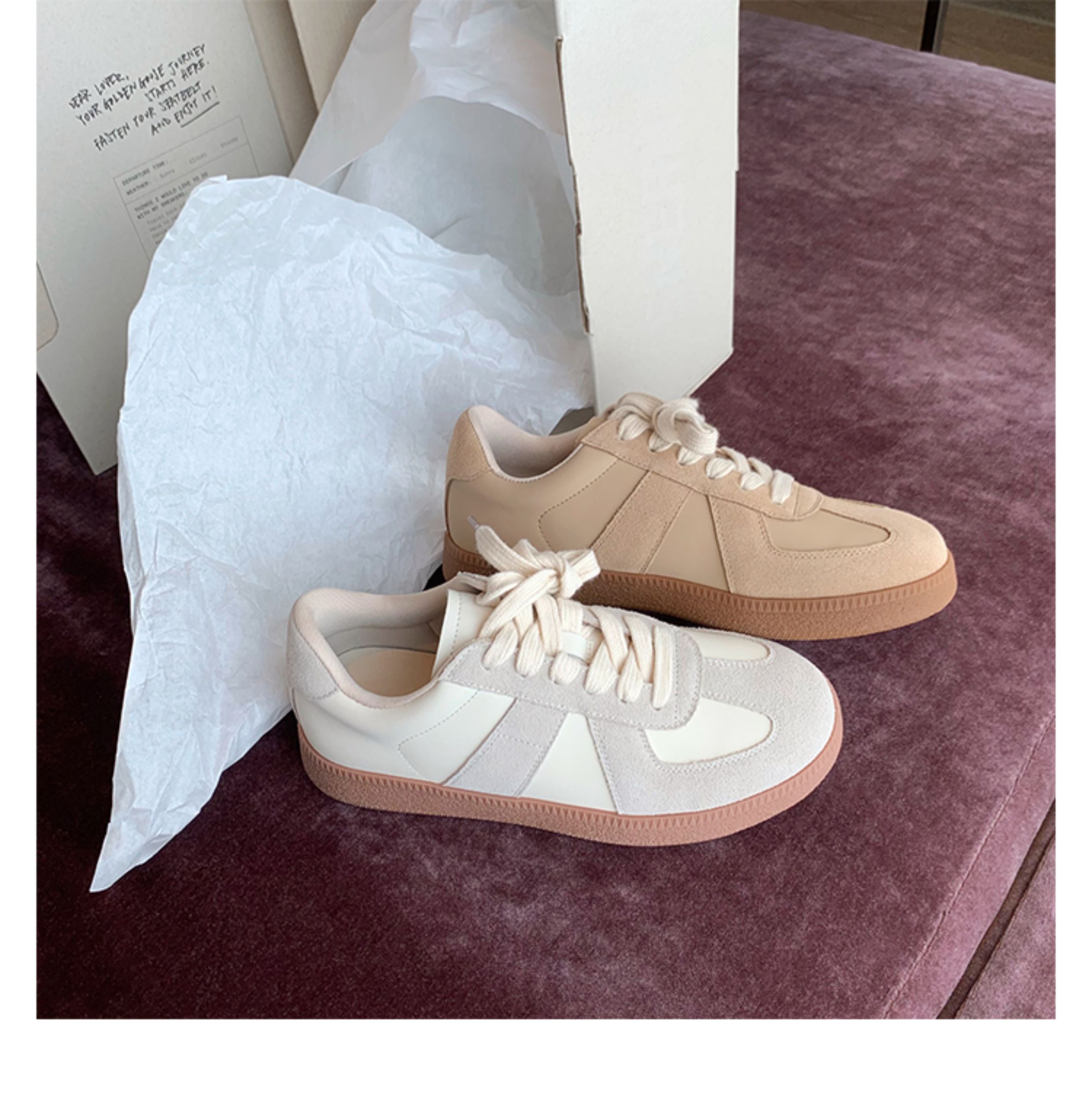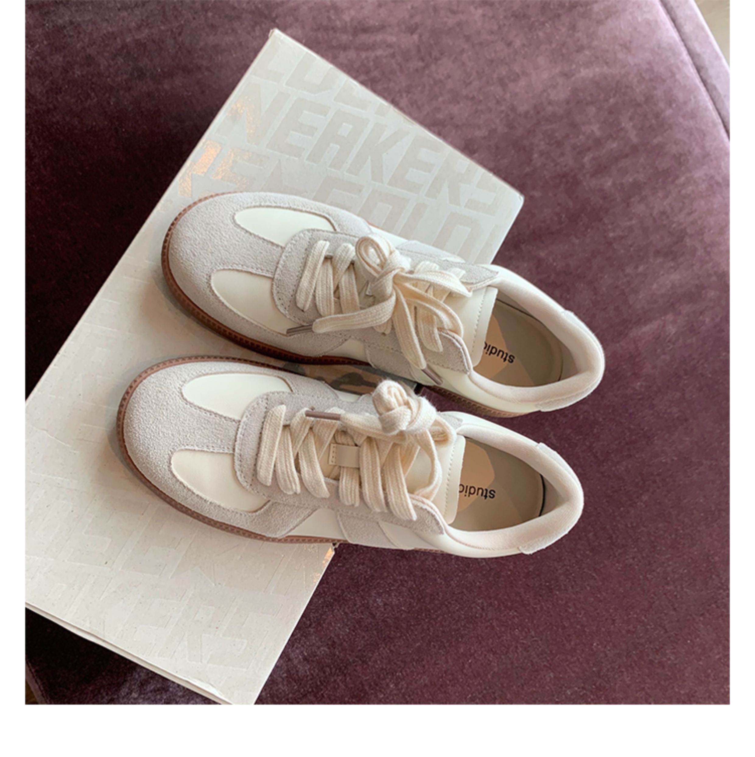Grape Mom Studiolee Retro Hong Kong Style Round-Toe Color-Block Casual Sneakers Lace-Up German Training White Shoes for Women Spring and Autumn
