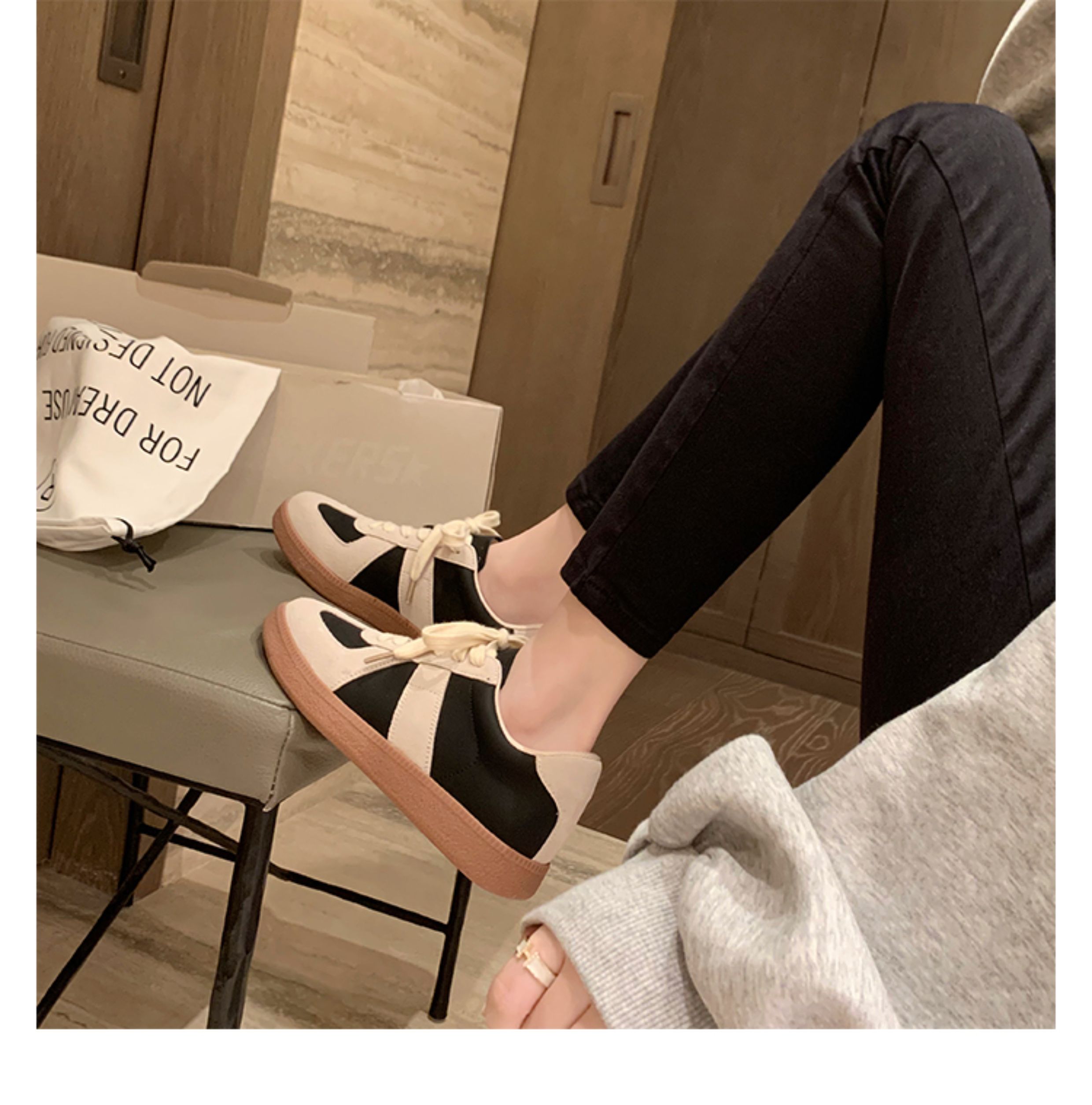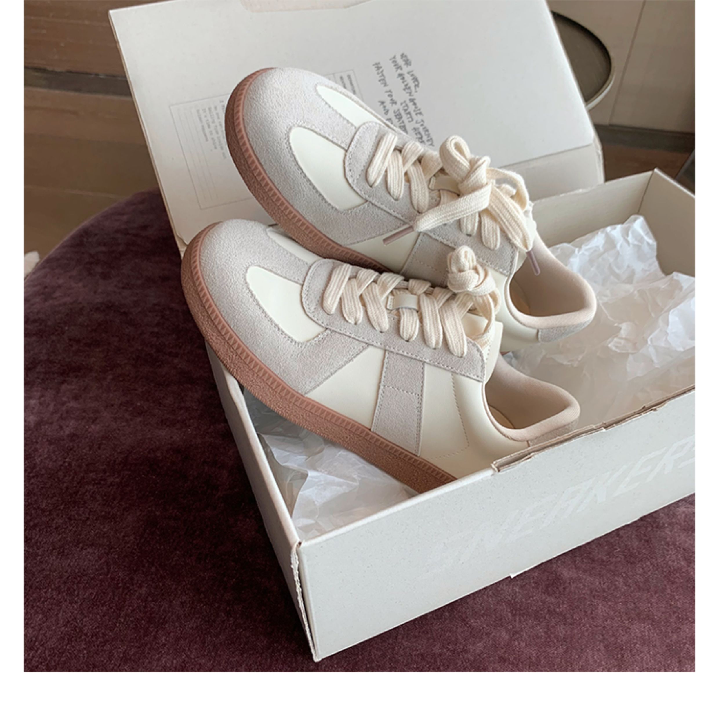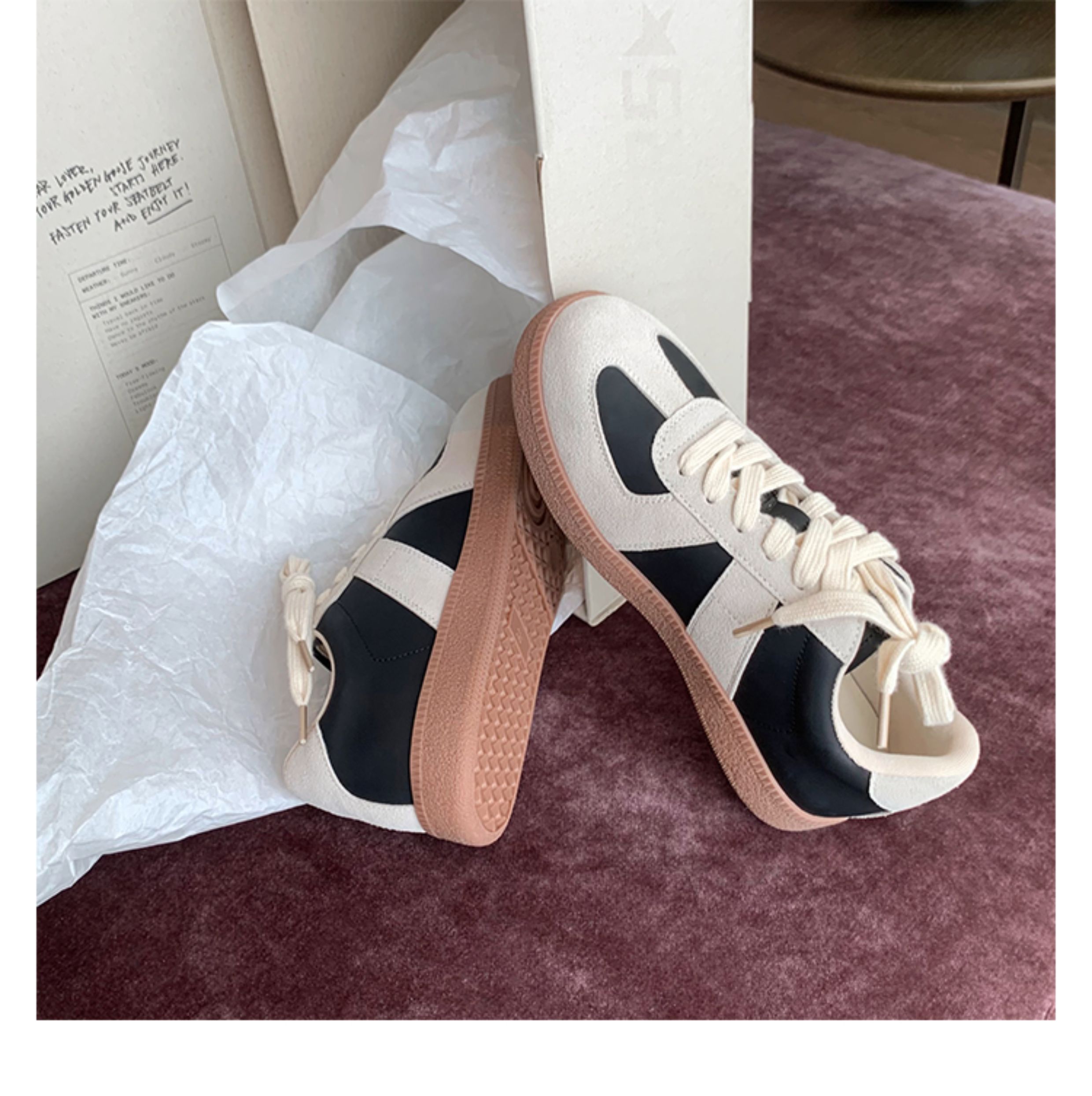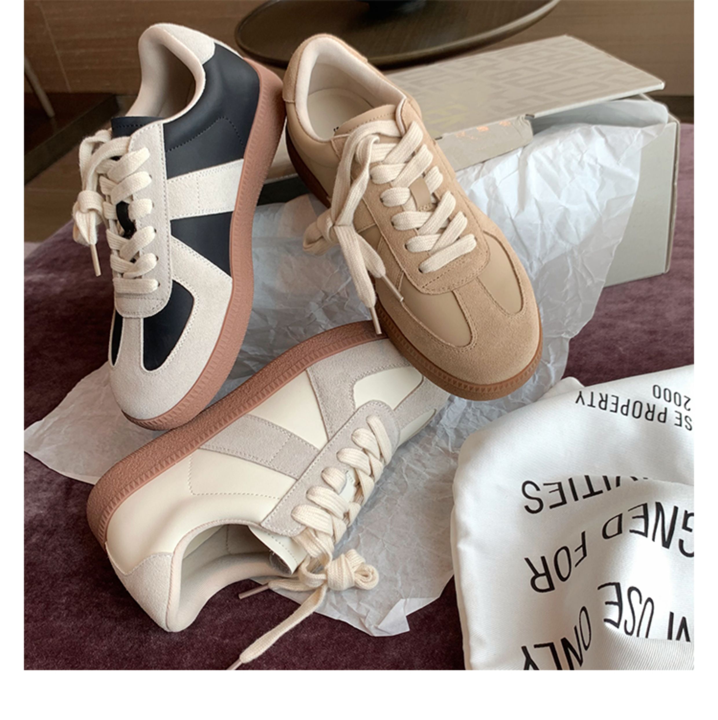 Grape Mom Studiolee Retro Hong Kong Style Round-Toe Color-Block Casual Sneakers Lace-Up German Training White Shoes for Women Spring and Autumn