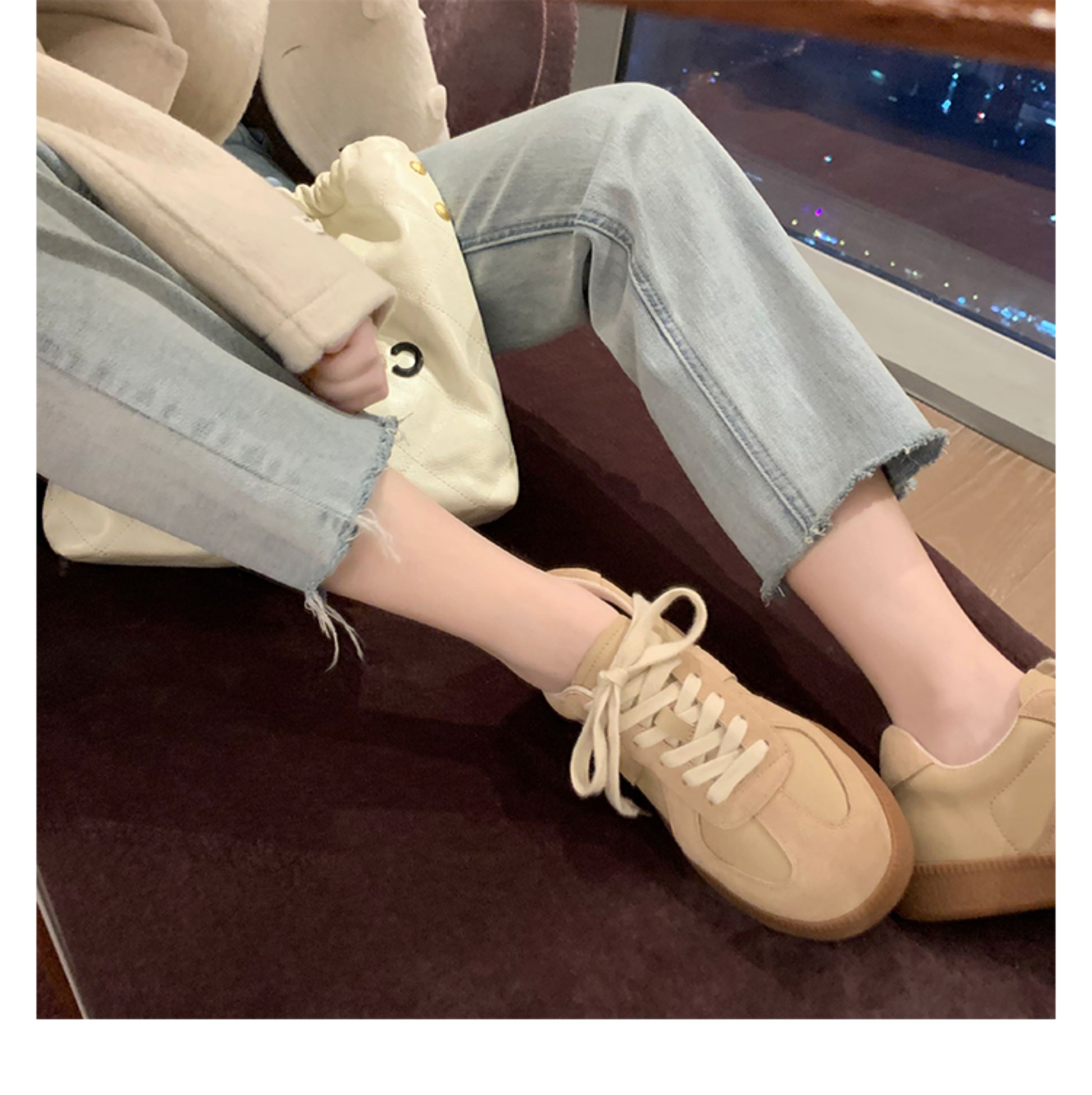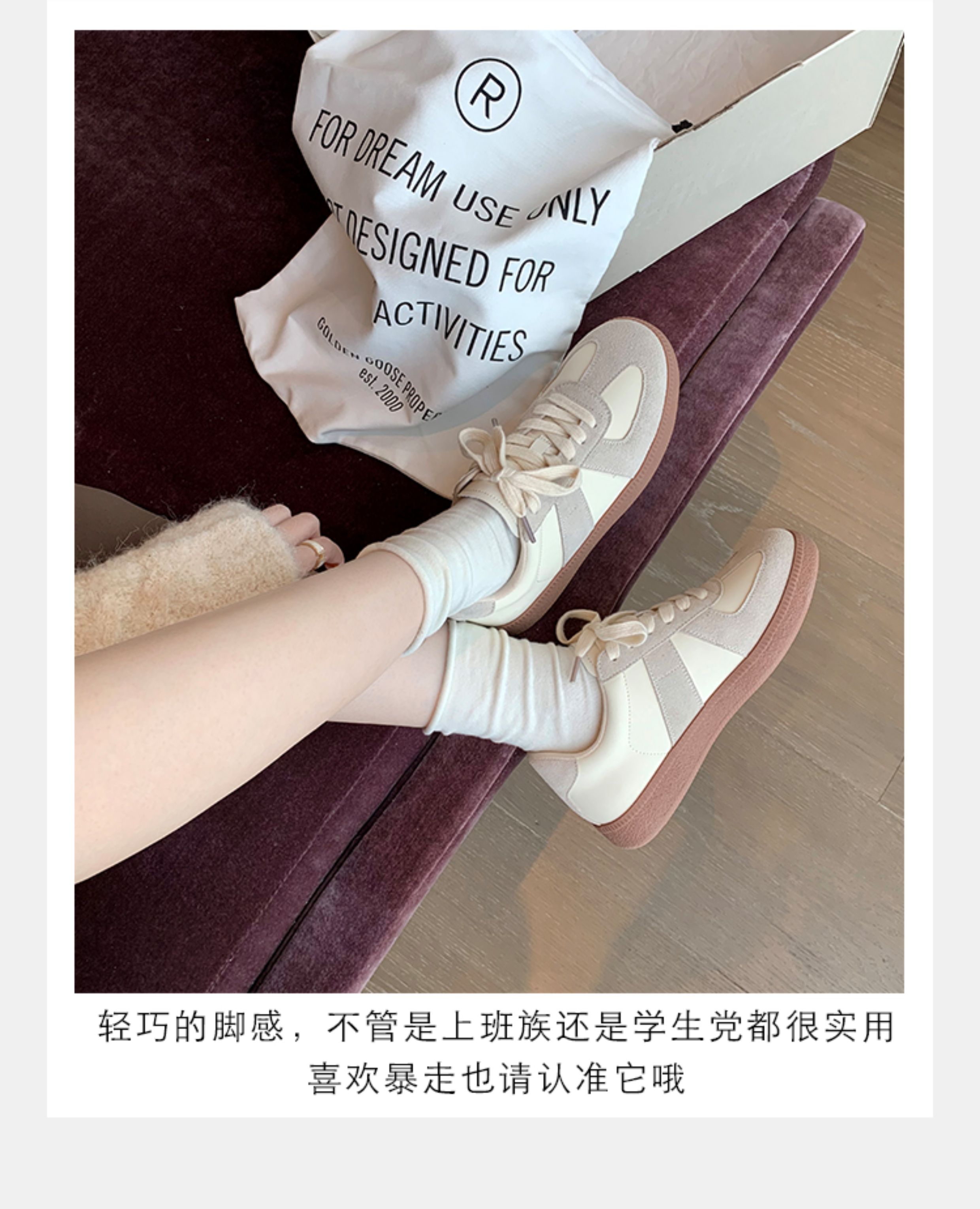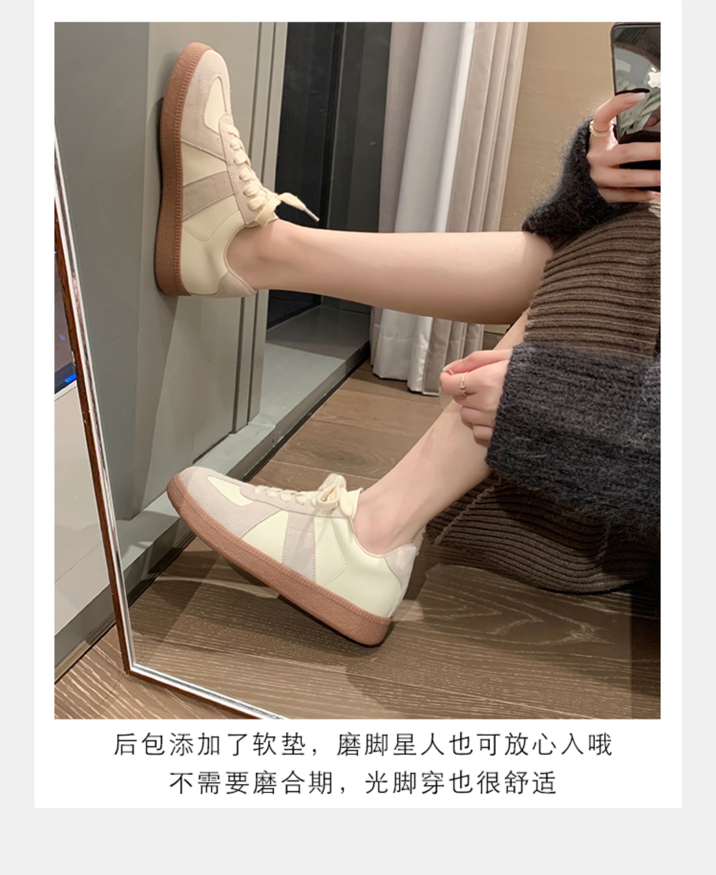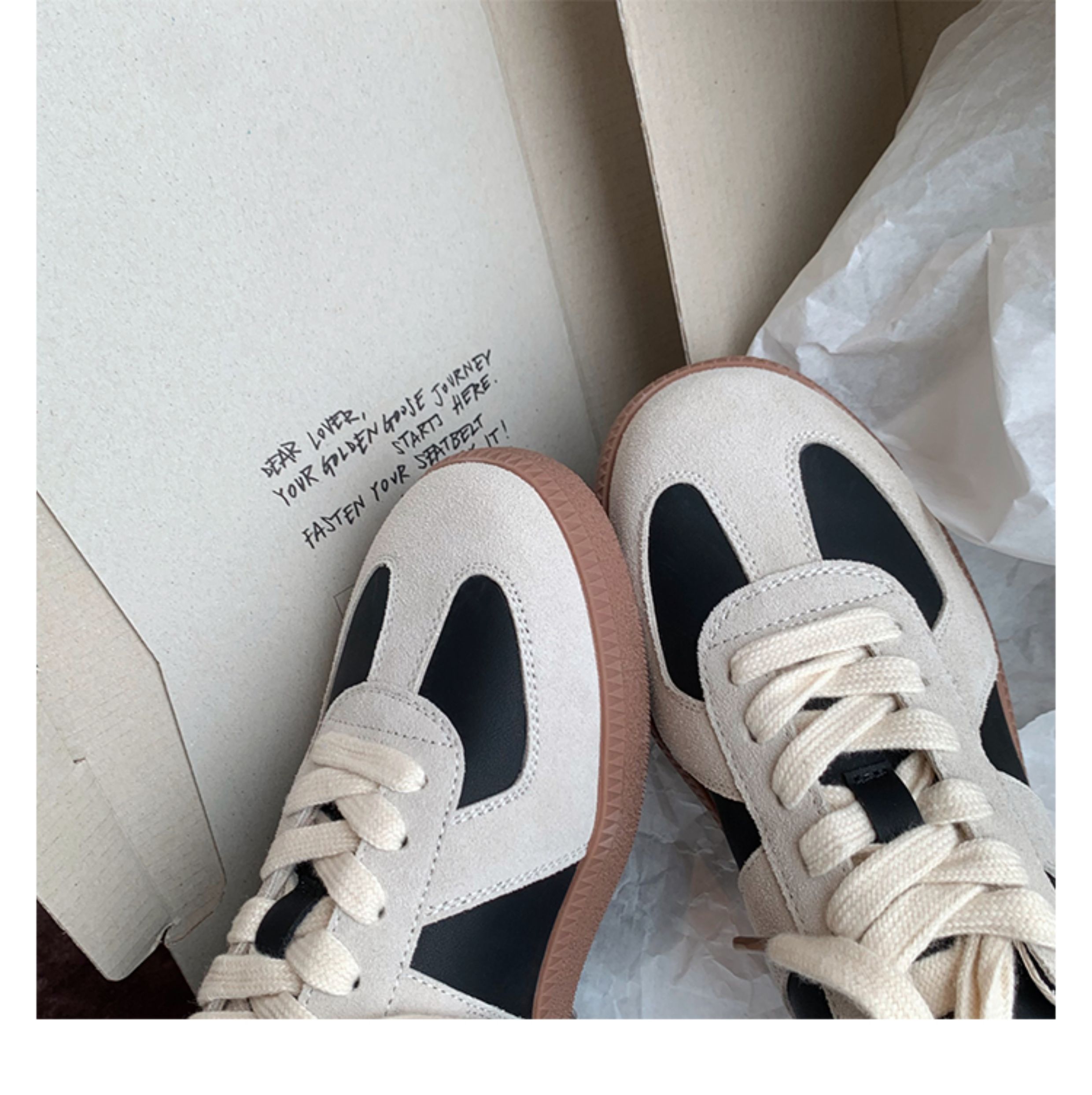 Grape Mom Studiolee Retro Hong Kong Style Round-Toe Color-Block Casual Sneakers Lace-Up German Training White Shoes for Women Spring and Autumn