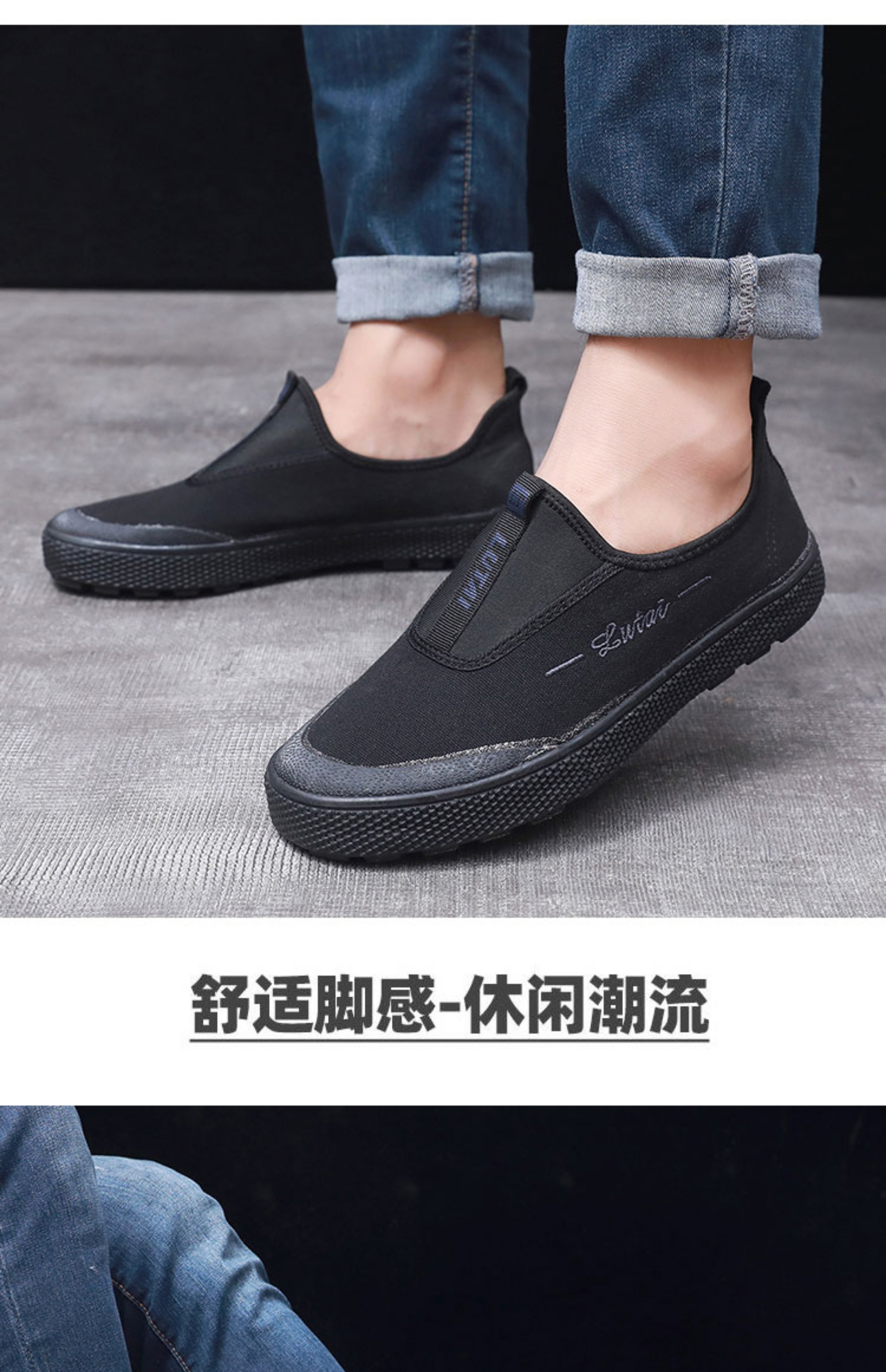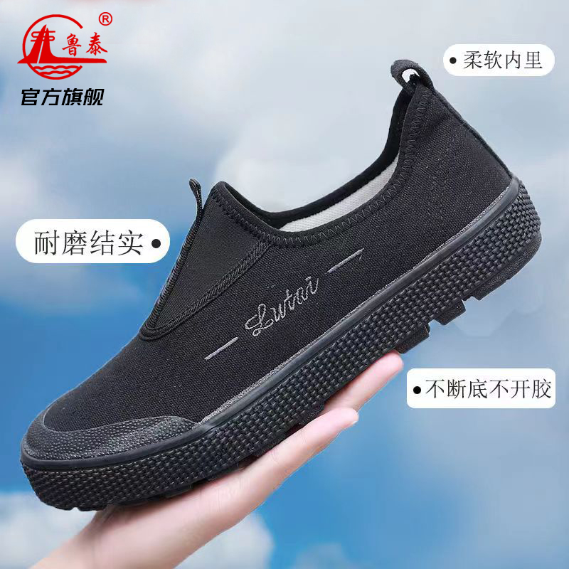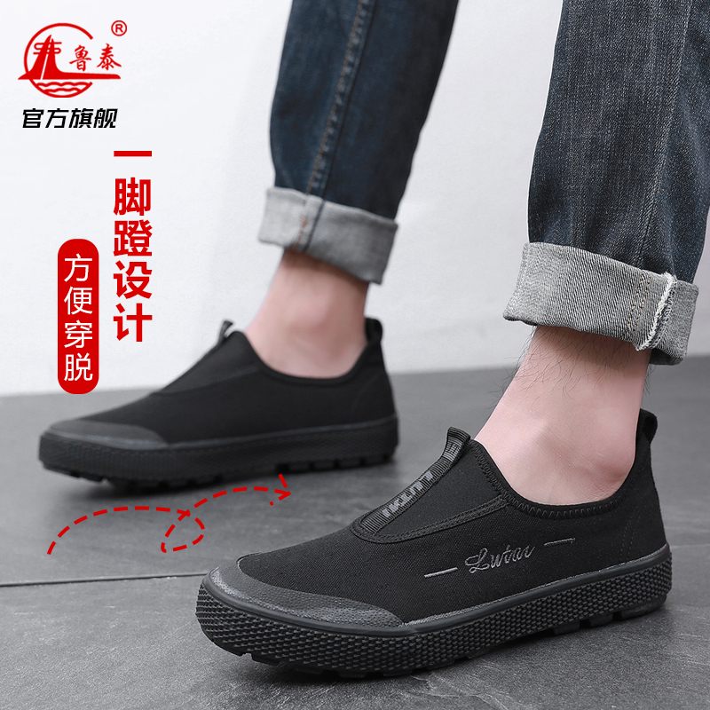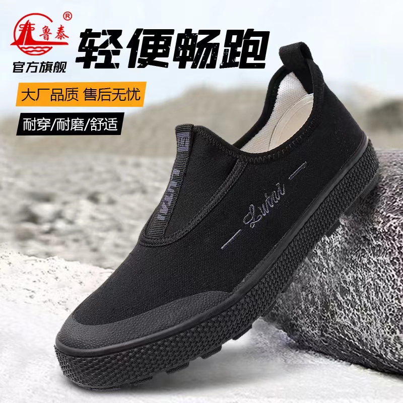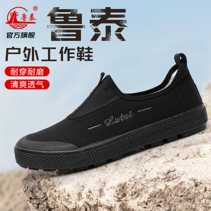 Outdoor Waterproof Canvas Shoes Lutai Genuine Durable Plaid Breathable Slip-on Low Ankle Liberation Shoes Labor Work Shoes