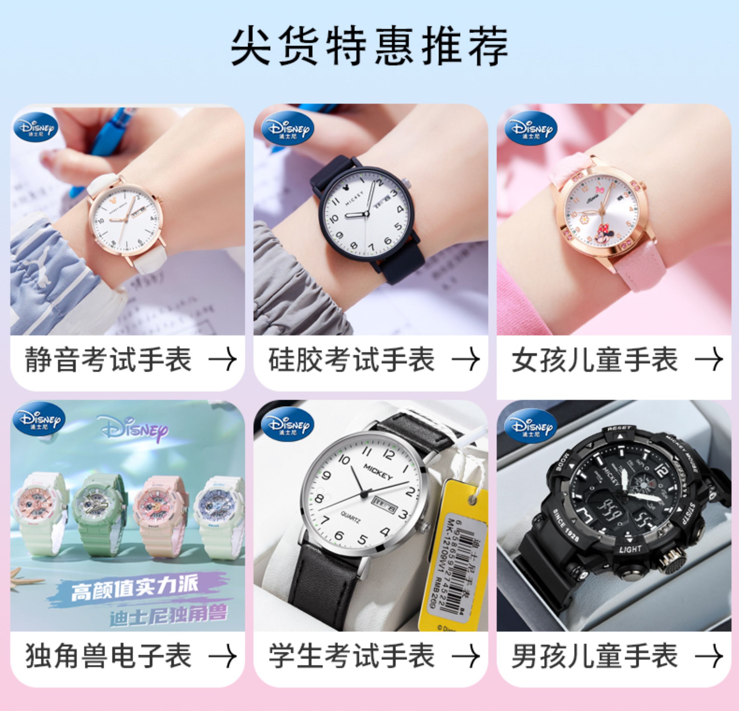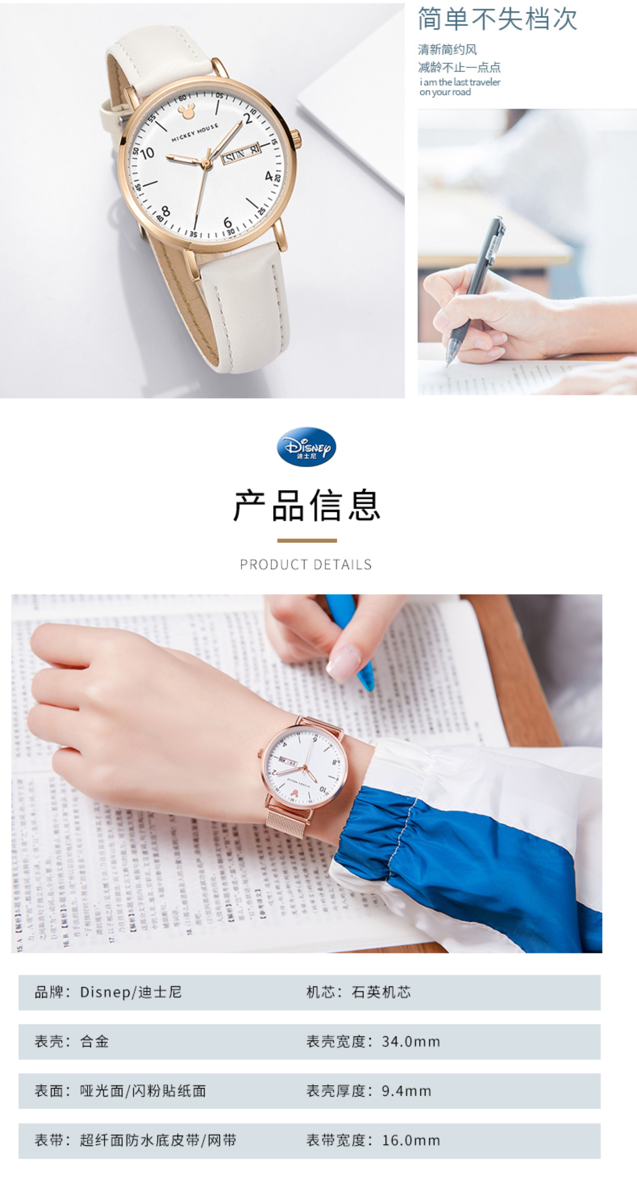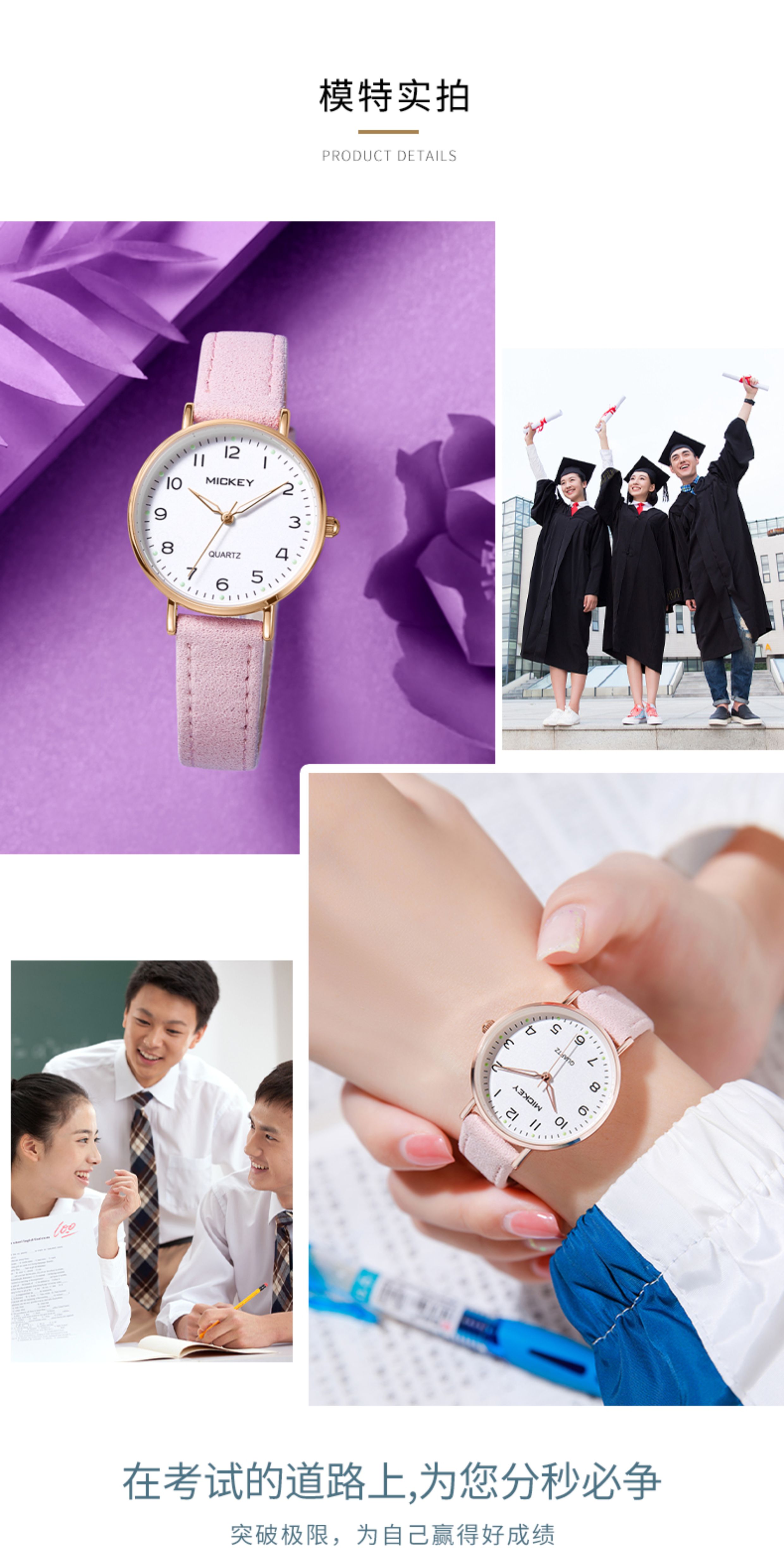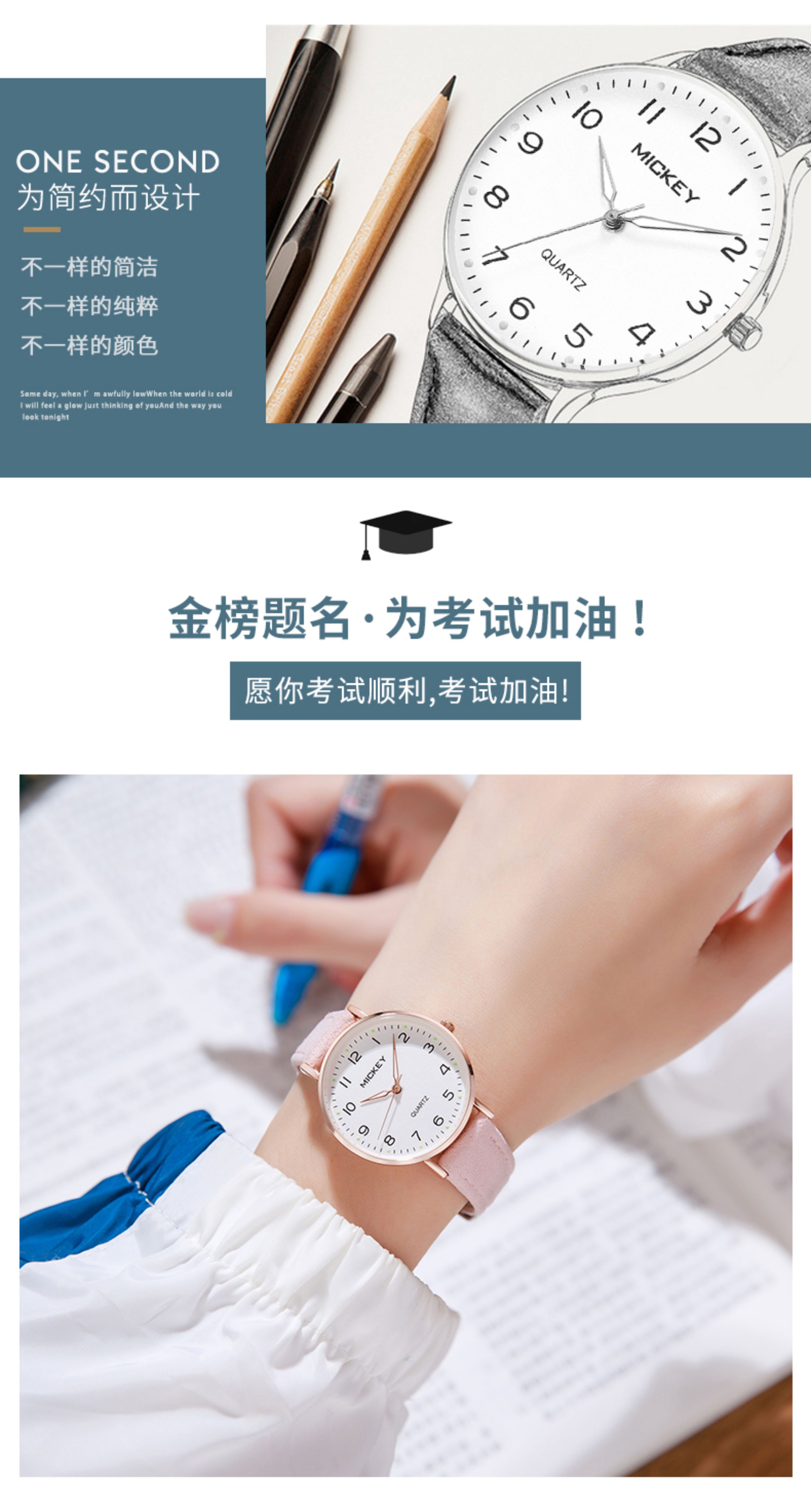 Disney Exam-Specific Watch for Women, Suitable for Junior High and High School Students, Civil Servants, Silent, Waterproof, Mechanical Pointer, for Children