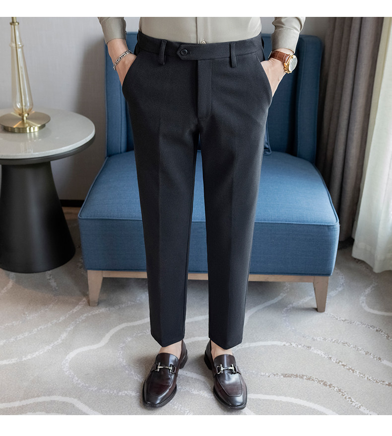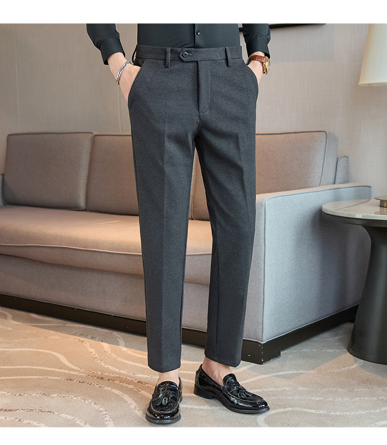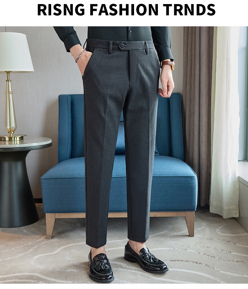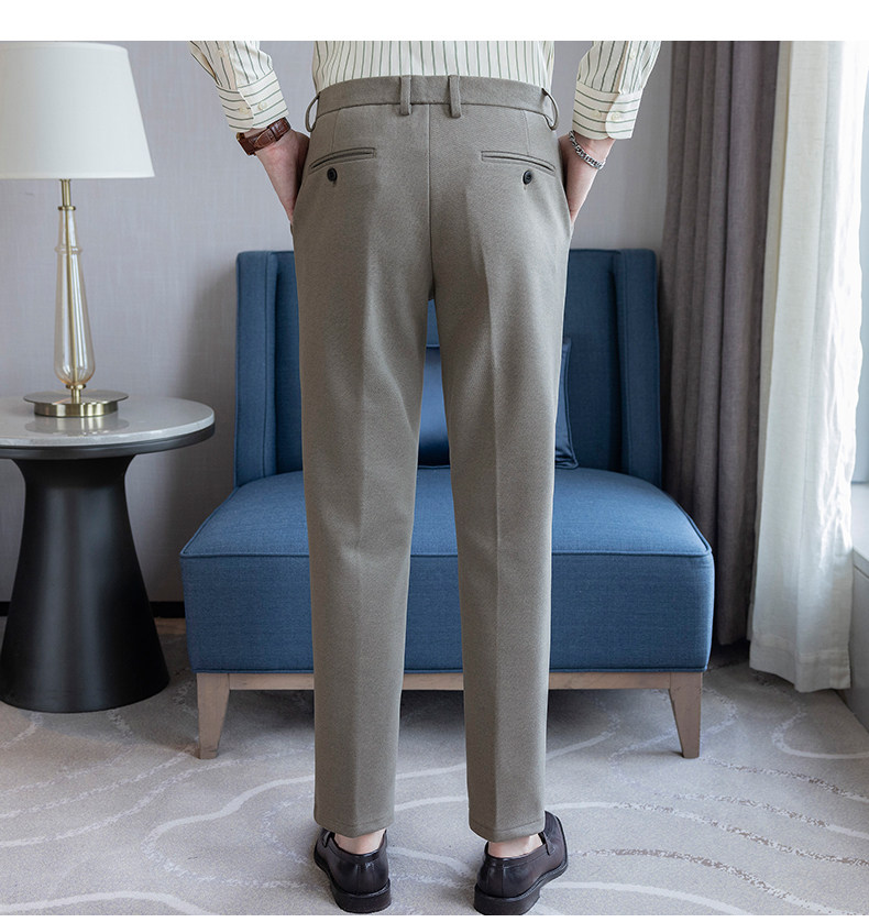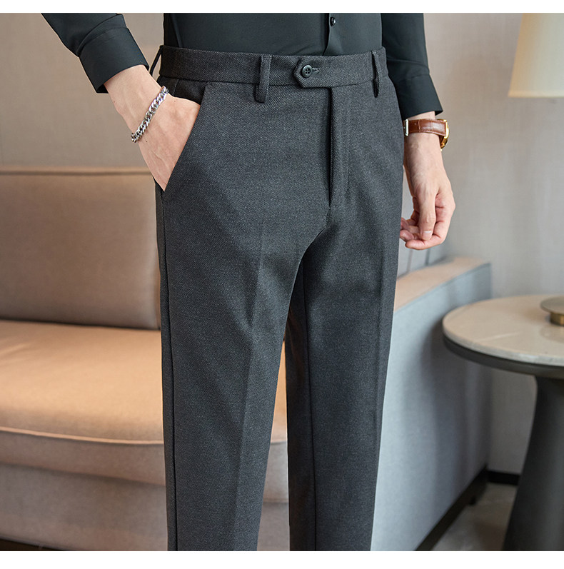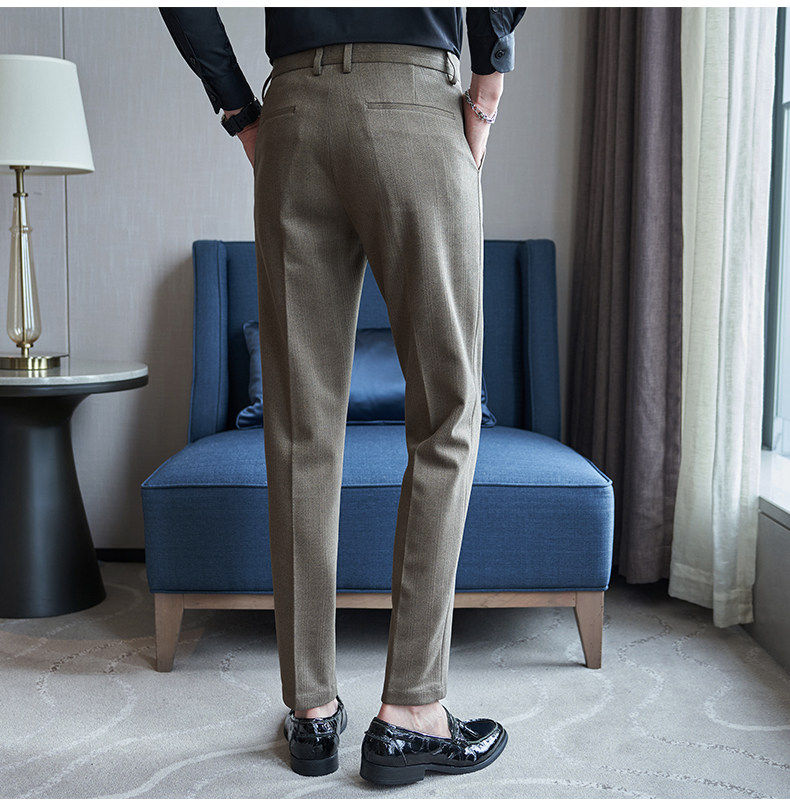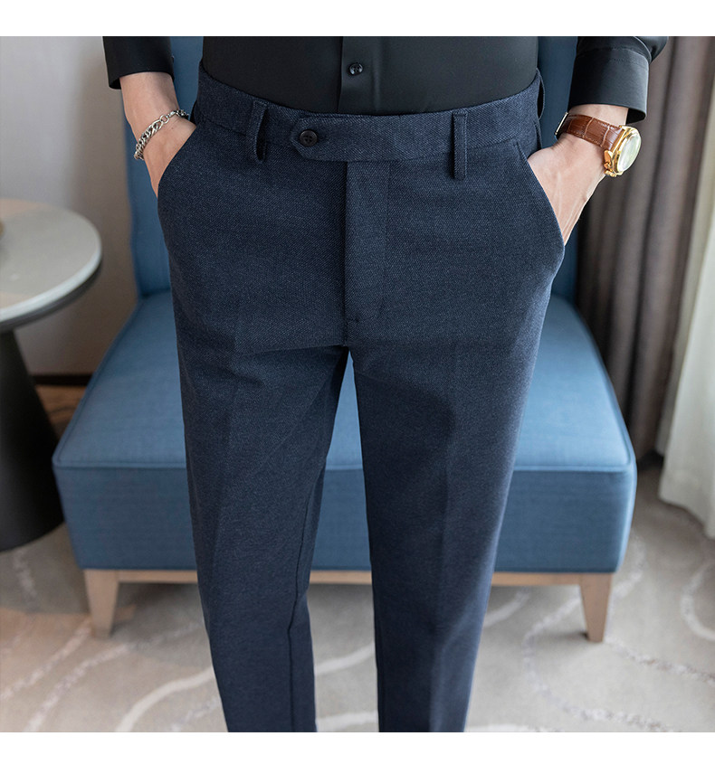 Autumn and Winter Woolen Material Trousers for Men, Winter Herringbone Pattern Woolen Men's Casual Pants, Brushed Business Suit Trousers for Men