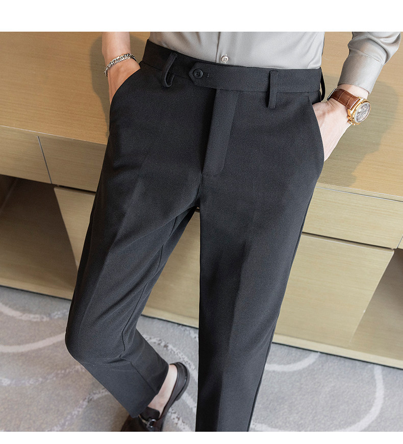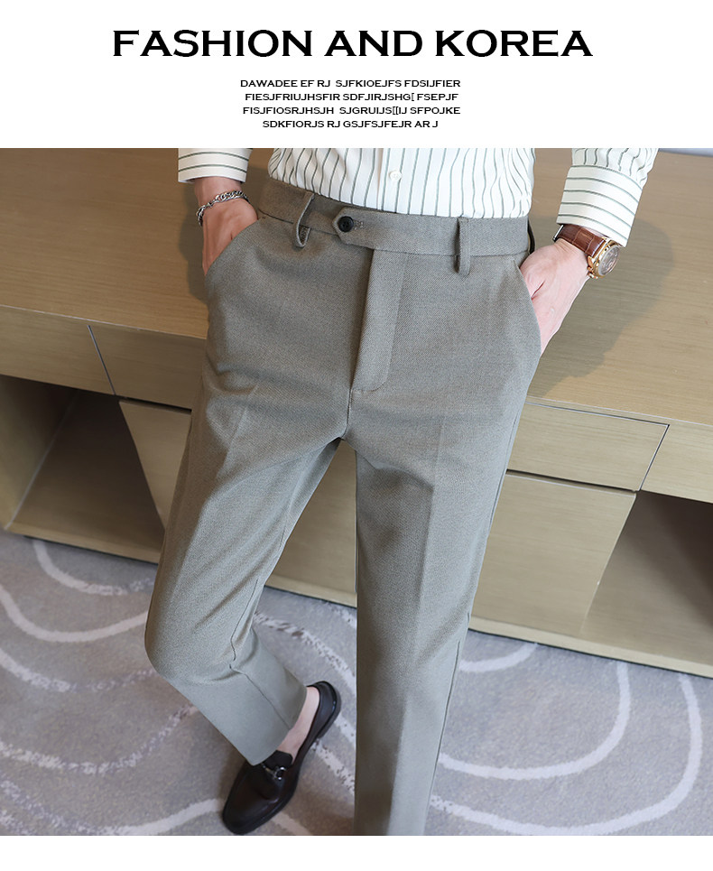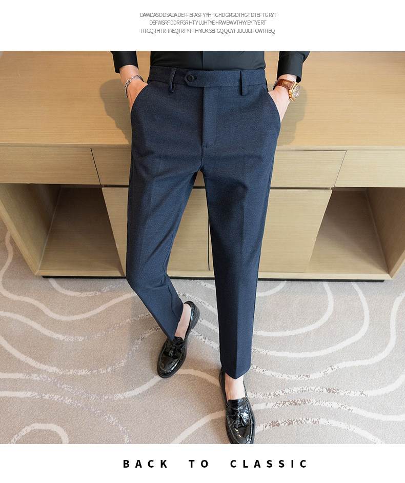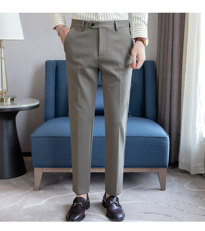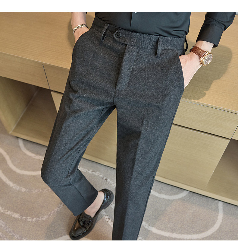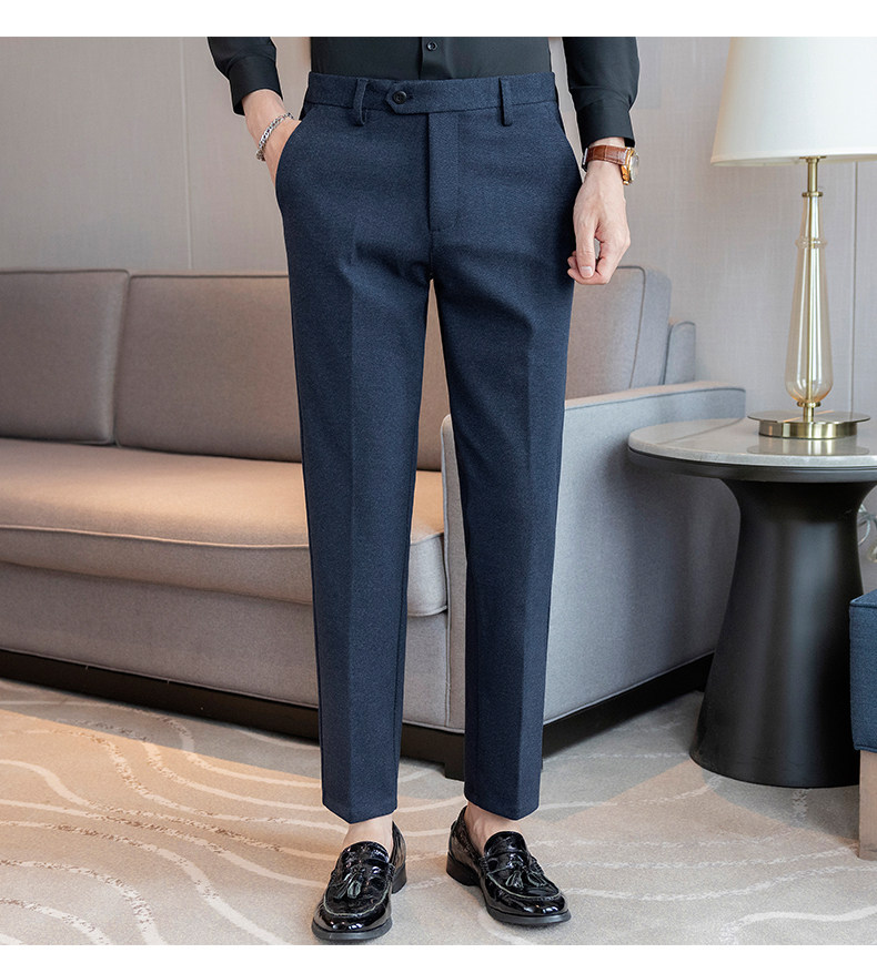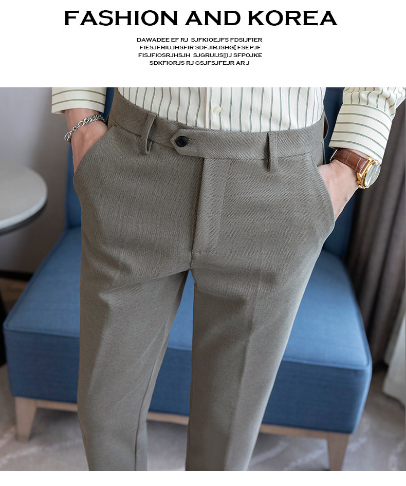 Autumn and Winter Woolen Material Trousers for Men, Winter Herringbone Pattern Woolen Men's Casual Pants, Brushed Business Suit Trousers for Men