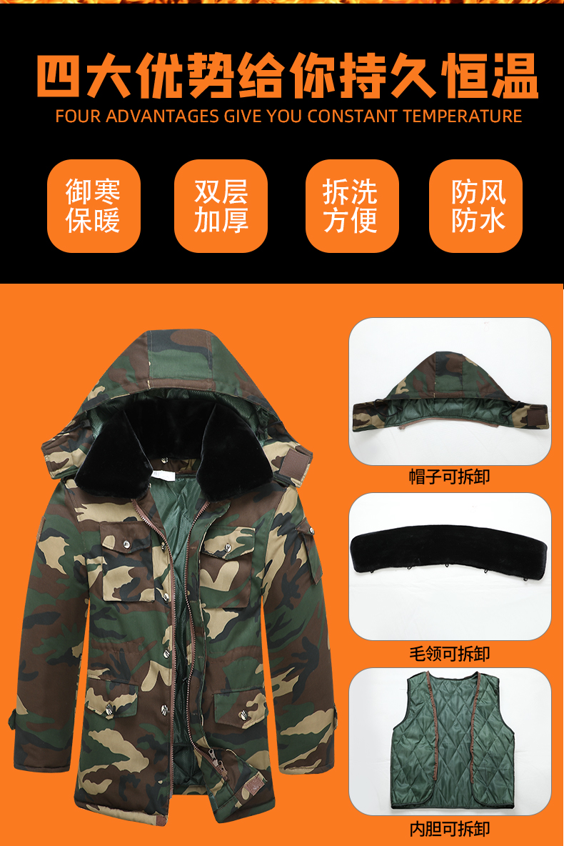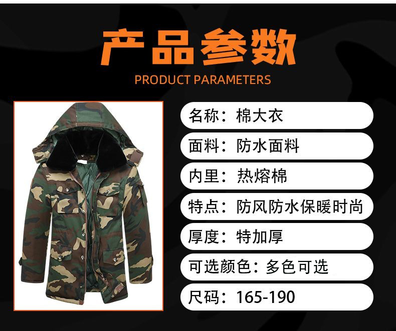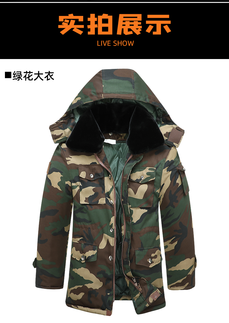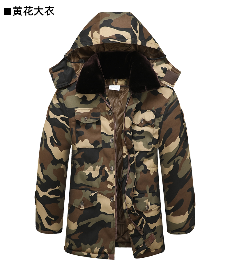 Men's Winter Thickened Camouflage Cotton Coat, Mid-Length, Cold-Proof, Extra Large Size, Workwear Cotton Jacket