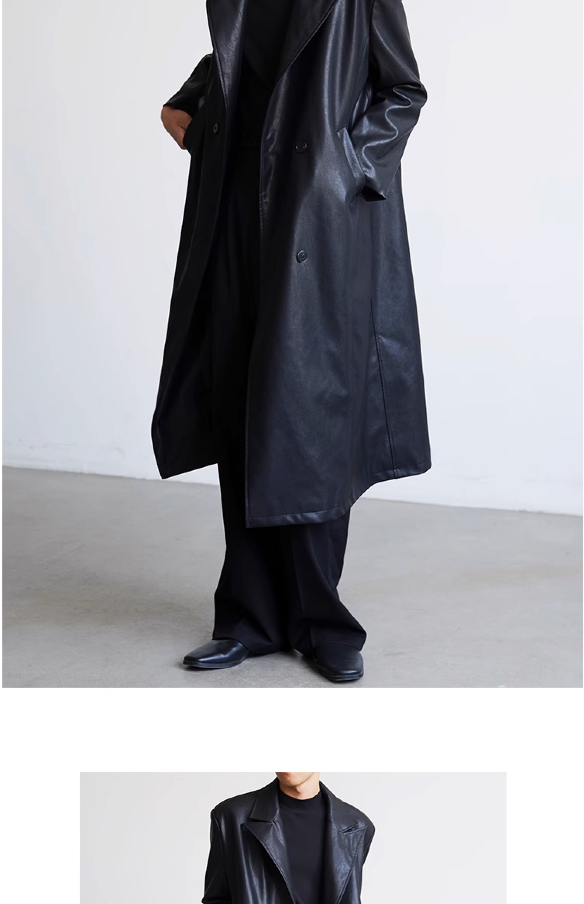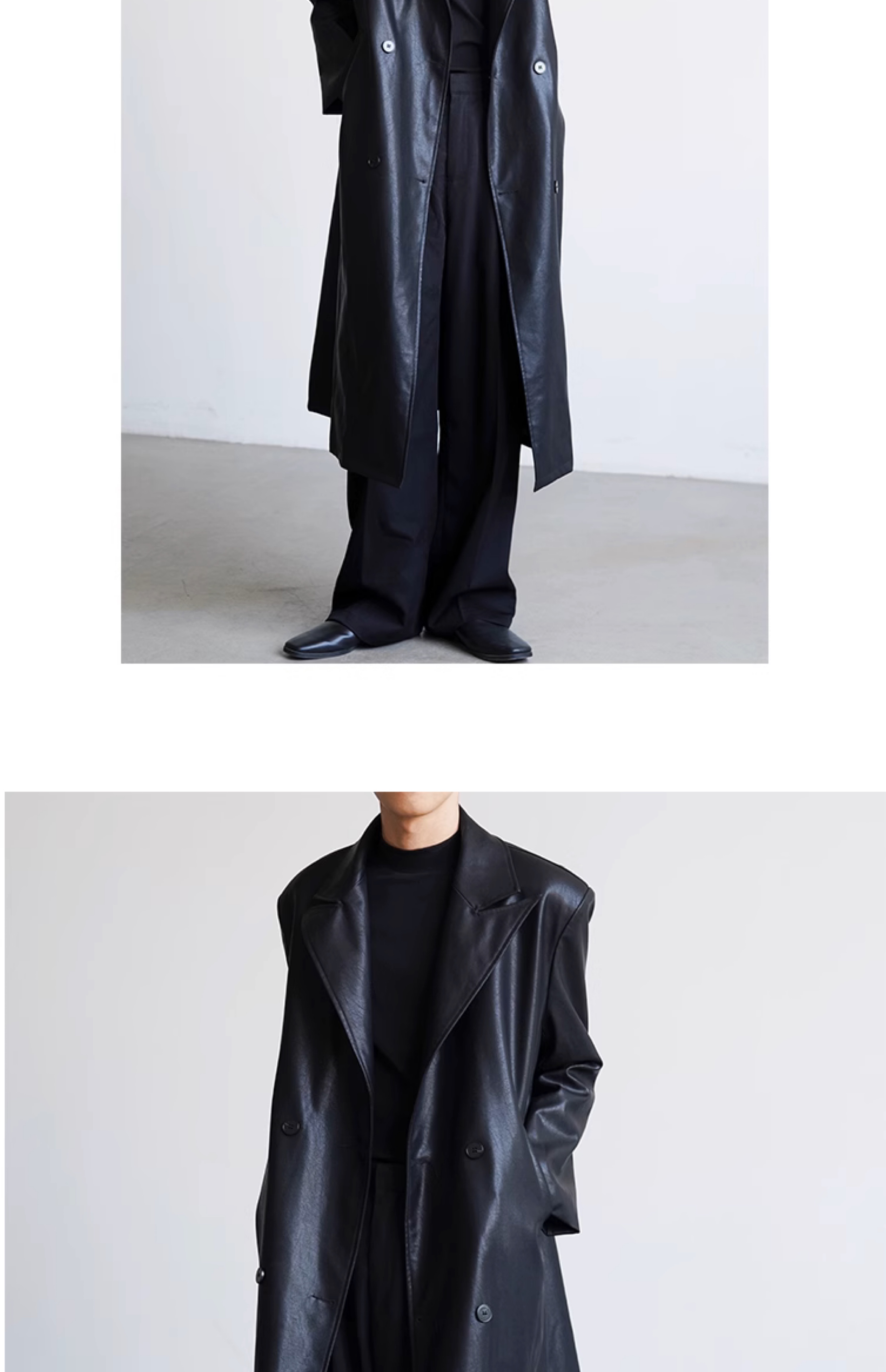 Fllm Cool and Stylish Gender-Neutral Retro Slim-Fit Long Leather Jacket