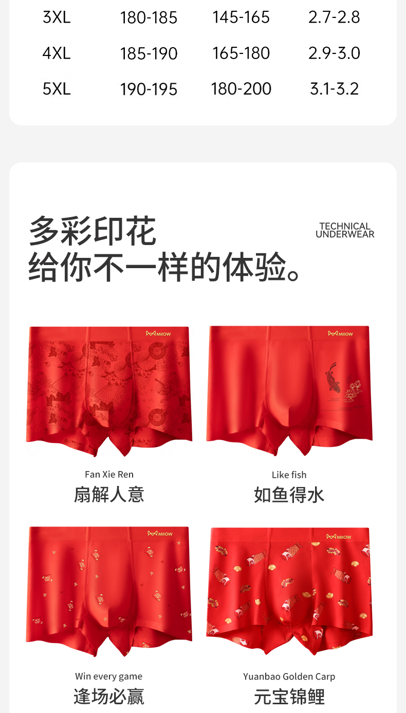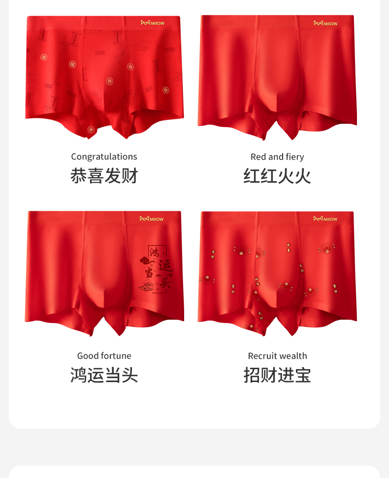 Catman Men's Underwear Men's Pure Cotton Zodiac Year Shorts Men's Red Boxer Briefs Wedding Boxer Shorts Year of the Snake Gift