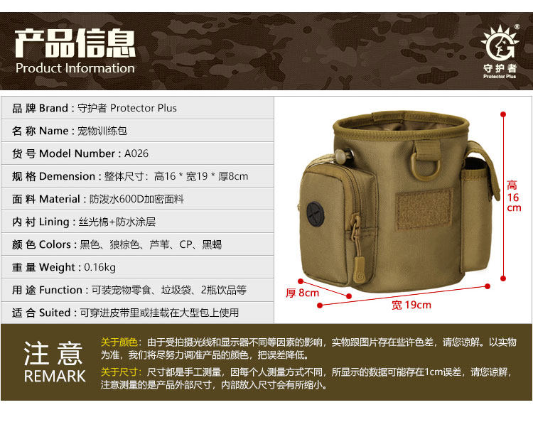 Outdoor Camouflage Hiking Key Snack Water Bottle Waist Bag Fishing Sports Bag Pet Dog Training Waist Bag Food Bag