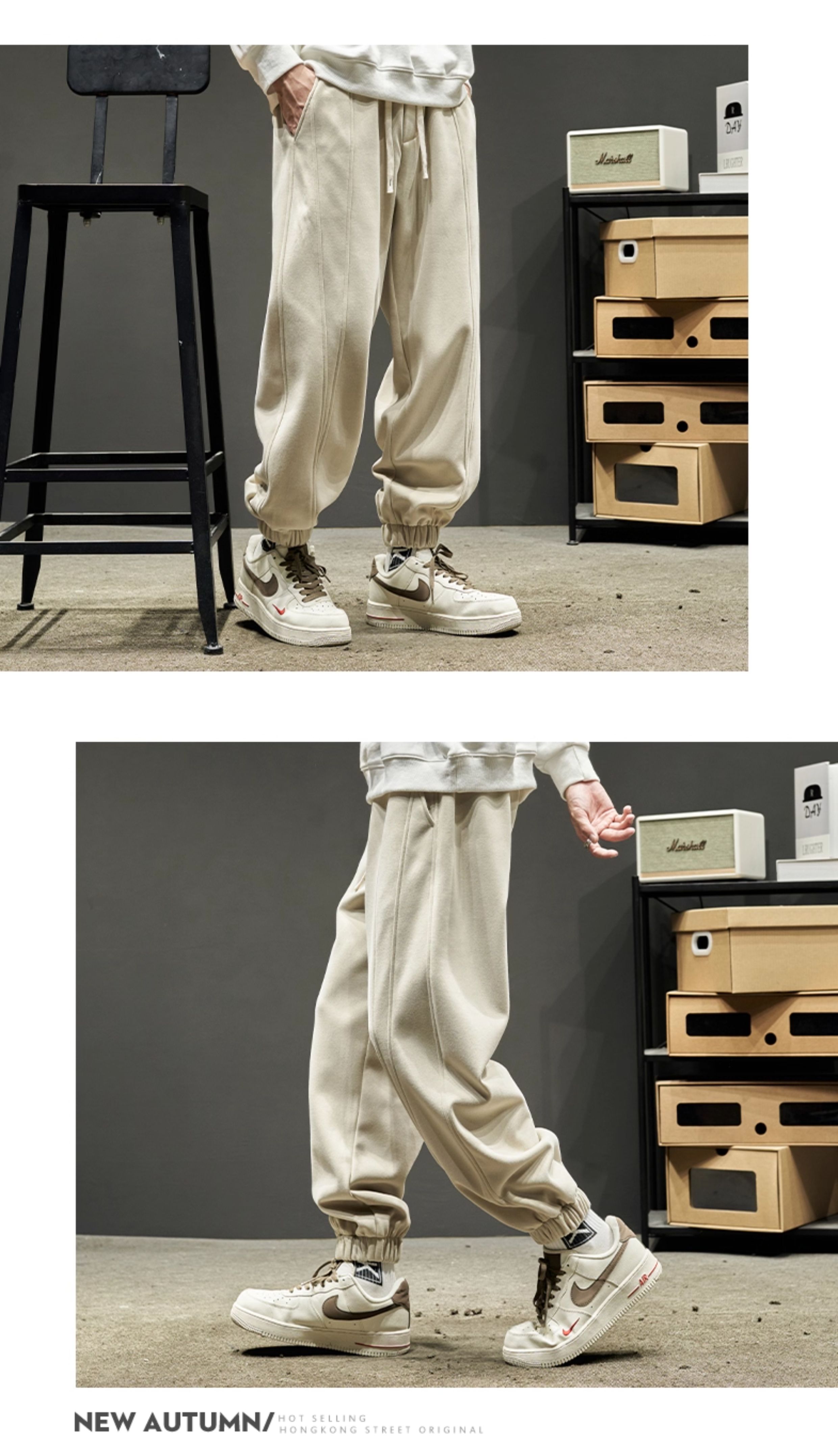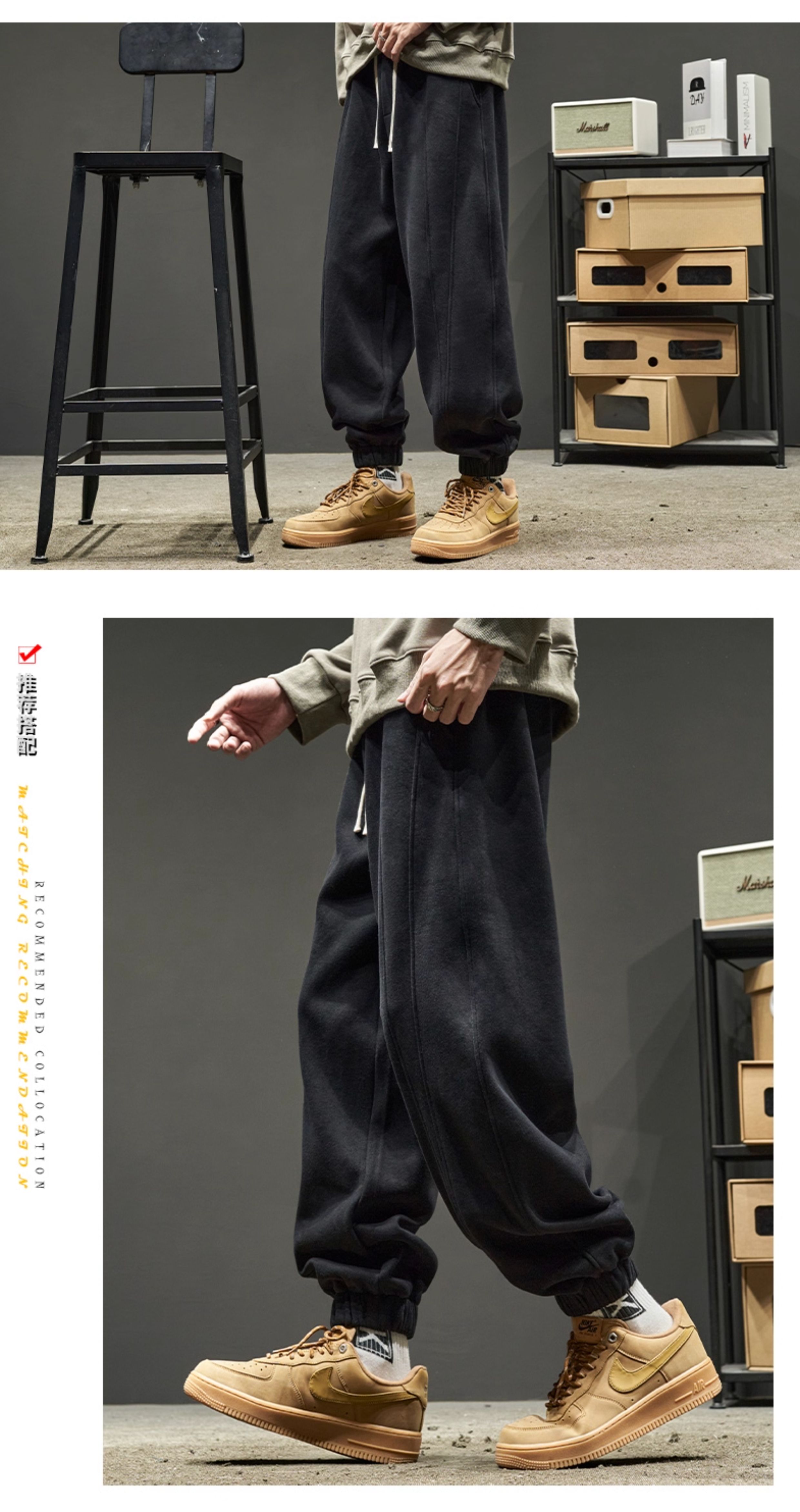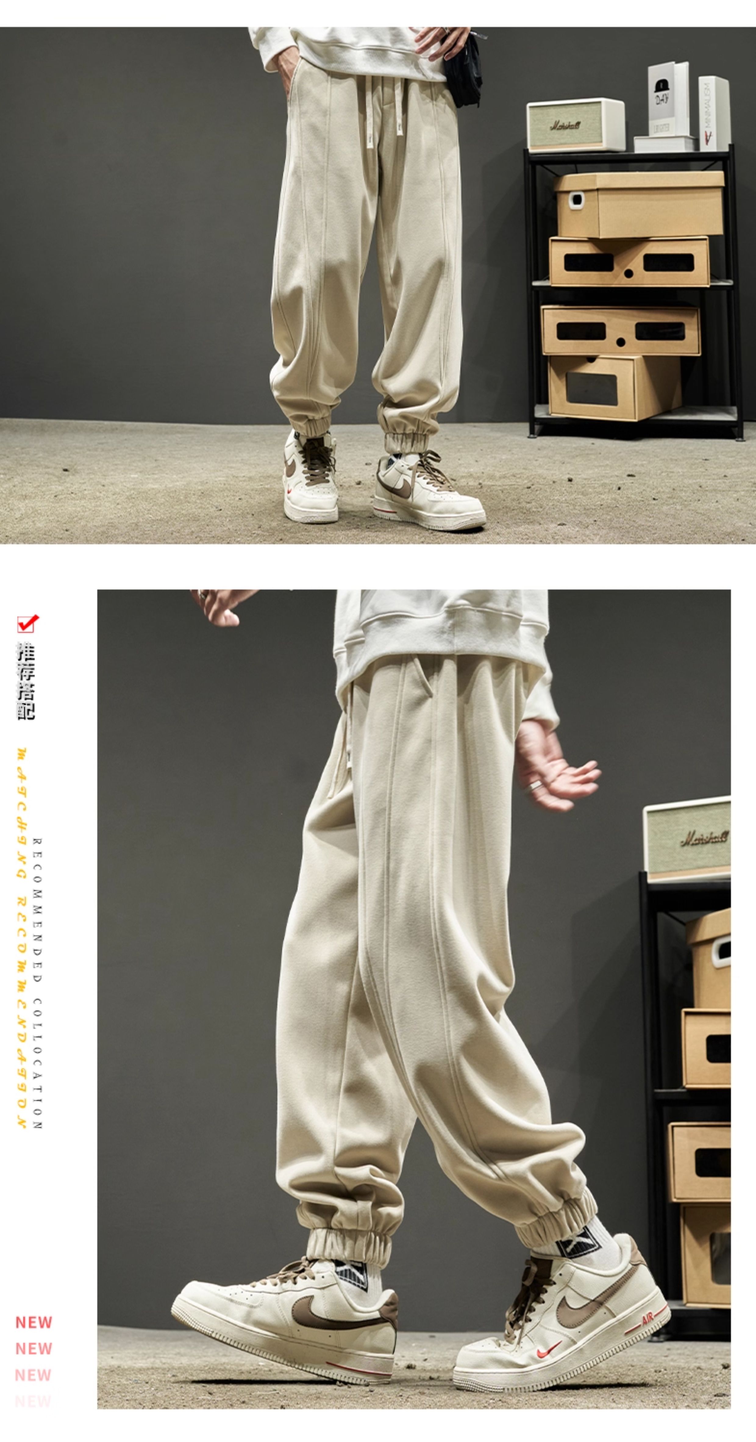 Men's Sweatpants for Autumn and Winter, Fleece-Lined and Thickened, Men's Long Pants, American-Style Work Pants, Winter Men's Casual Sweatpants