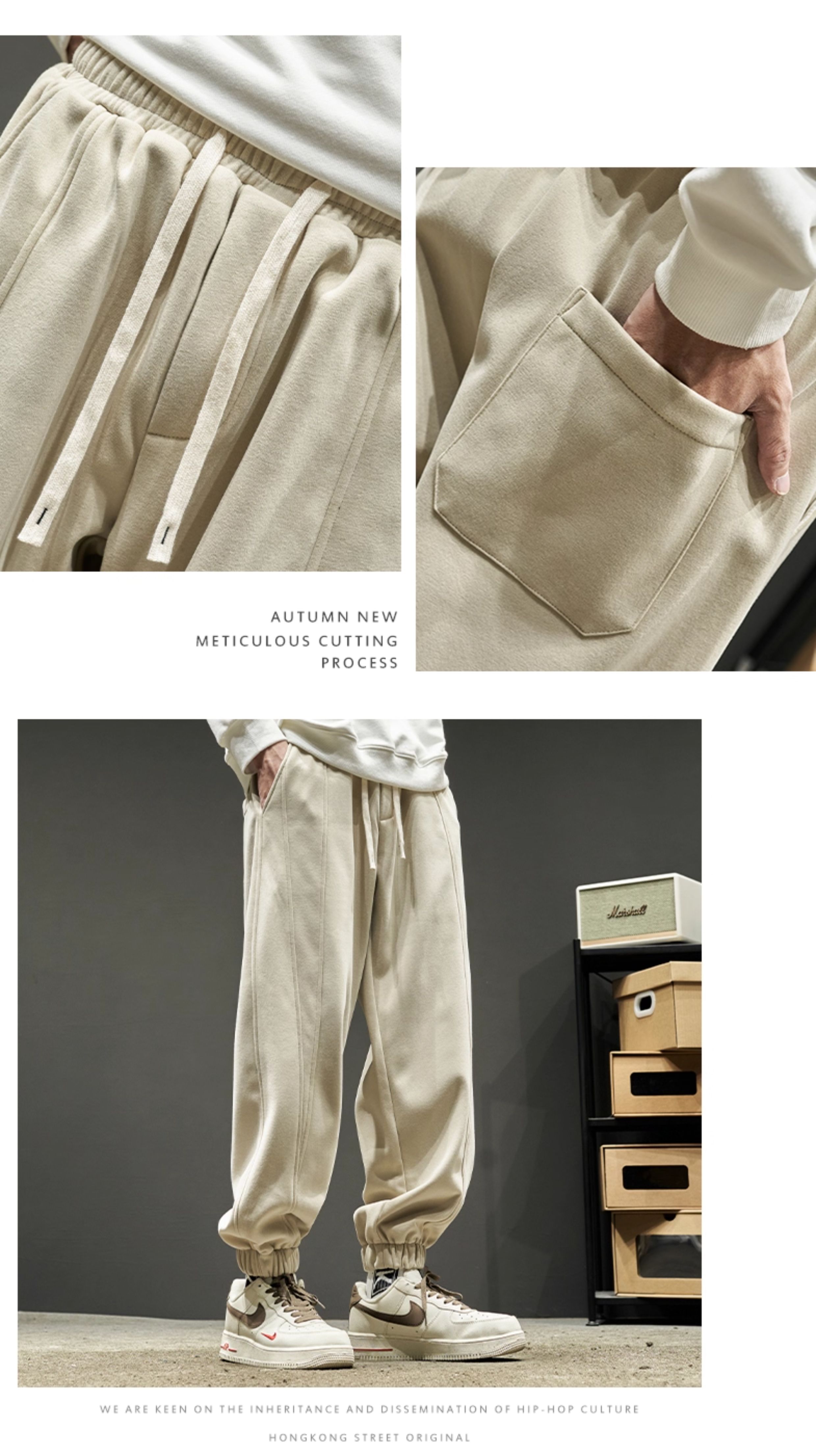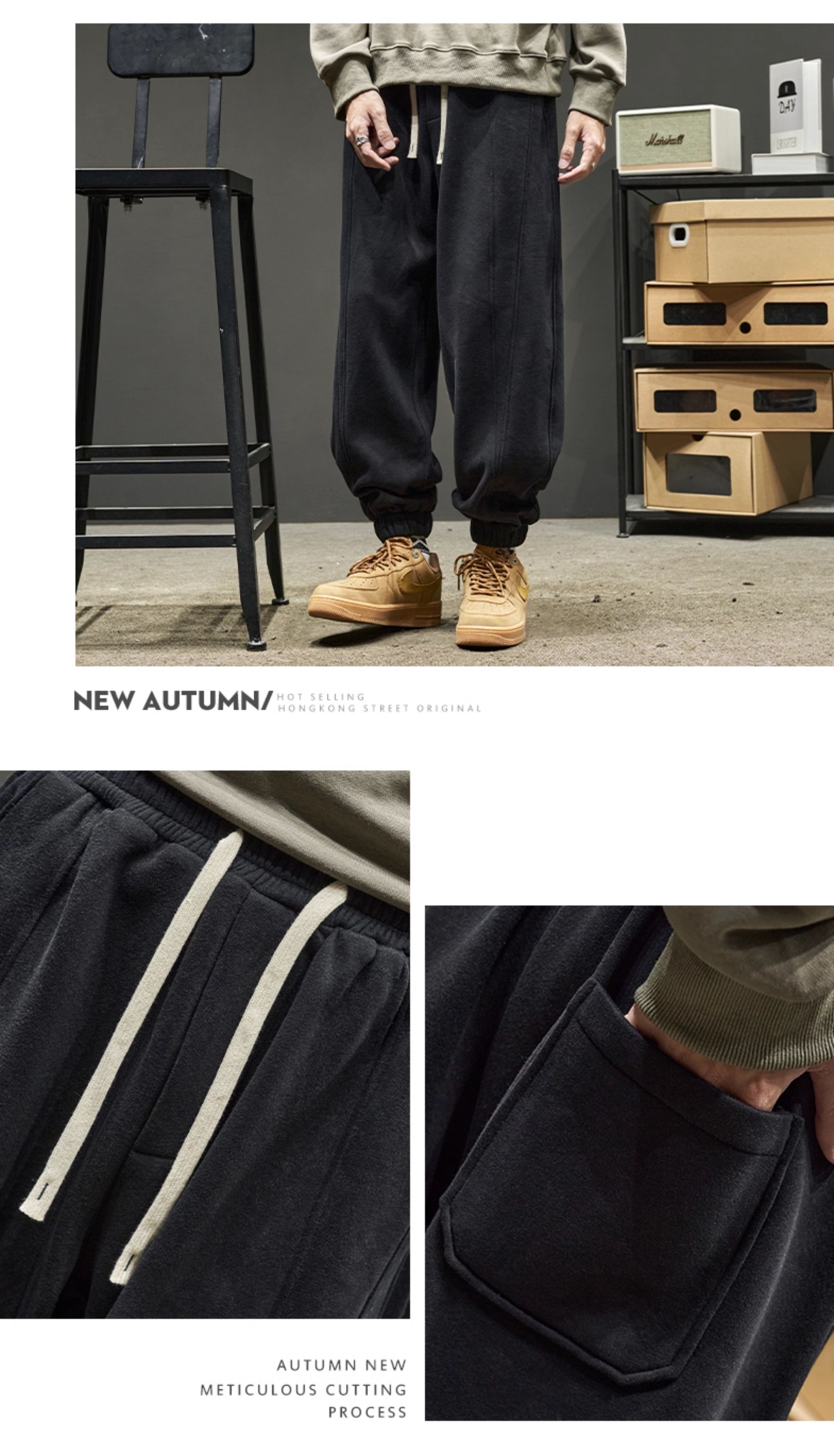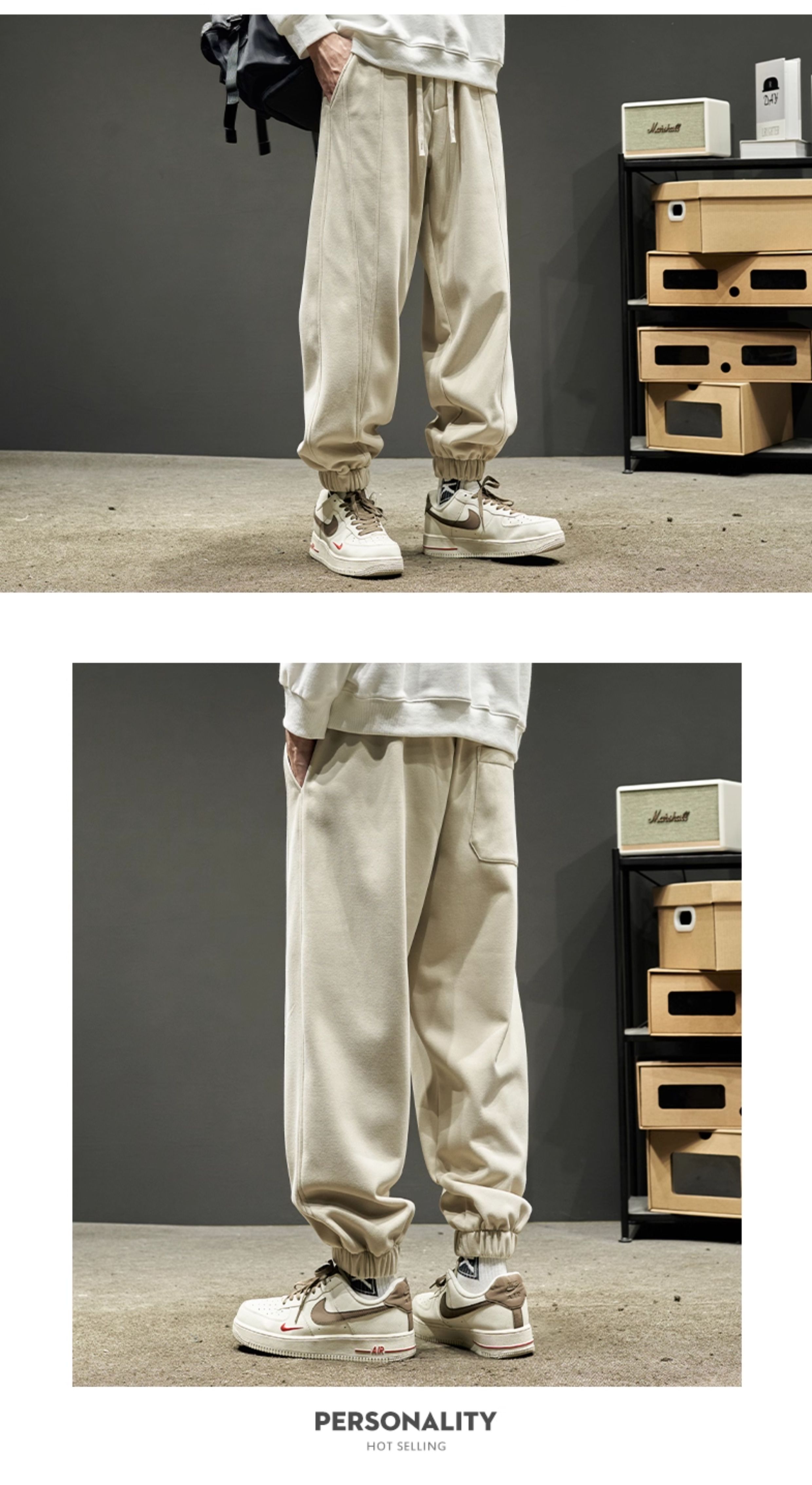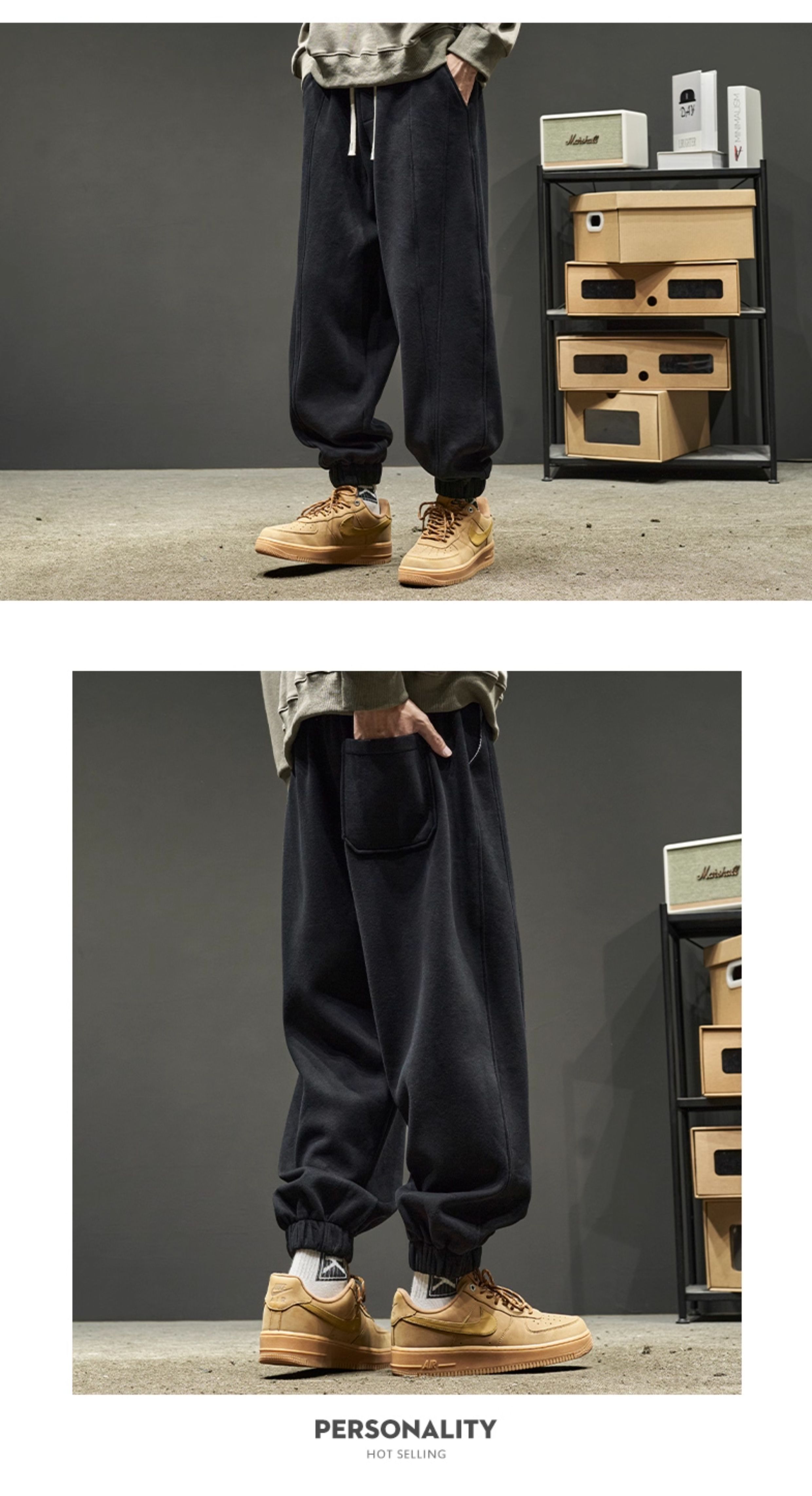 Men's Sweatpants for Autumn and Winter, Fleece-Lined and Thickened, Men's Long Pants, American-Style Work Pants, Winter Men's Casual Sweatpants