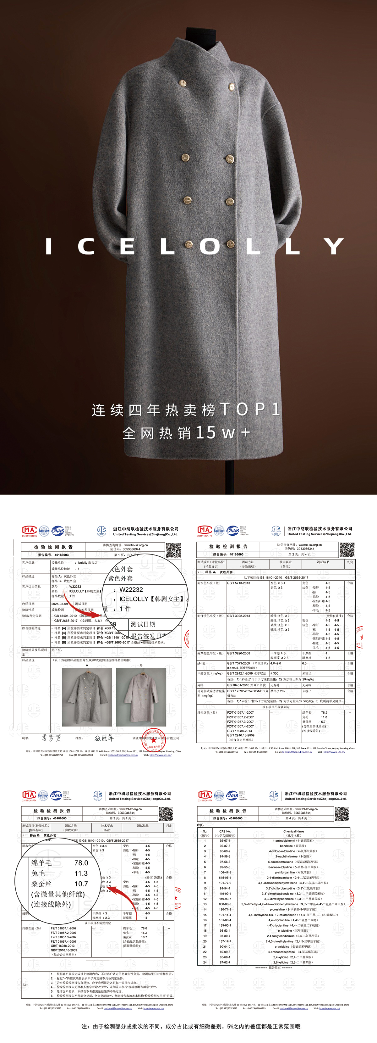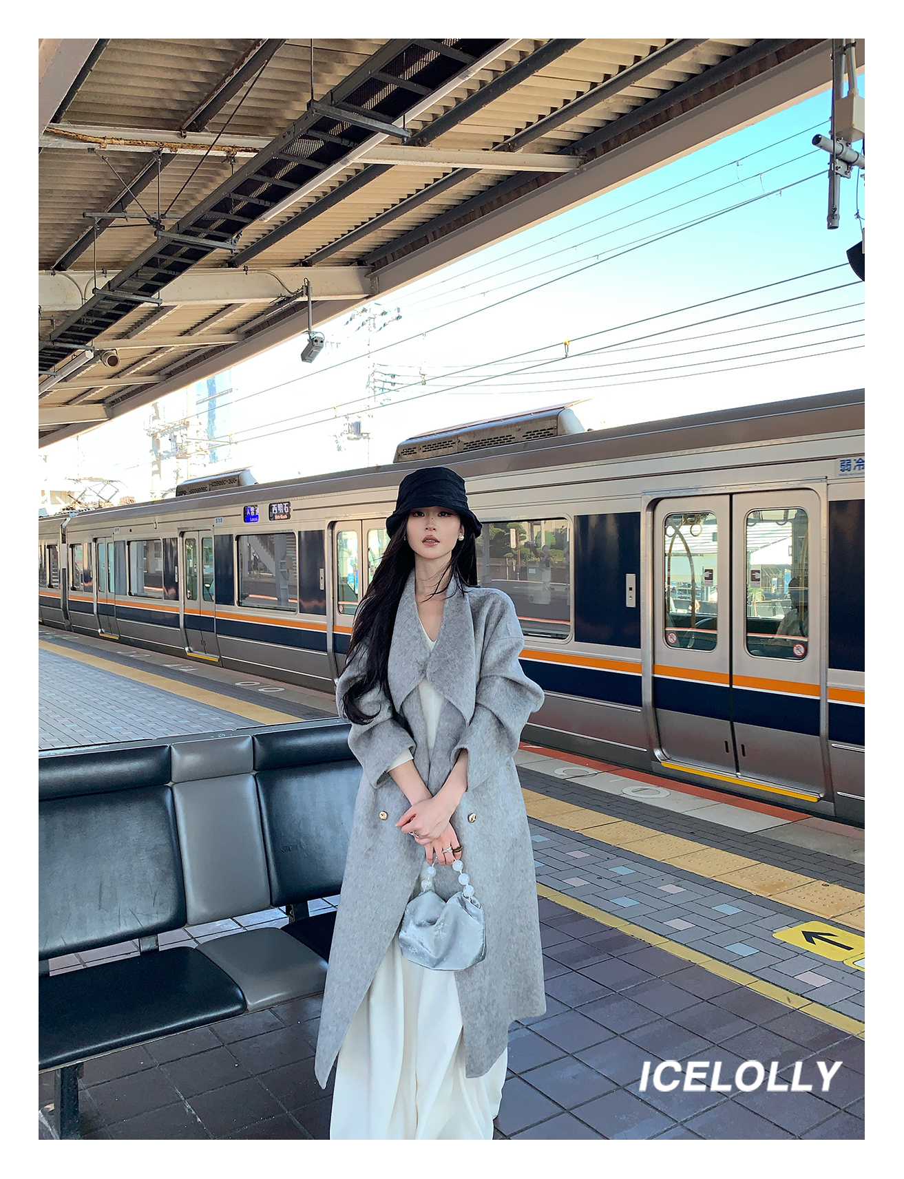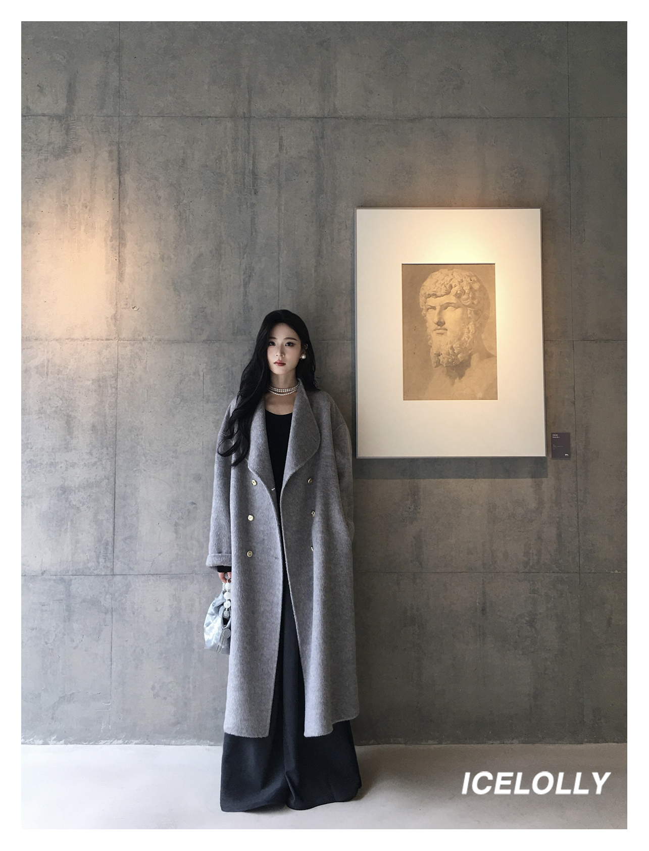 Icelolly【Korean Drama Heroine】Gray Wool Double-Sided Woolen Coat for Women, Autumn and Winter Woolen Jacket for Petite Women