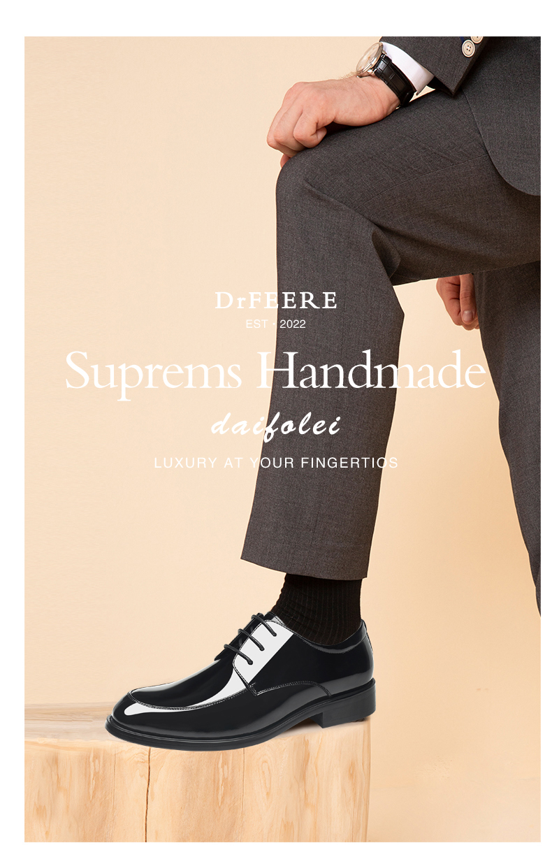 Difrey First-Layer Cowhide Italian Handmade Leather Shoes Men's Patent Leather Glossy Business Suit Derby Shoes Men's Wedding Shoes
