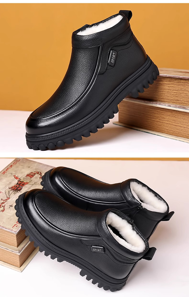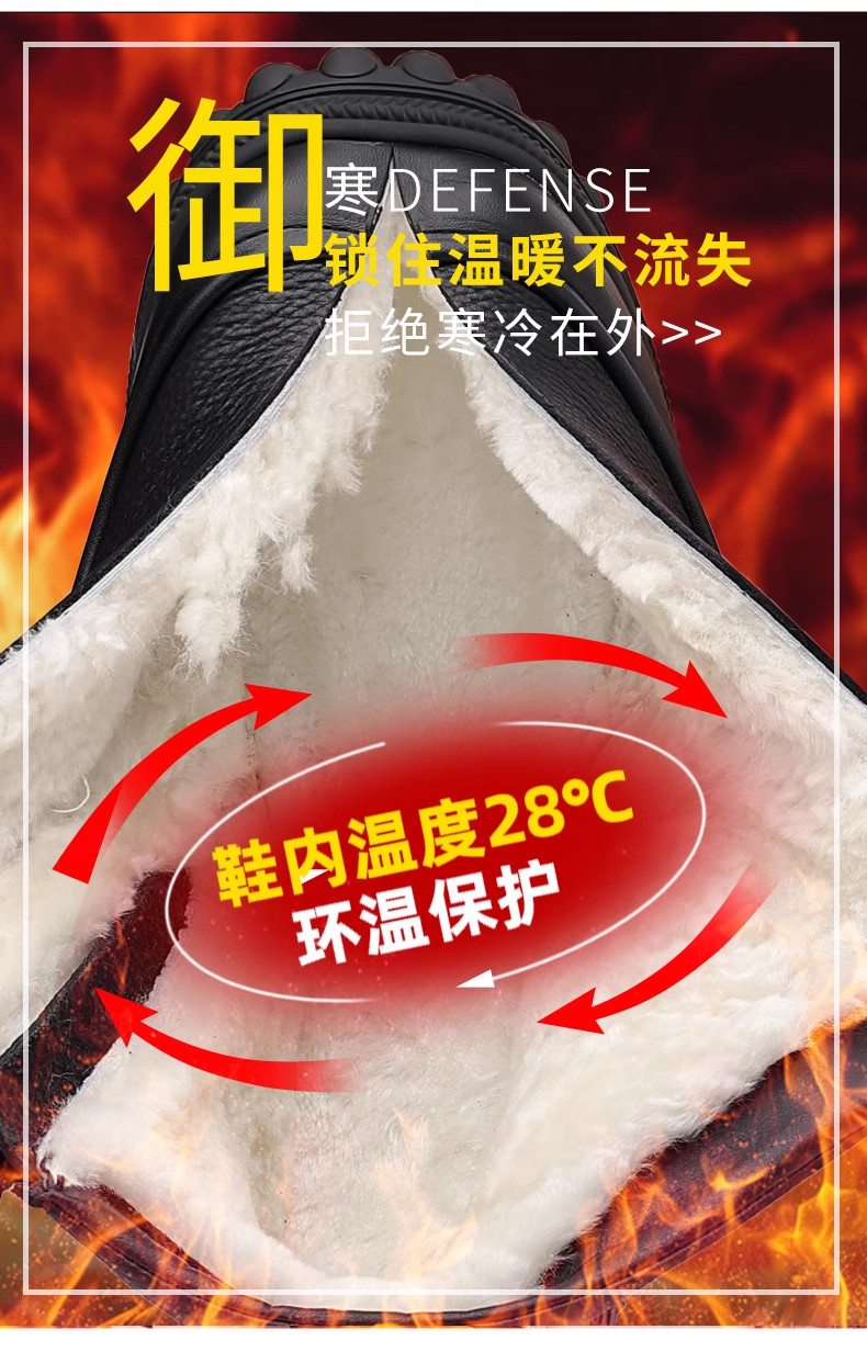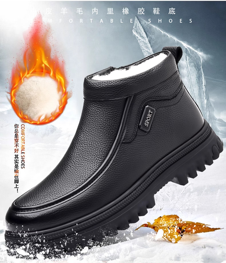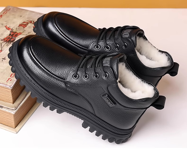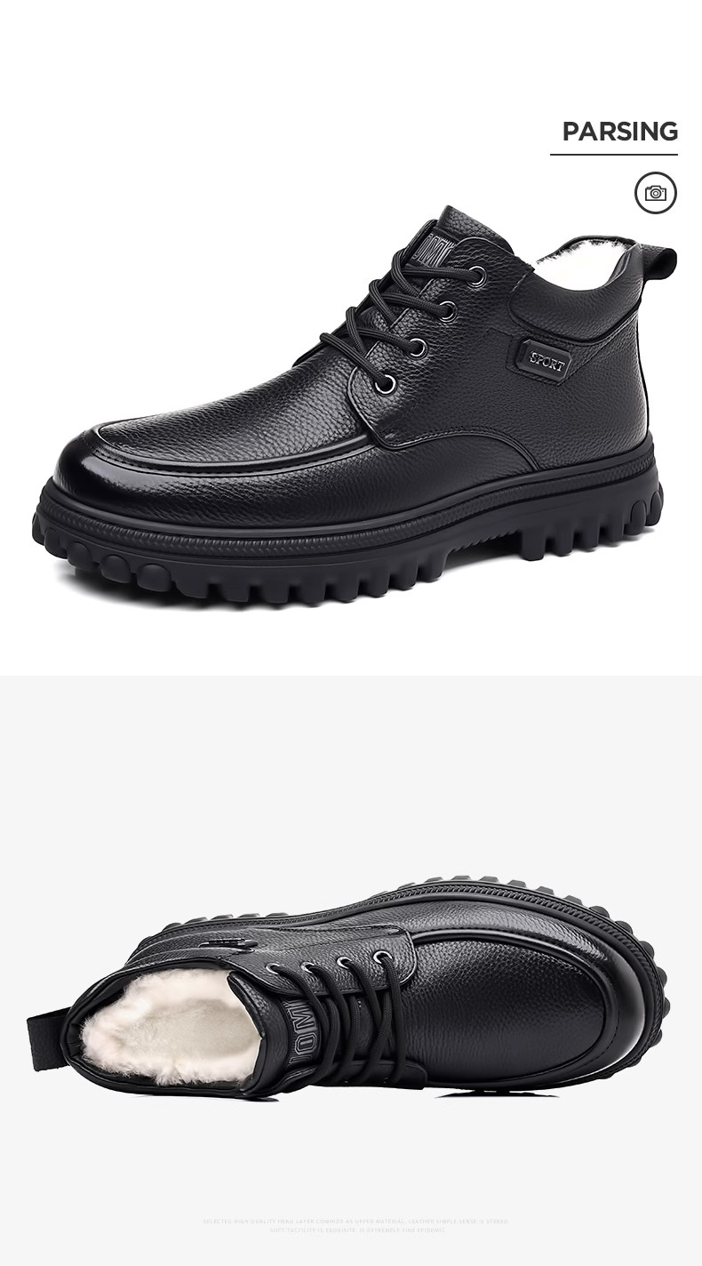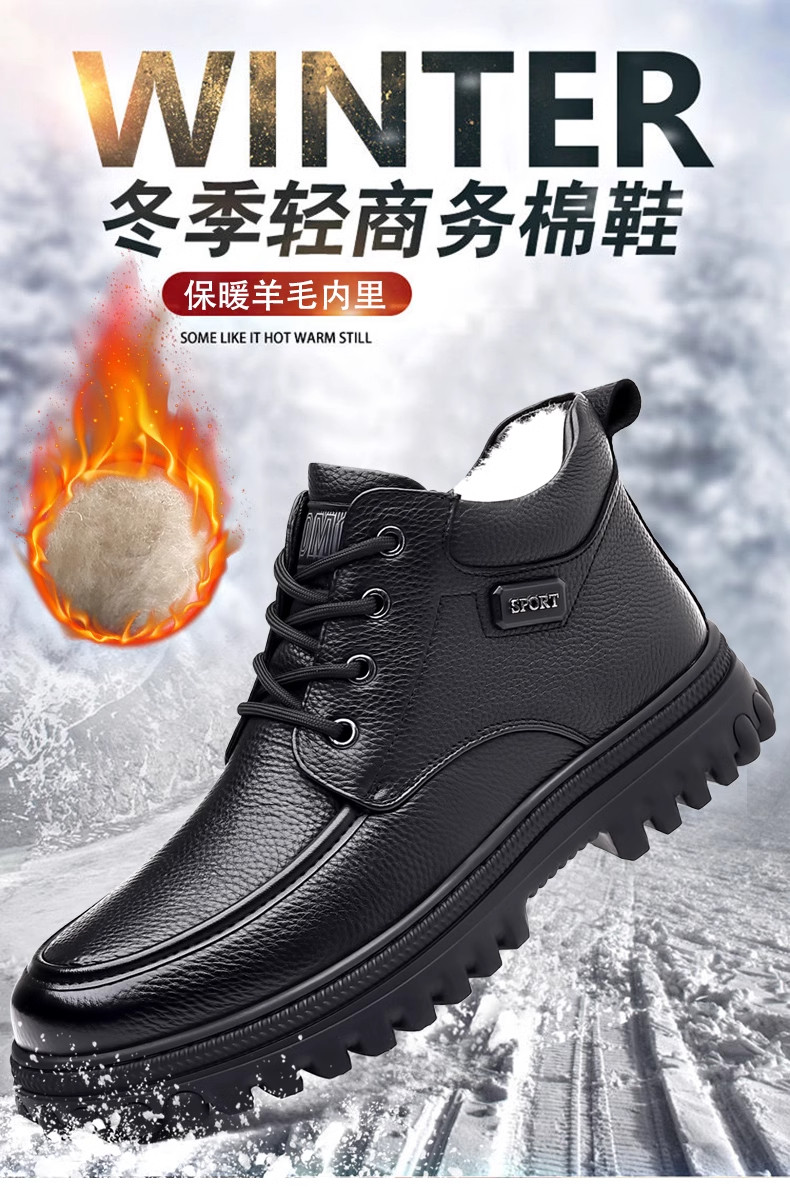 Woodpecker Northeast Large Cotton Shoes for Men, Winter Warm Fleece-Lined Thickened Wool Leather Shoes, High-Top Dad Shoes, Snow Boots for Men