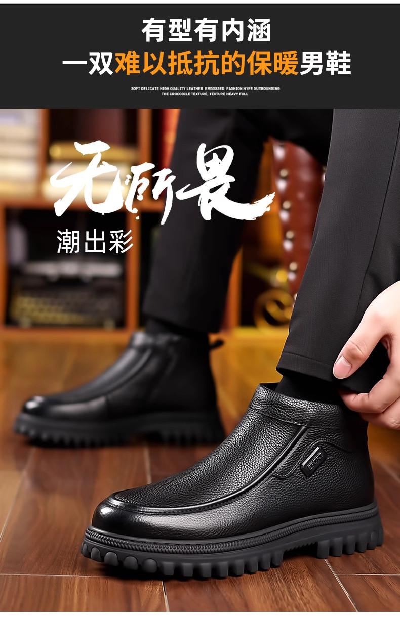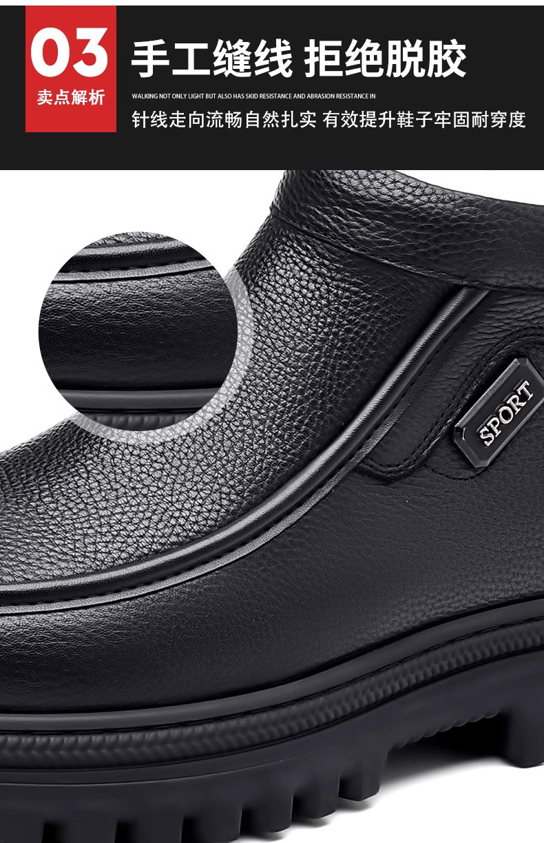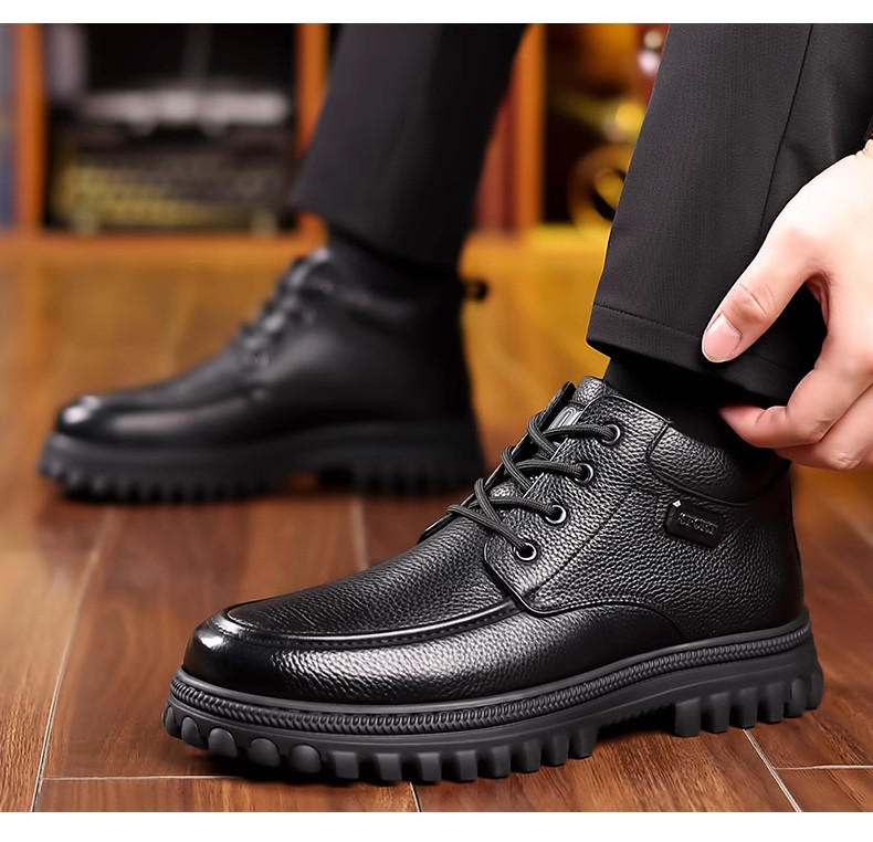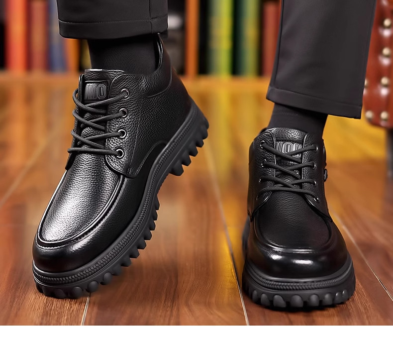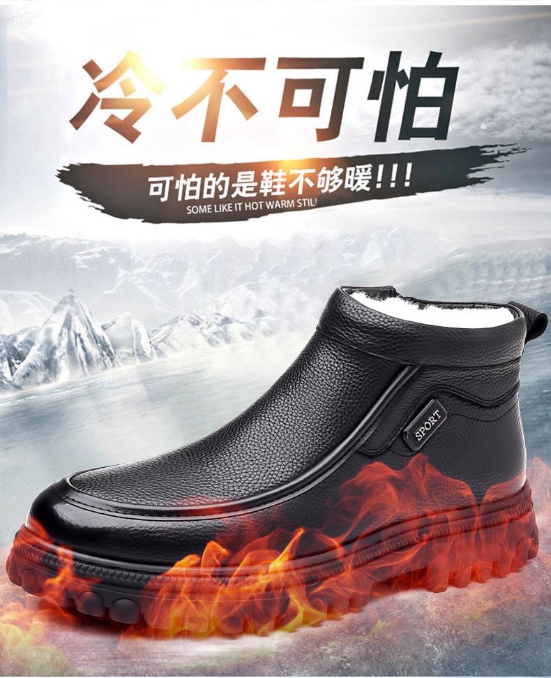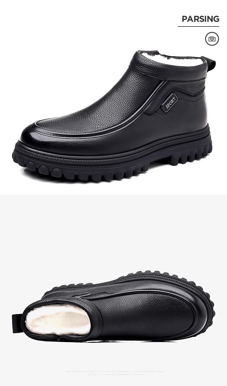 Woodpecker Northeast Large Cotton Shoes for Men, Winter Warm Fleece-Lined Thickened Wool Leather Shoes, High-Top Dad Shoes, Snow Boots for Men
