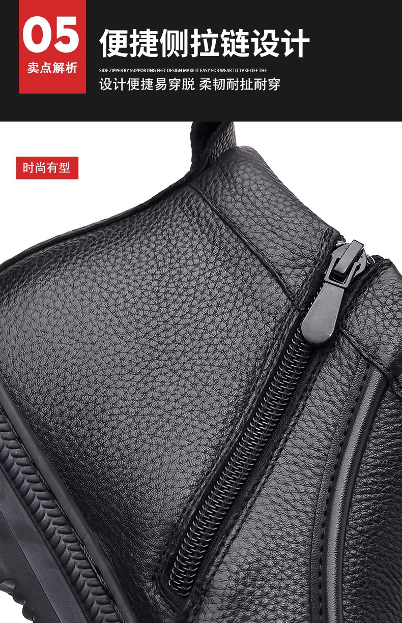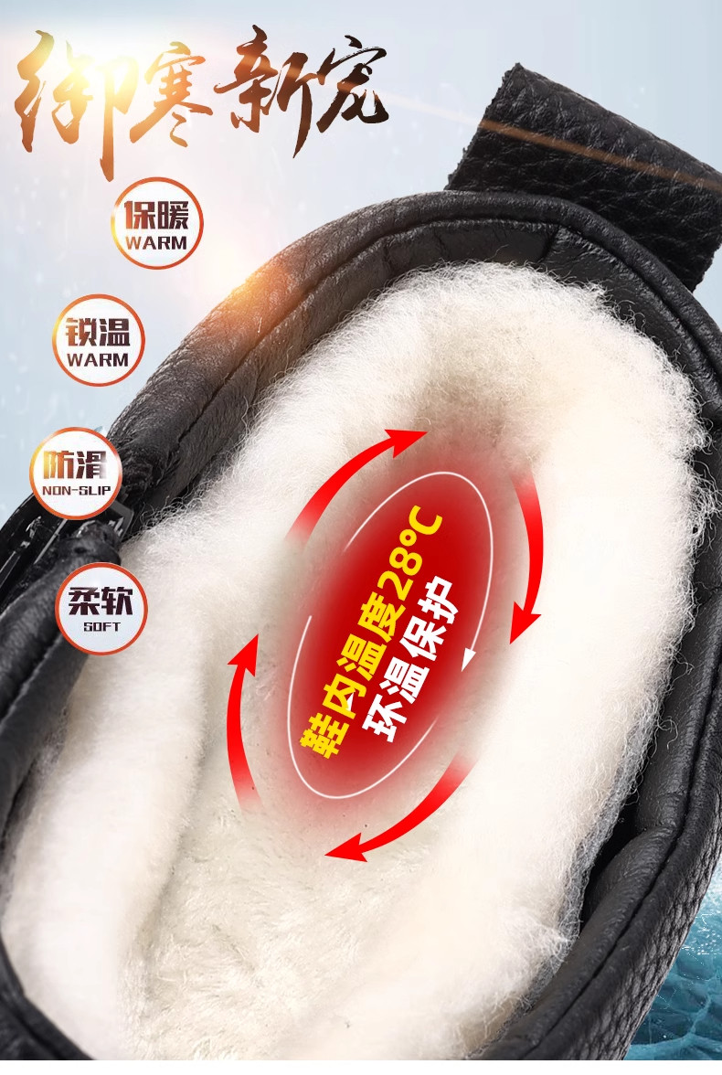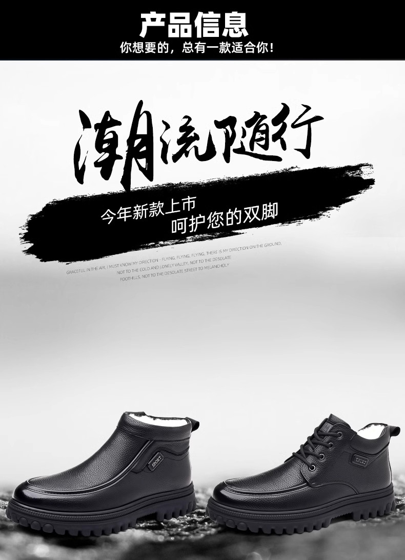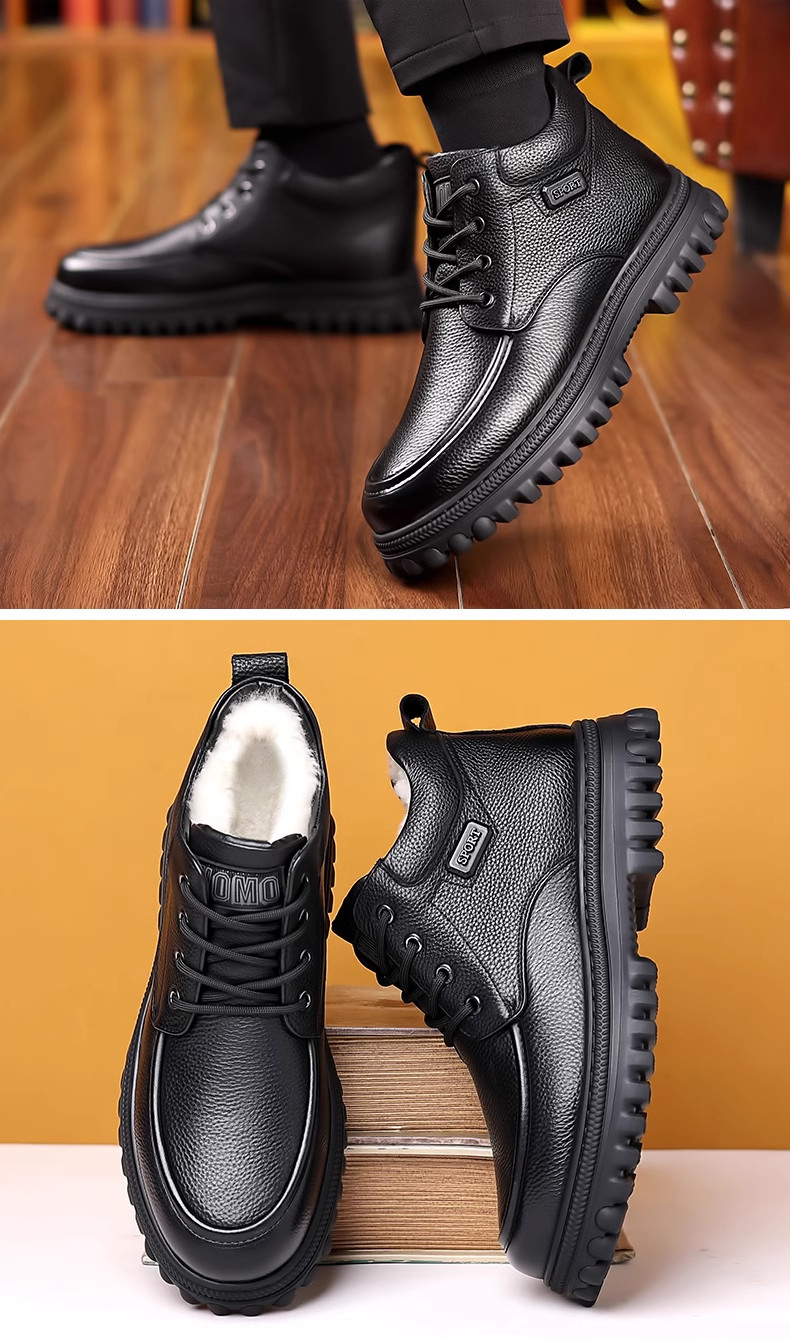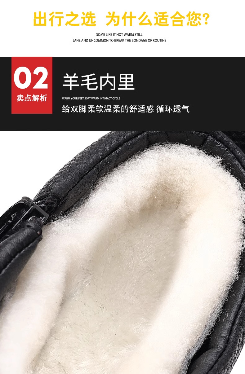 Woodpecker Northeast Large Cotton Shoes for Men, Winter Warm Fleece-Lined Thickened Wool Leather Shoes, High-Top Dad Shoes, Snow Boots for Men
