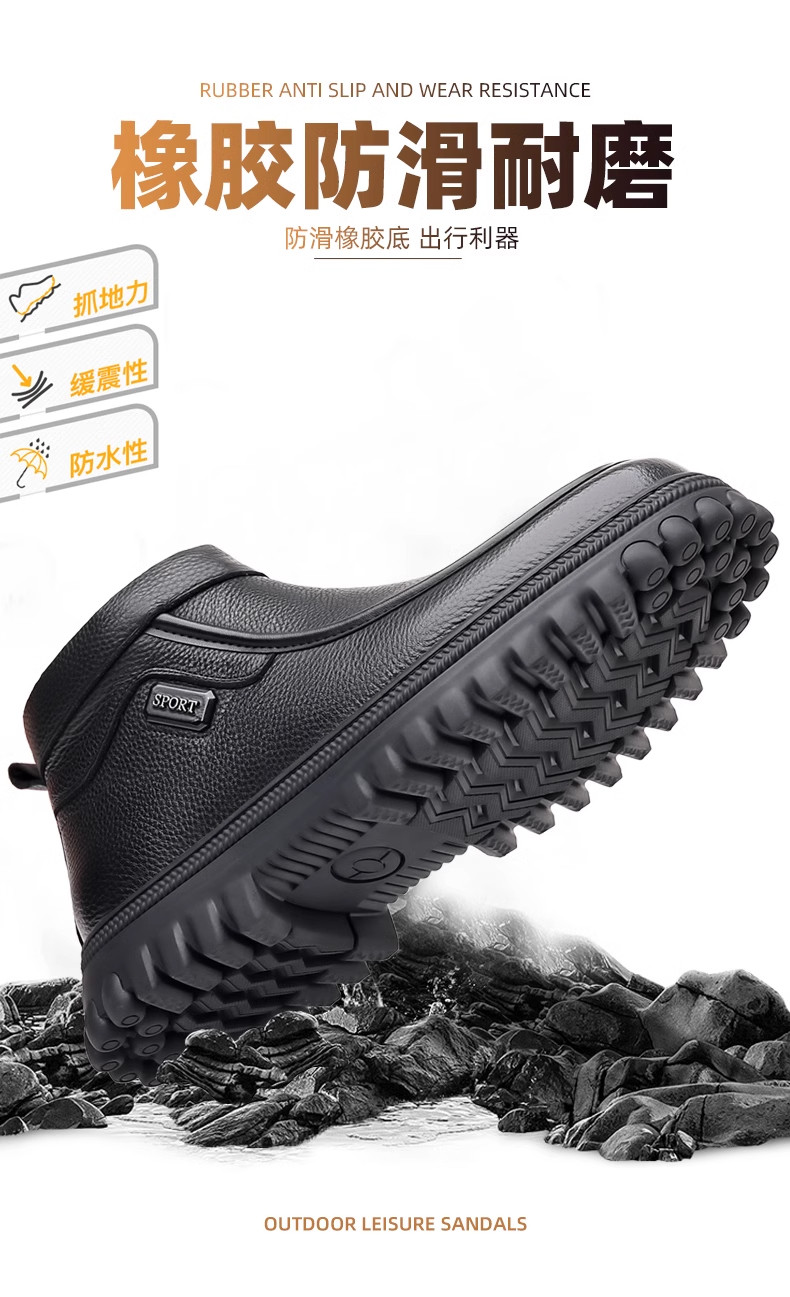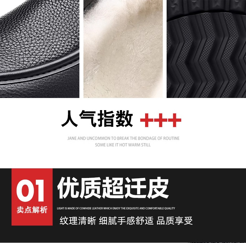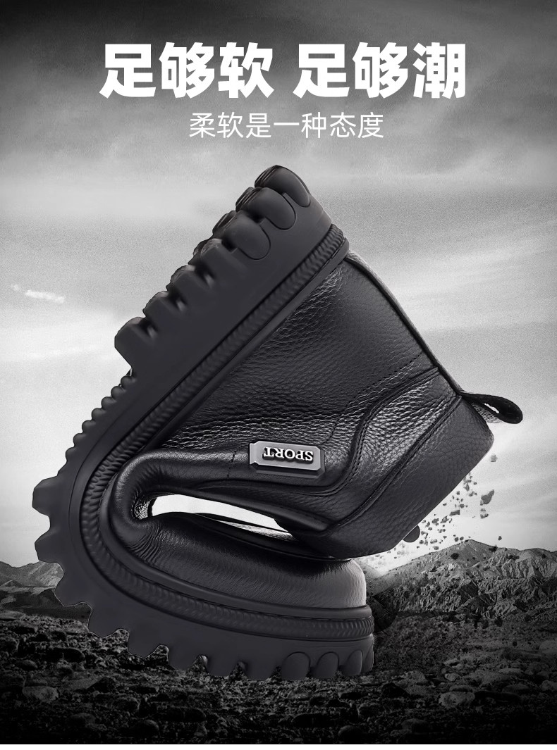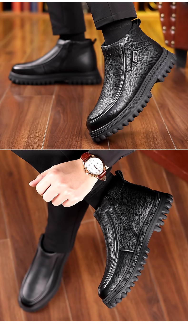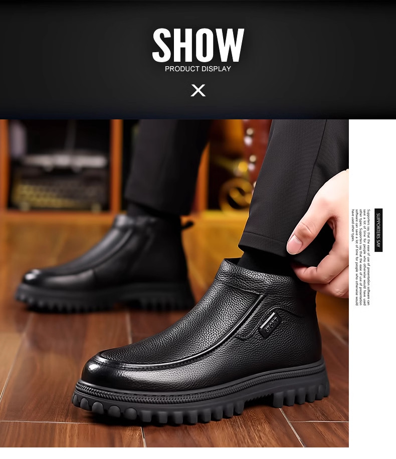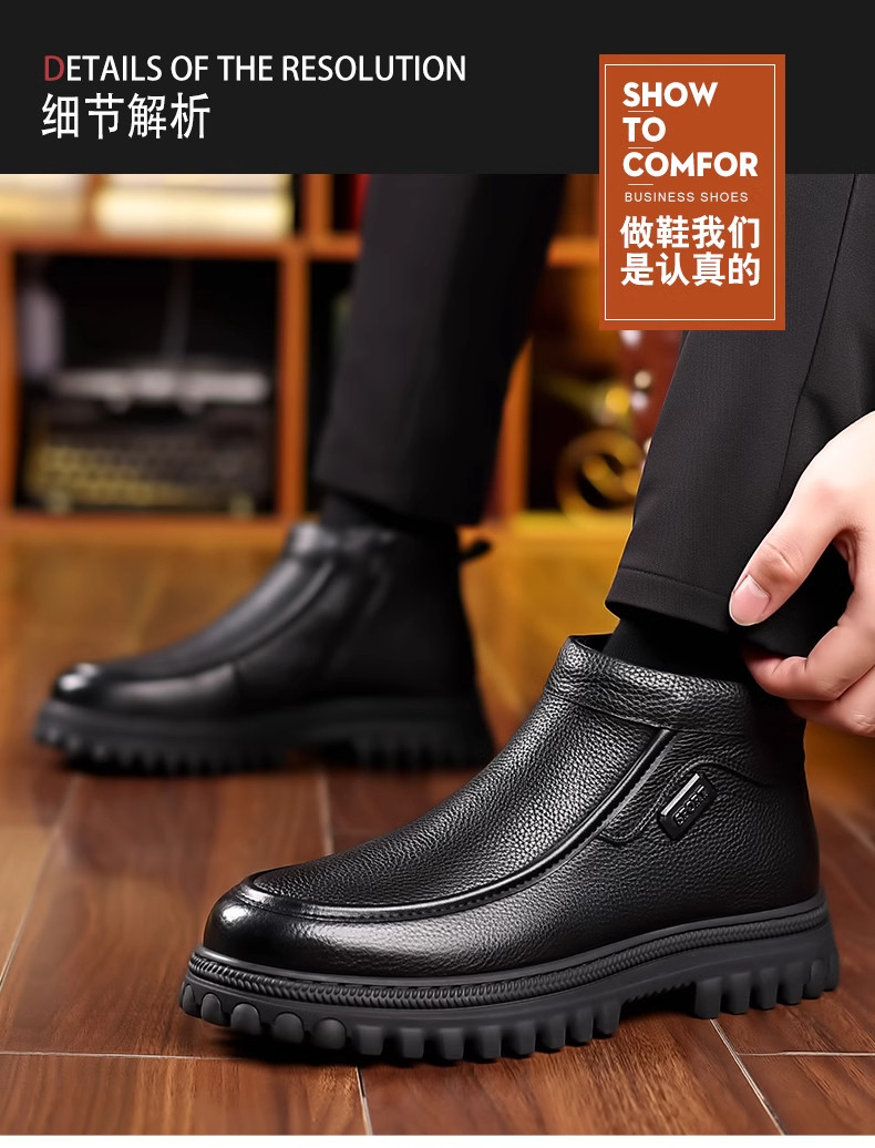 Woodpecker Northeast Large Cotton Shoes for Men, Winter Warm Fleece-Lined Thickened Wool Leather Shoes, High-Top Dad Shoes, Snow Boots for Men