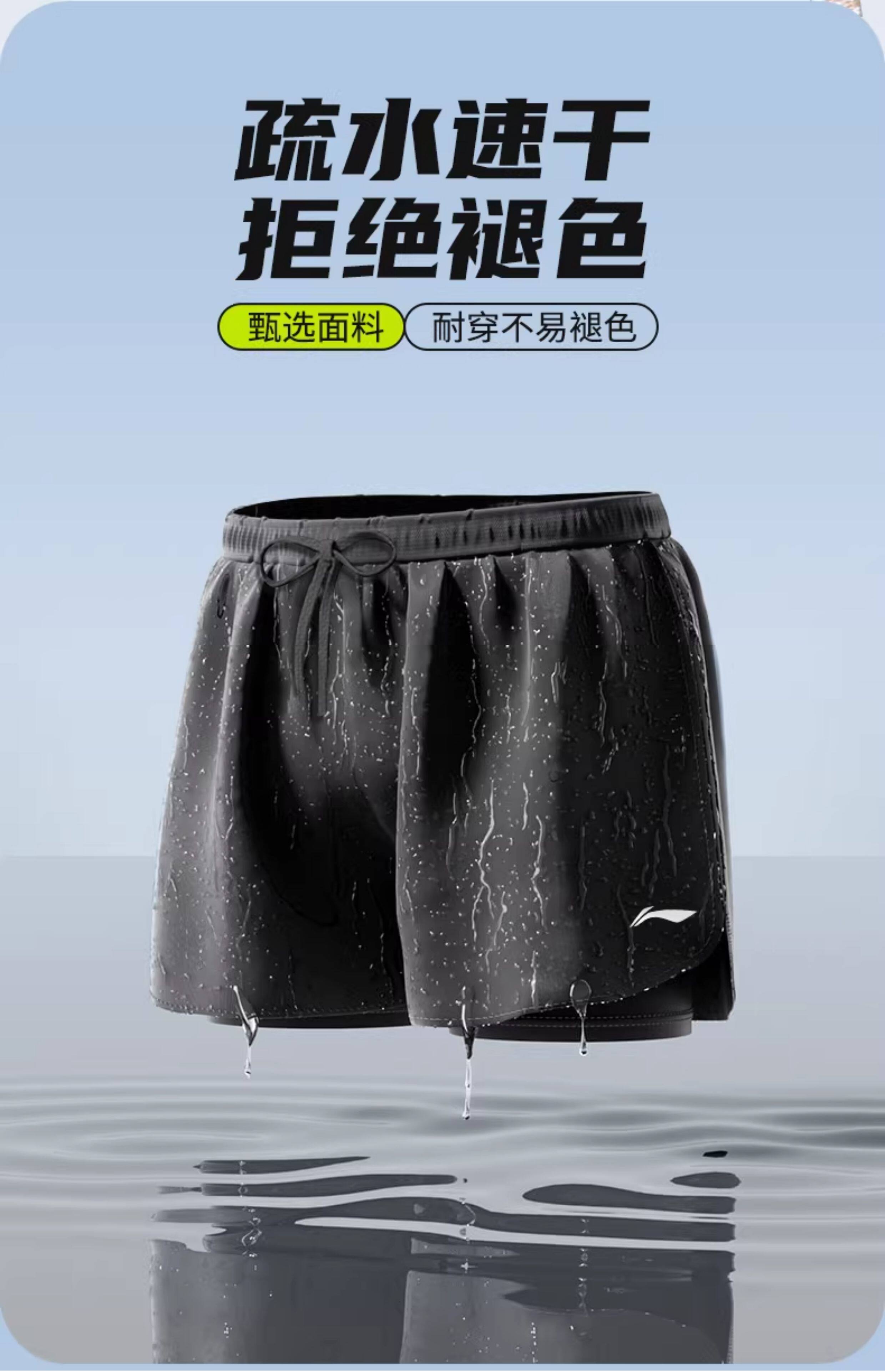 Li-Ning Sports Shorts for Men, Running, Fitness, Basketball, Beach Shorts, Hot Spring Women's Lined Faux Ice Silk American-Style Set for Swimming