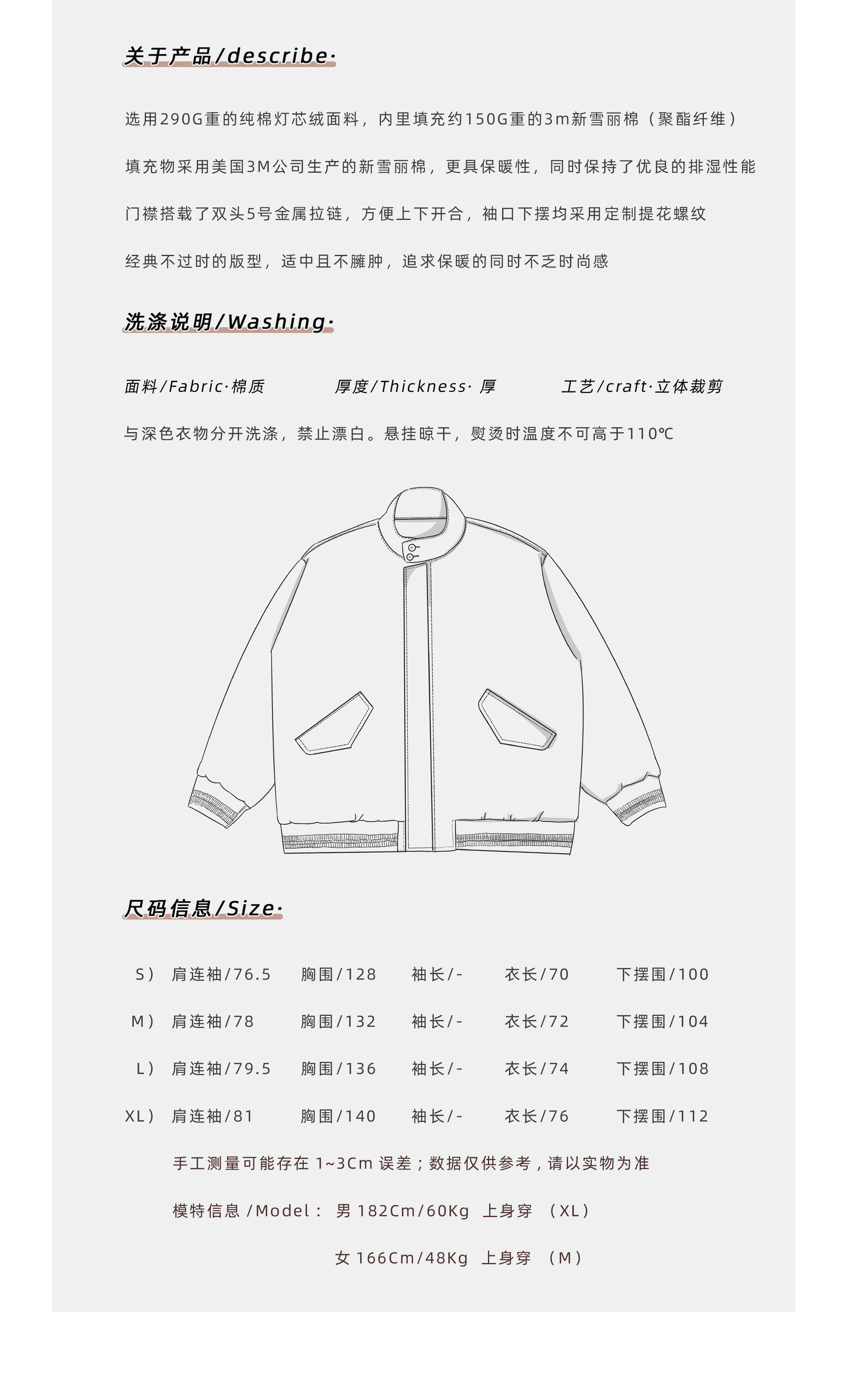 Buttbill Winter Japanese Retro 3m Thinsulate Corduroy Jacket Harrington Loose Coat Cotton Clothing