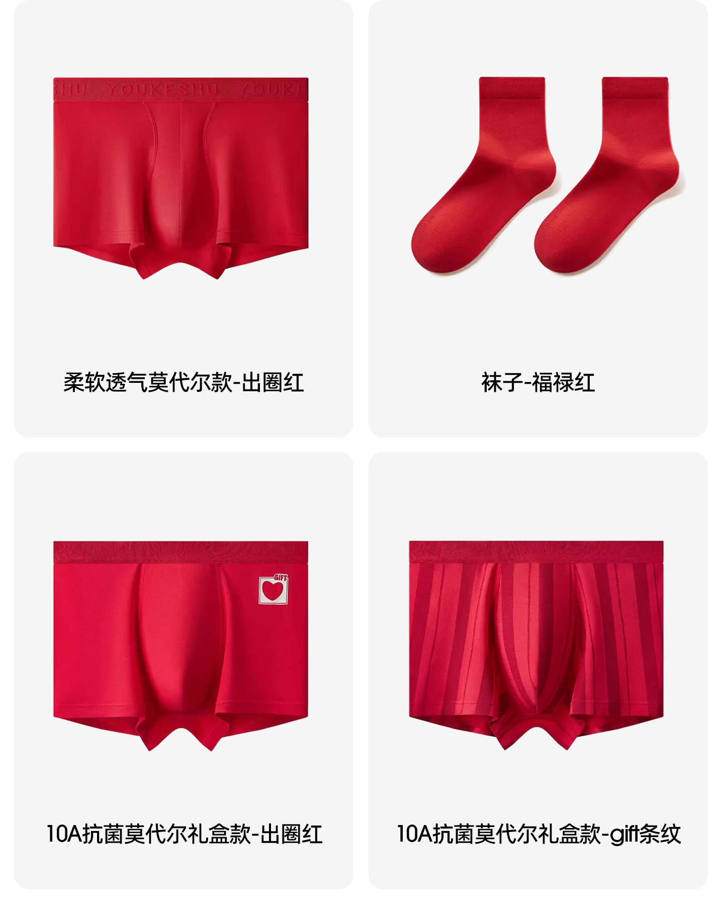 Men's Red Underwear for the Year of Birth, 10A Pure Cotton Antibacterial Crotch, Men's Gift Box Red Shorts