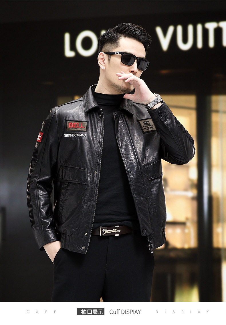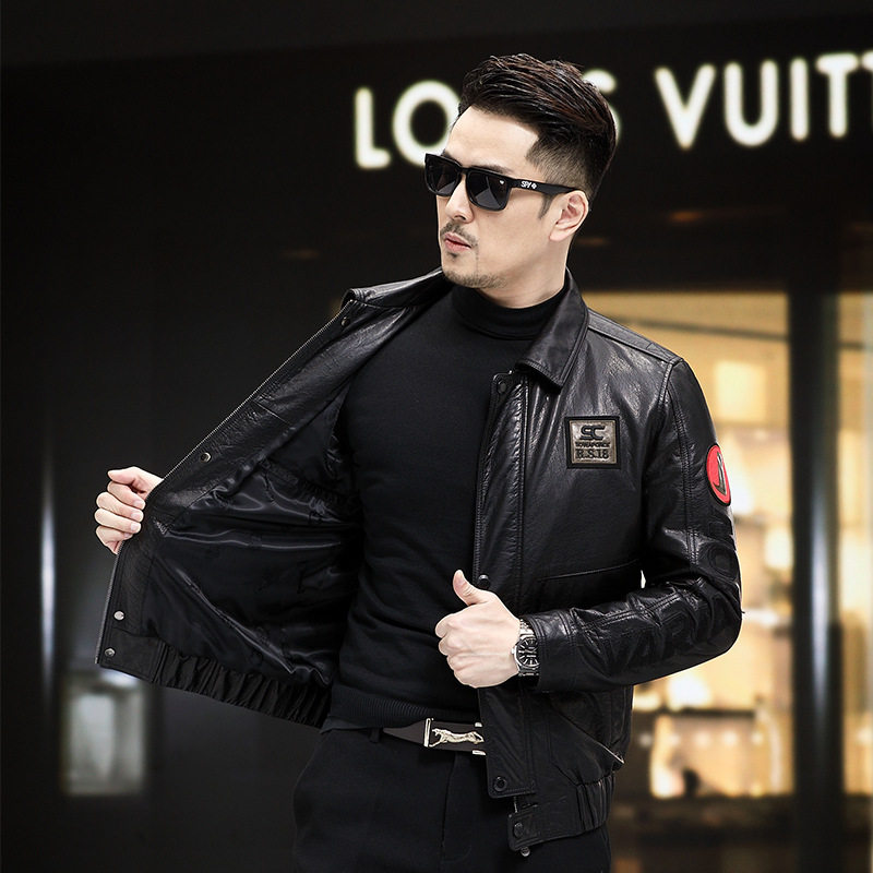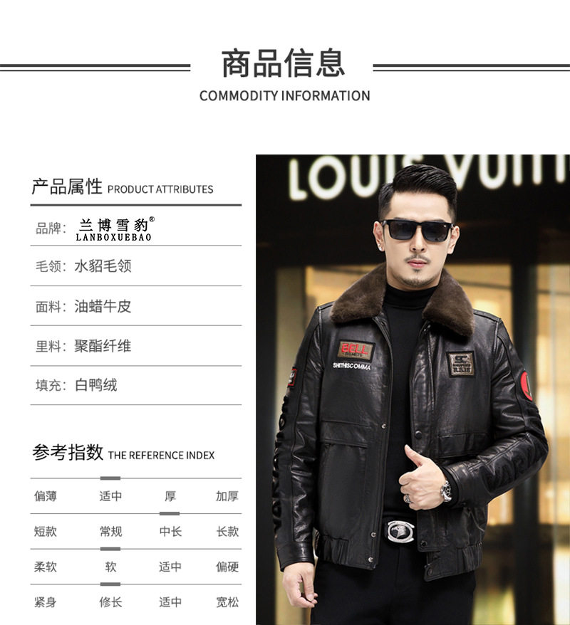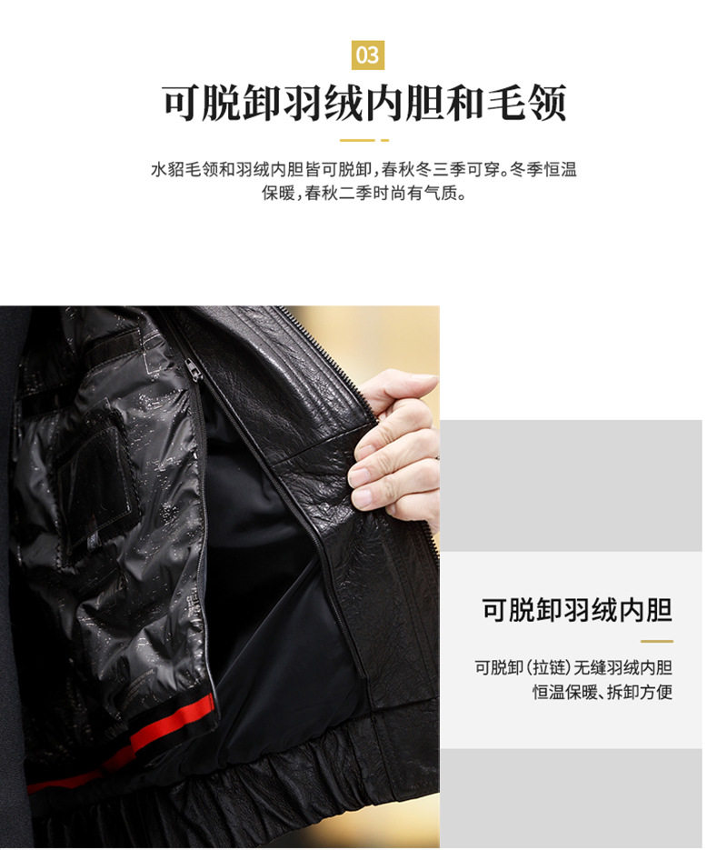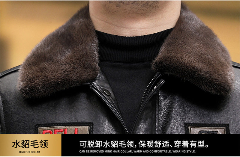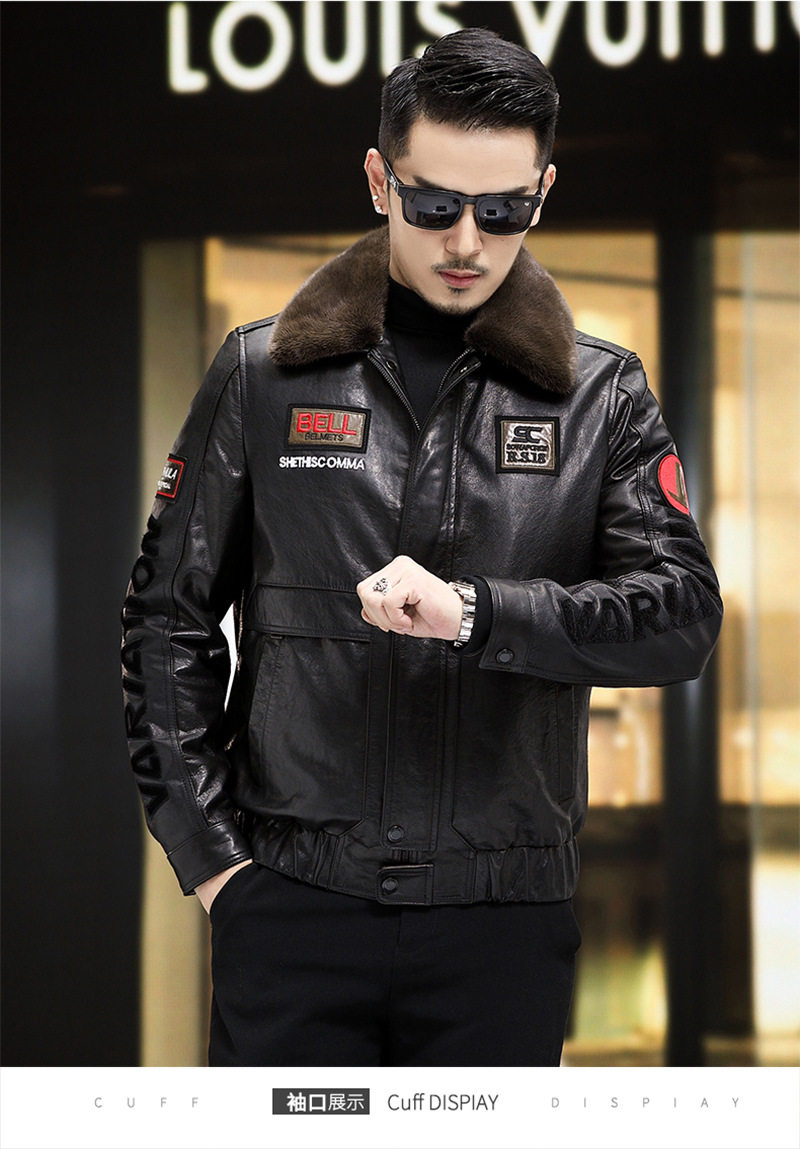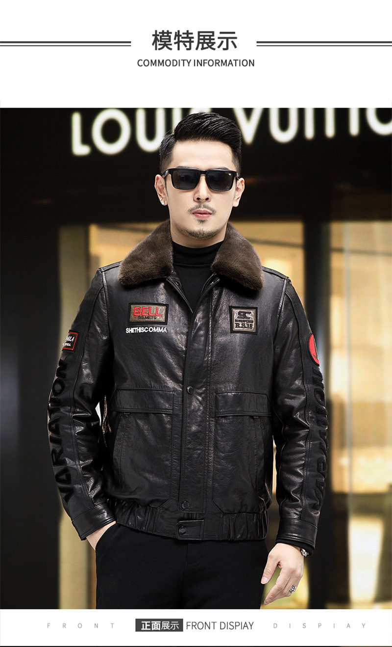 Haining Genuine Leather Jacket for Men with Mink Fur Collar, First Layer Cowhide, down Lining, Motorcycle Leather Jacket, Winter Coat