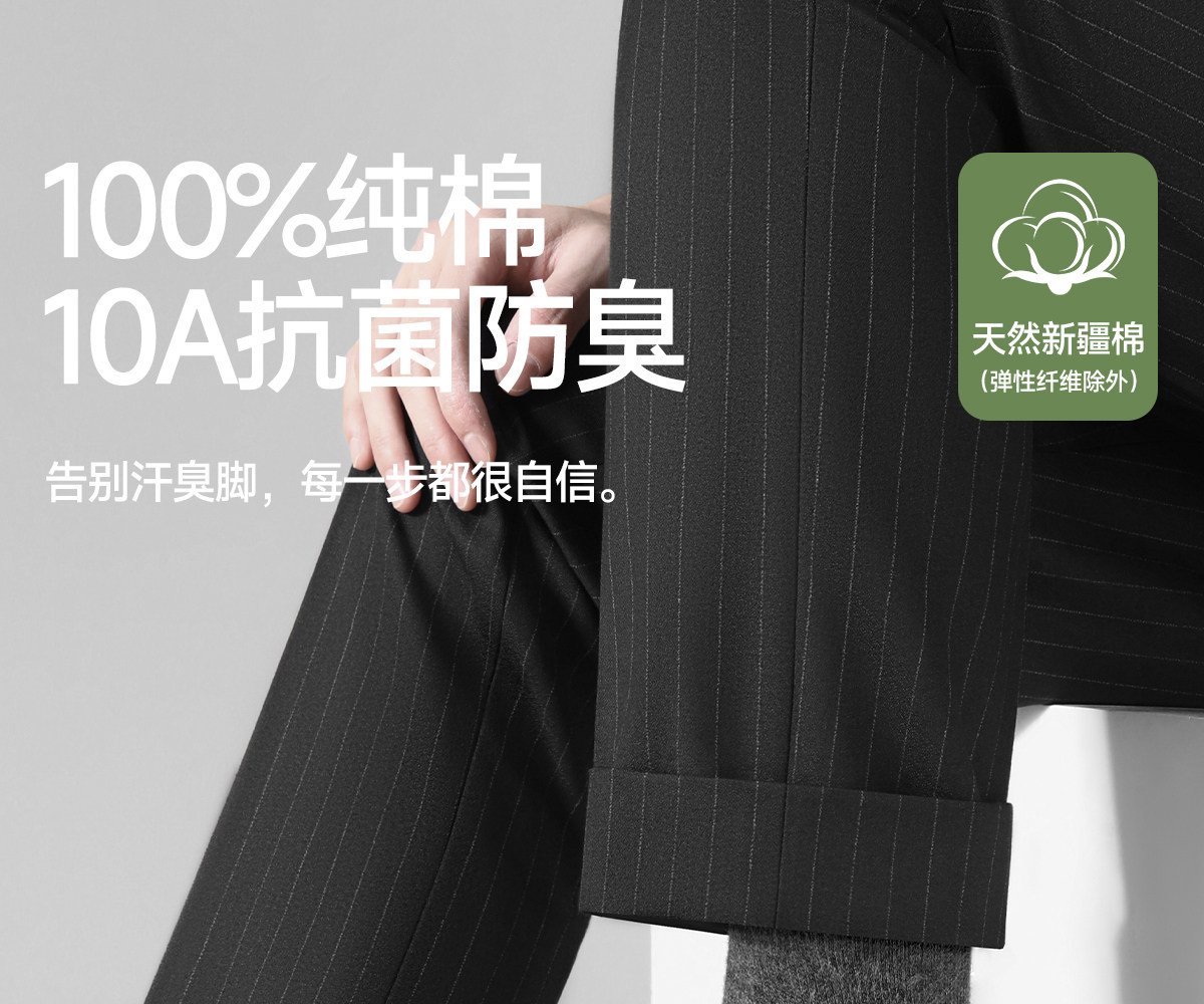 Septwolves Socks Men's Pure Cotton Sweat-Absorbent and Odor-Resistant Breathable 7A Antibacterial Mid-Calf Socks Black Men's Style for Autumn and Winter