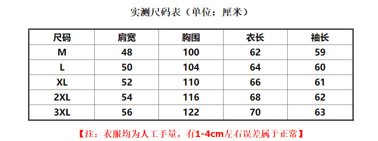 【注:衣服均为人工手量,有1-4cm左右误差属于正常】