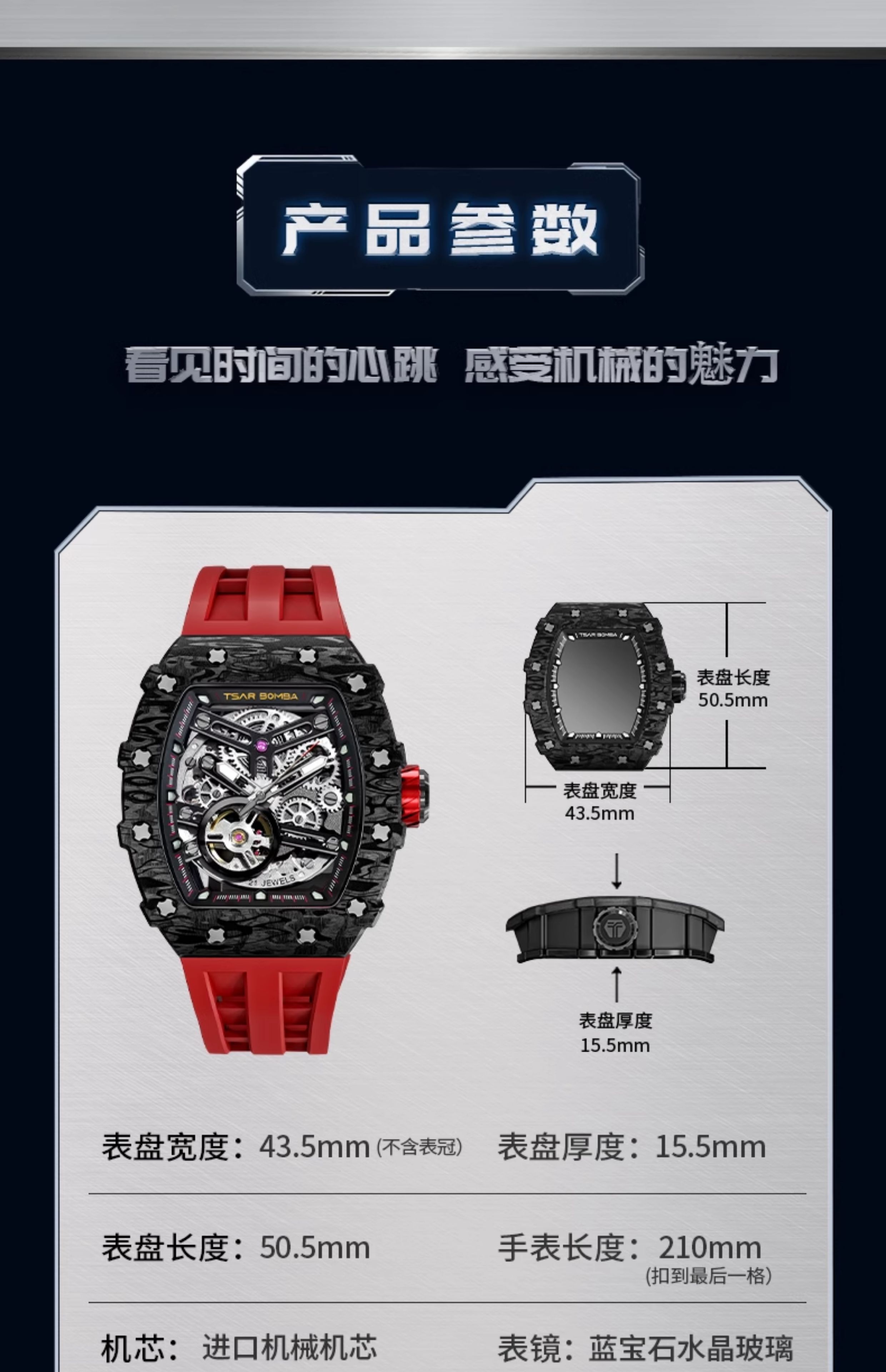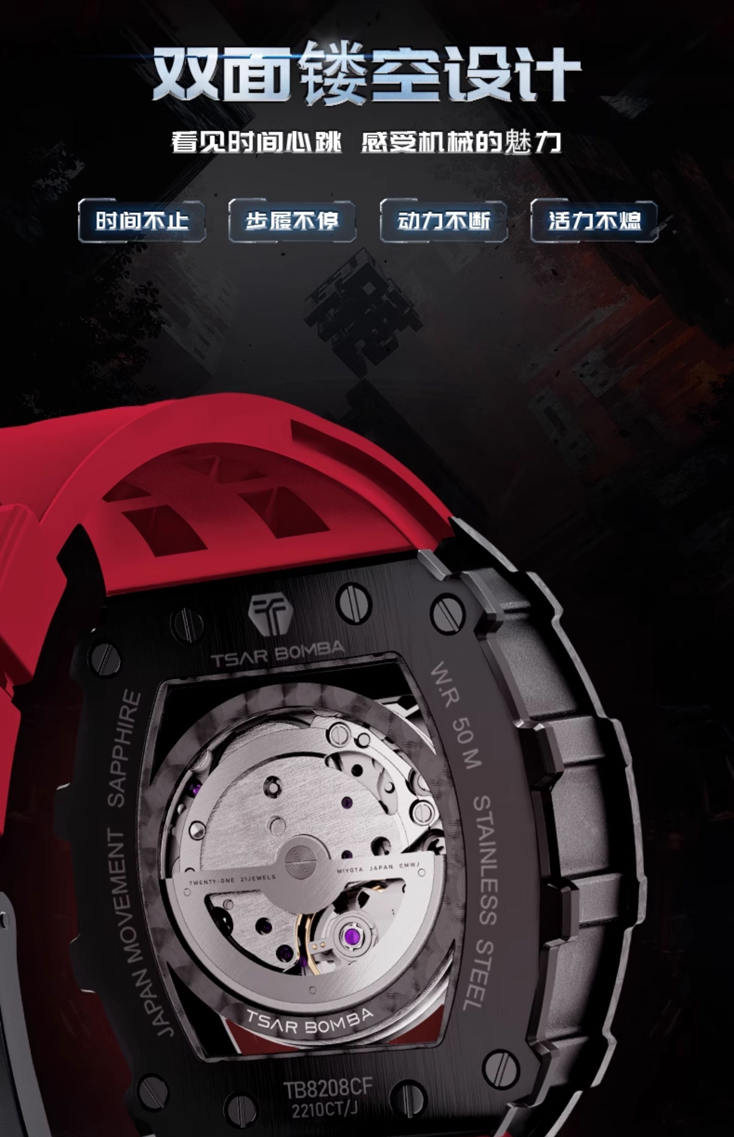 Tsar Bomba Mechanical Duke Geek Series Carbon Fiber Fully Automatic Mechanical Watch Official Men's Gift