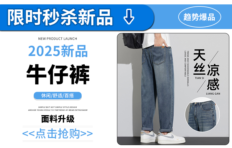 Men's Casual Jeans Autumn Men's Clothing 2025 New Spring and Autumn Trendy Brand Loose Straight-Leg Men's Autumn and Winter Long Pants