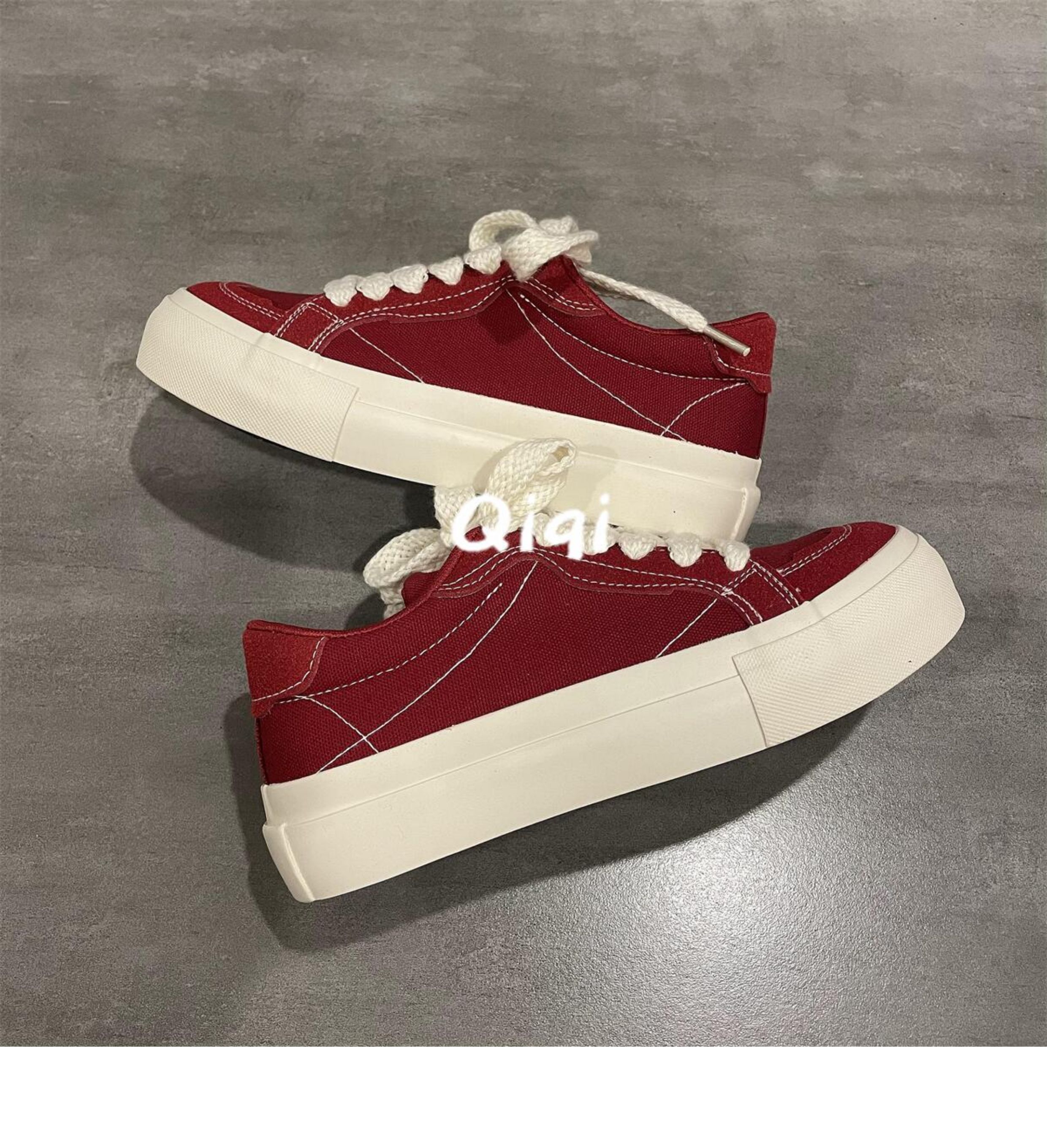 Qiqi's Home Big Red Canvas Shoes for Women 2023 Summer New Breathable Half-Slip Niche Sneakers