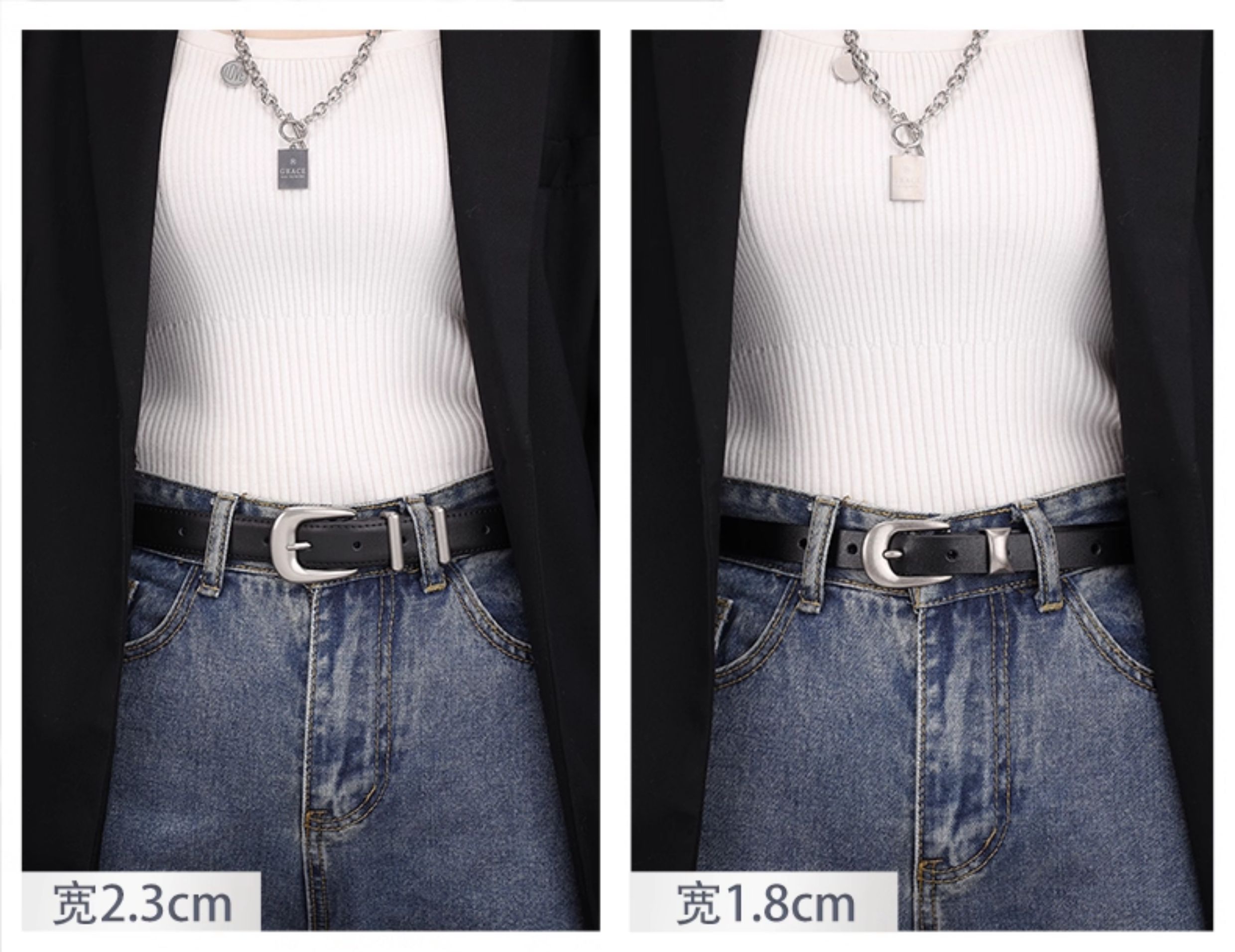 Autumn Leather Belt for Women, Genuine Leather Decorative Niche Solid Pin Buckle Versatile Belt for Jeans, Black Unisex Slimming Belt