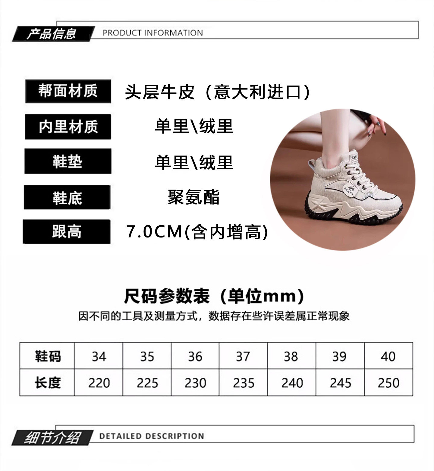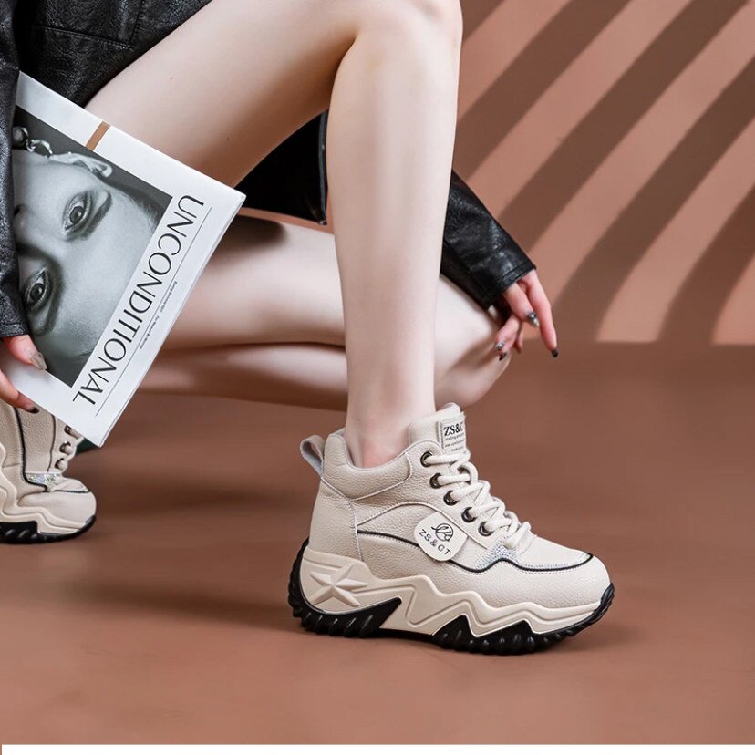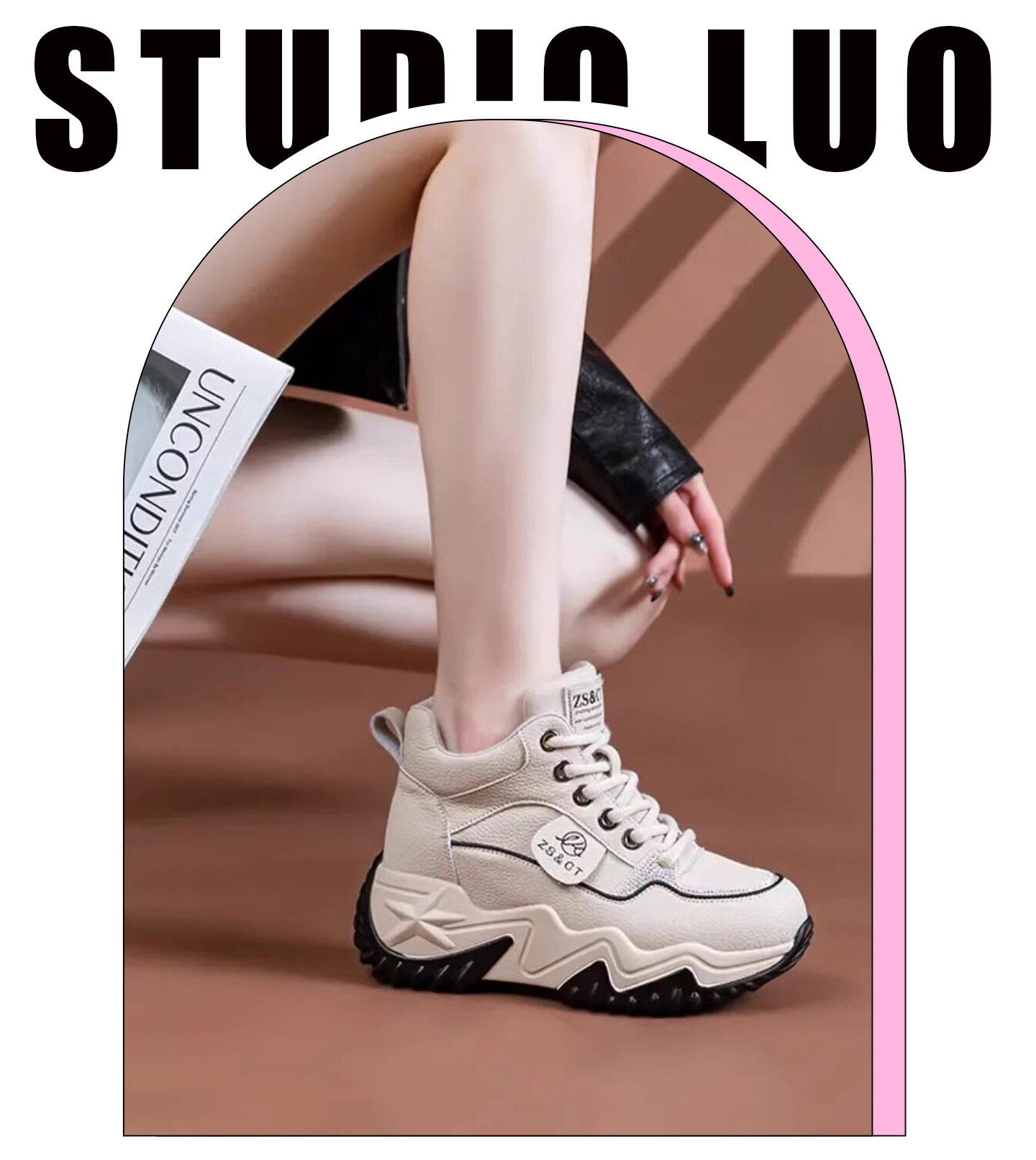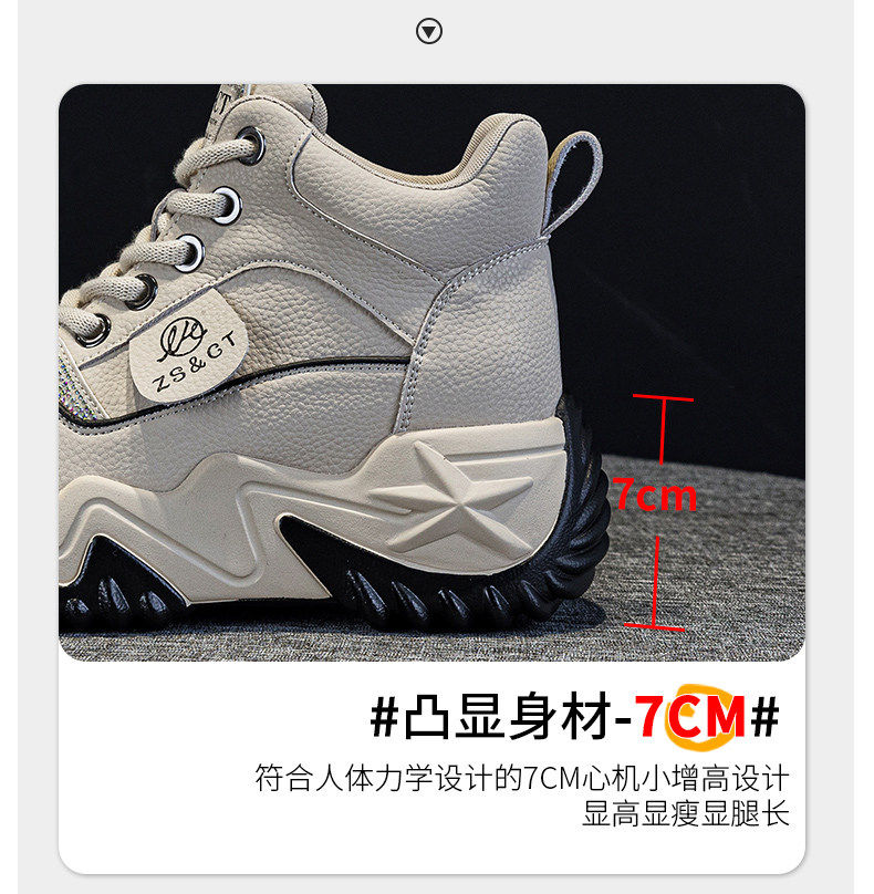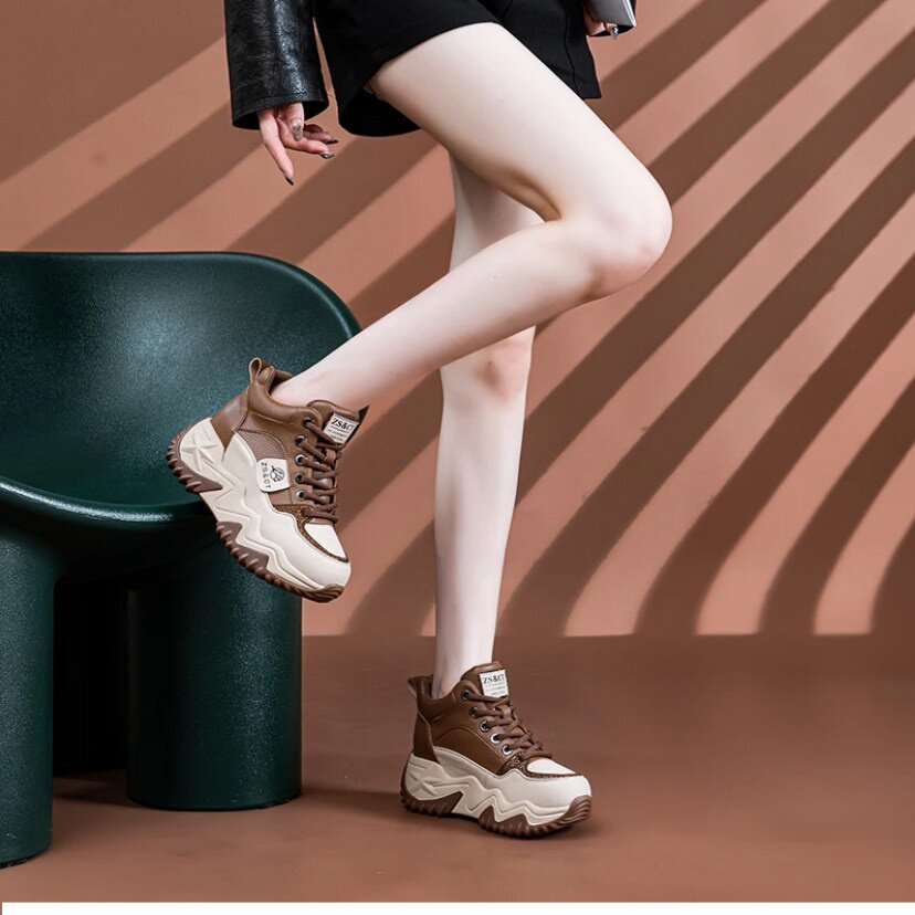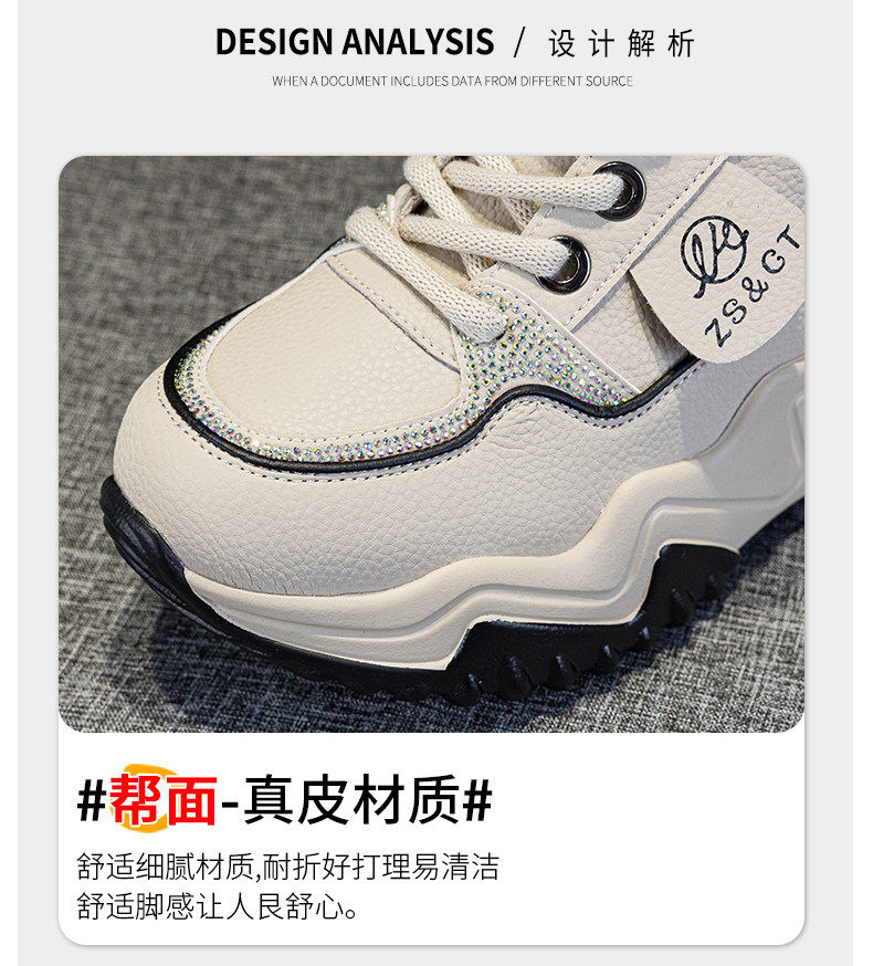 Hong Kong Genuine Leather Dad Shoes for Women, Spring and Autumn Fashion Versatile Single Shoes, Thick-Soled Height-Increasing Sports Casual High-Top White Shoes