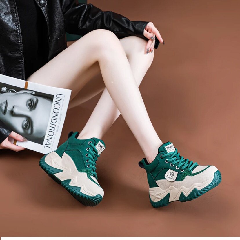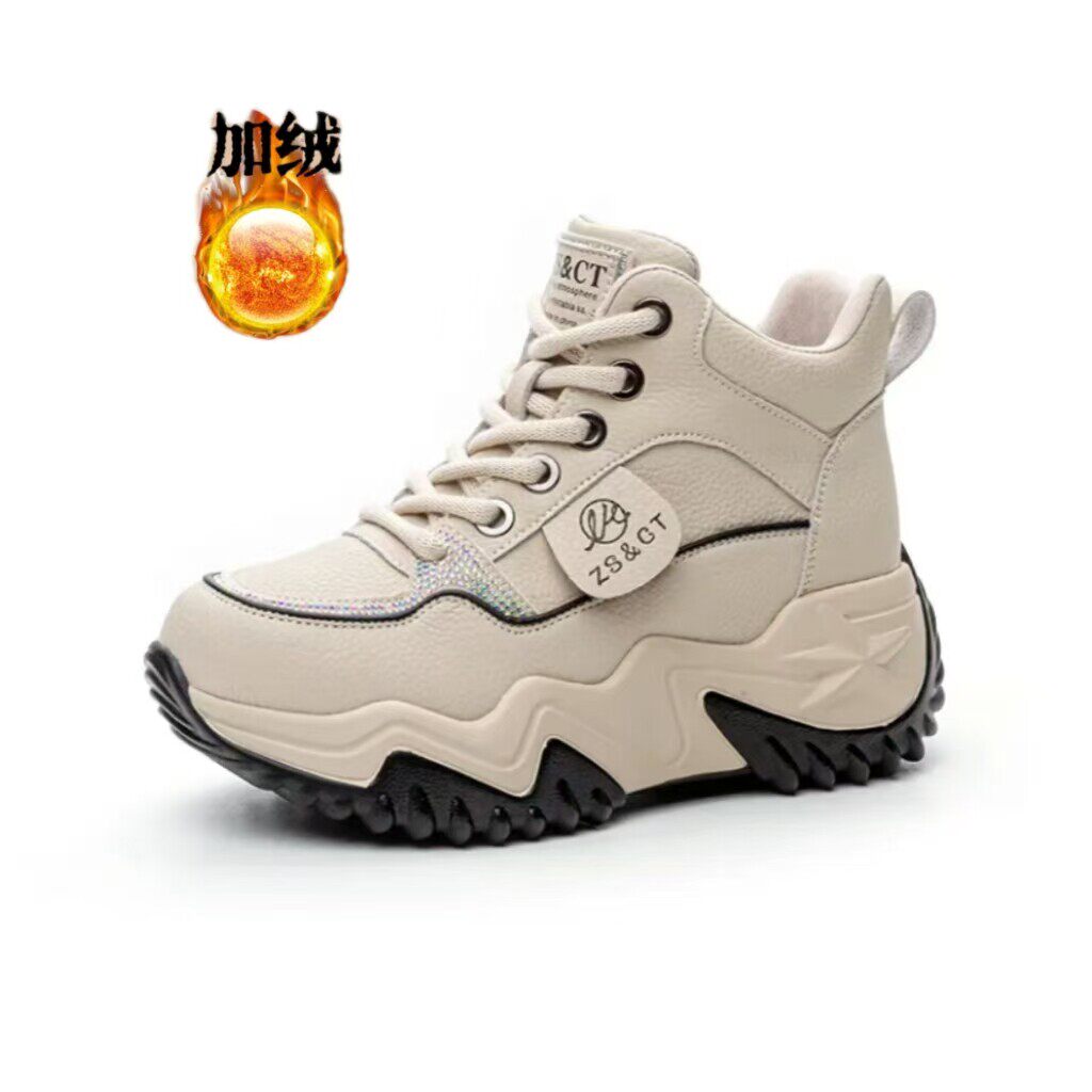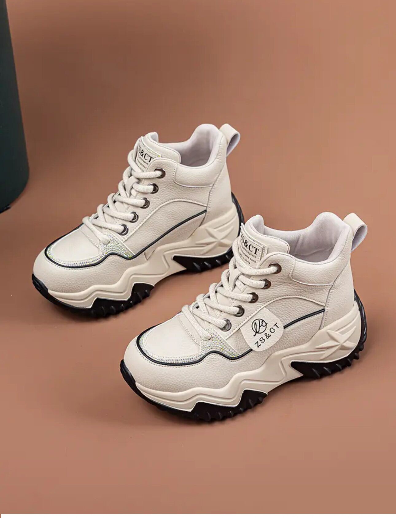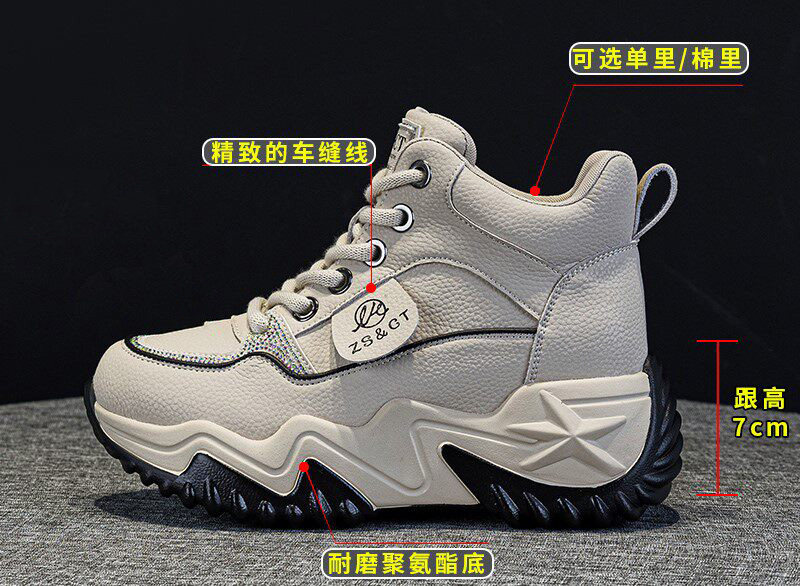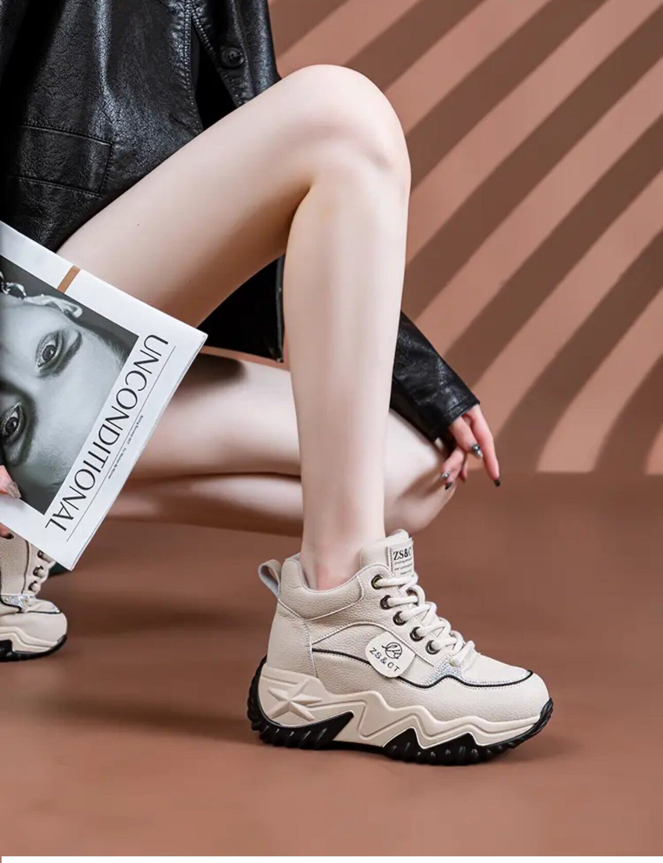 Hong Kong Genuine Leather Dad Shoes for Women, Spring and Autumn Fashion Versatile Single Shoes, Thick-Soled Height-Increasing Sports Casual High-Top White Shoes