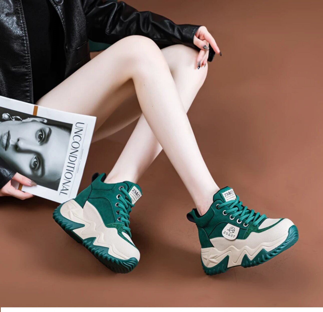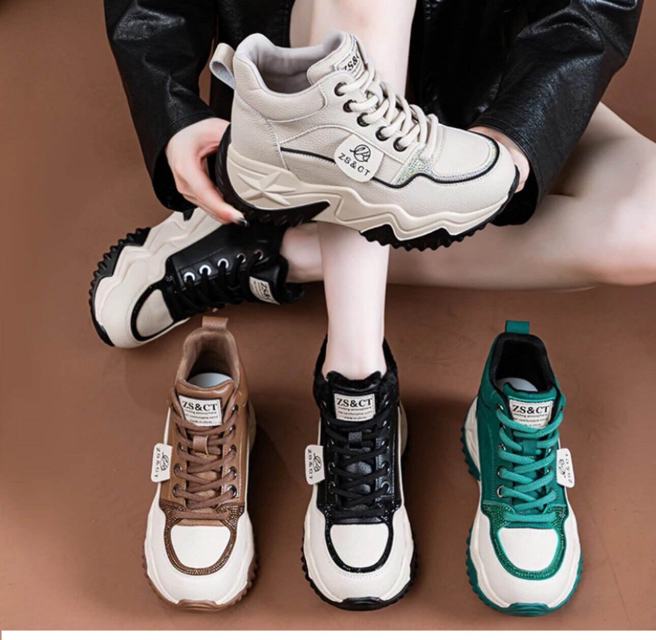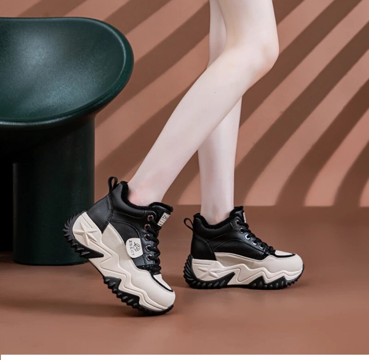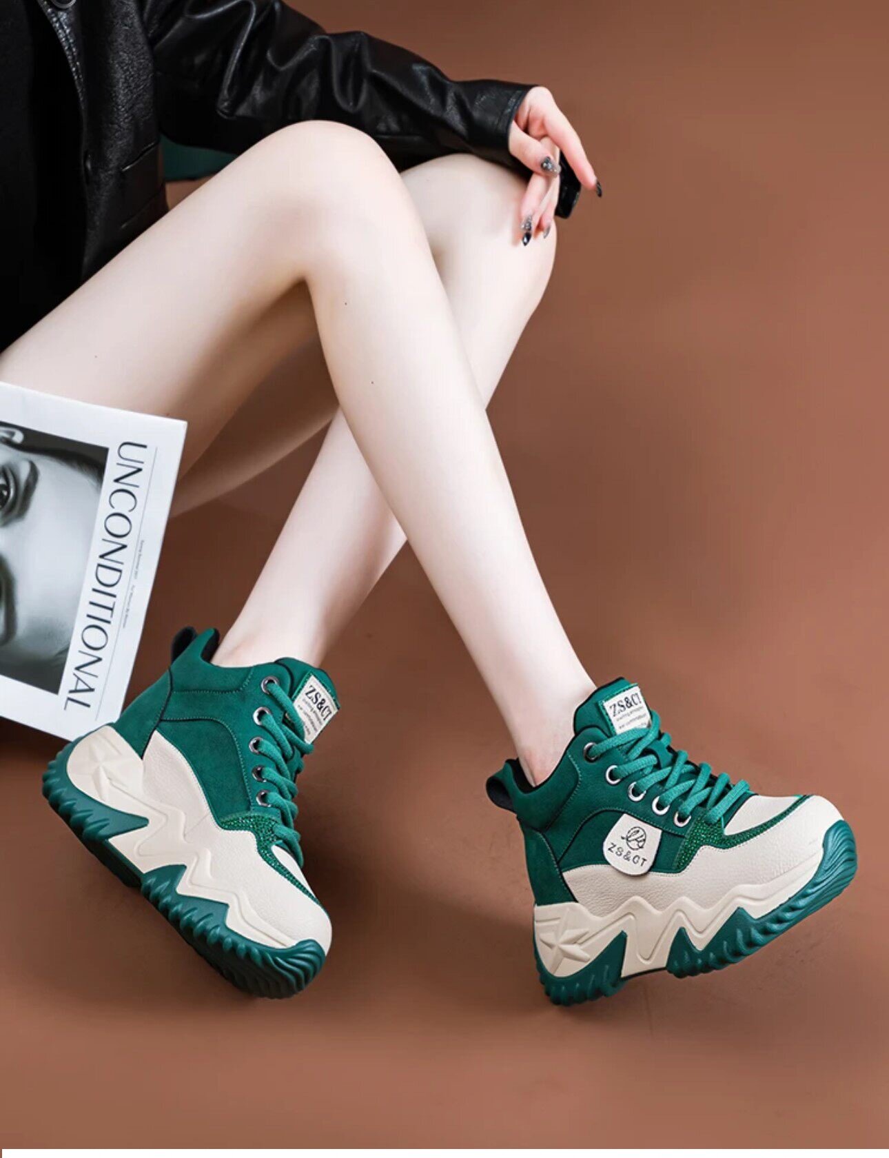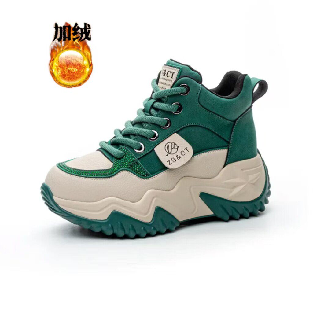 Hong Kong Genuine Leather Dad Shoes for Women, Spring and Autumn Fashion Versatile Single Shoes, Thick-Soled Height-Increasing Sports Casual High-Top White Shoes