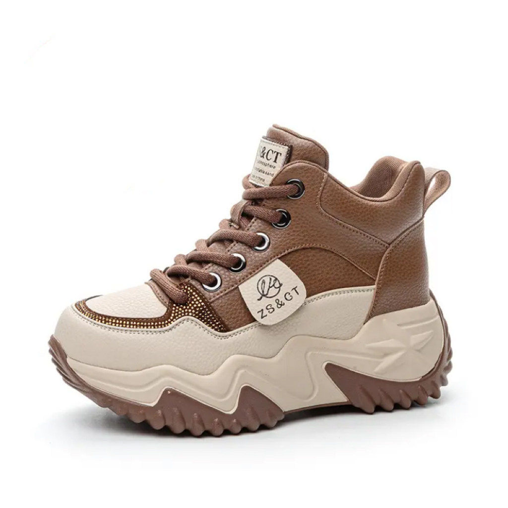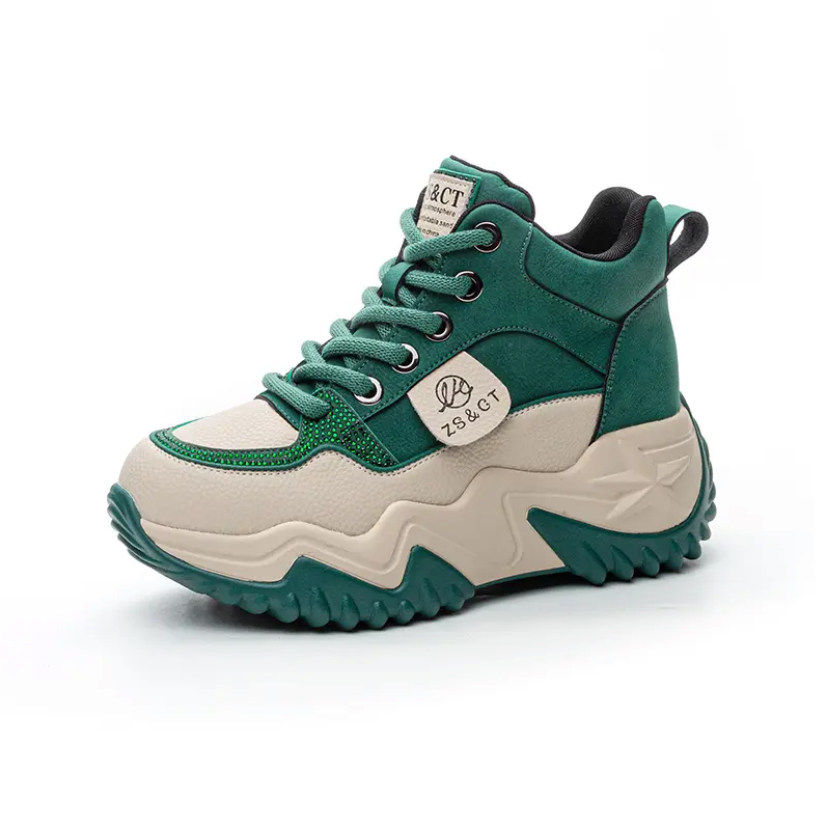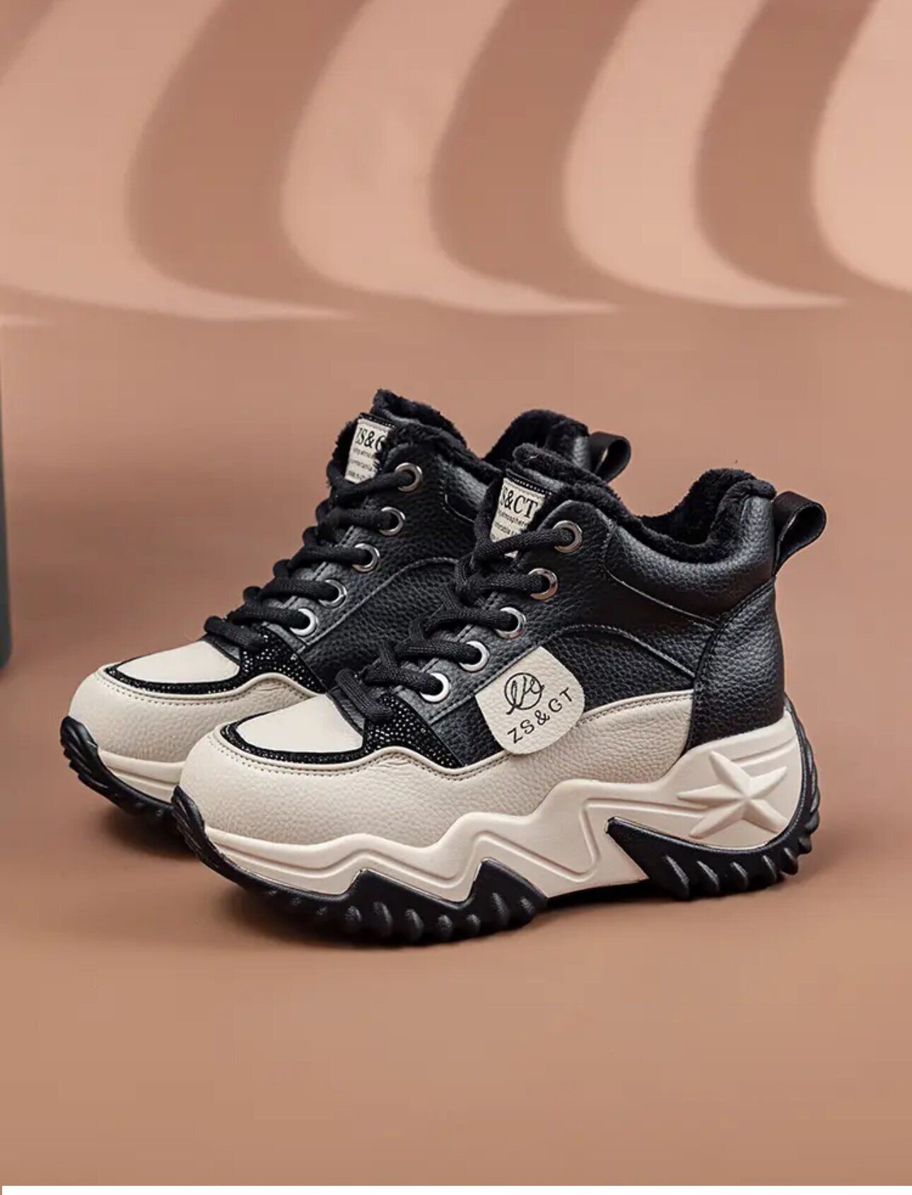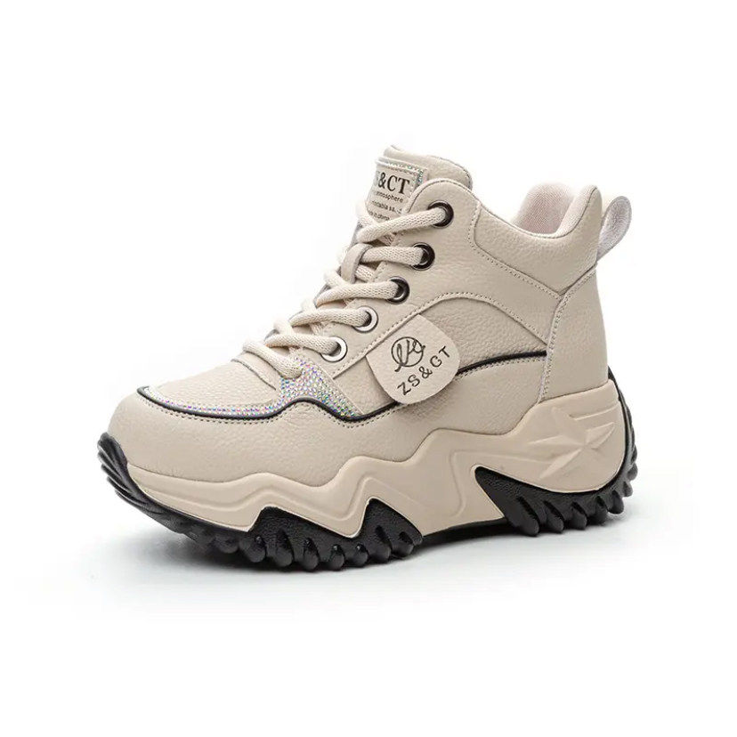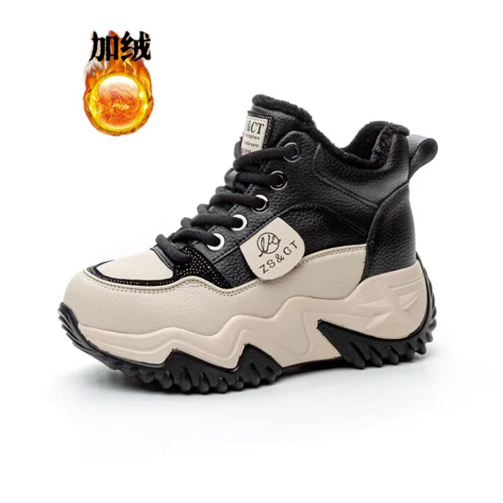 Hong Kong Genuine Leather Dad Shoes for Women, Spring and Autumn Fashion Versatile Single Shoes, Thick-Soled Height-Increasing Sports Casual High-Top White Shoes