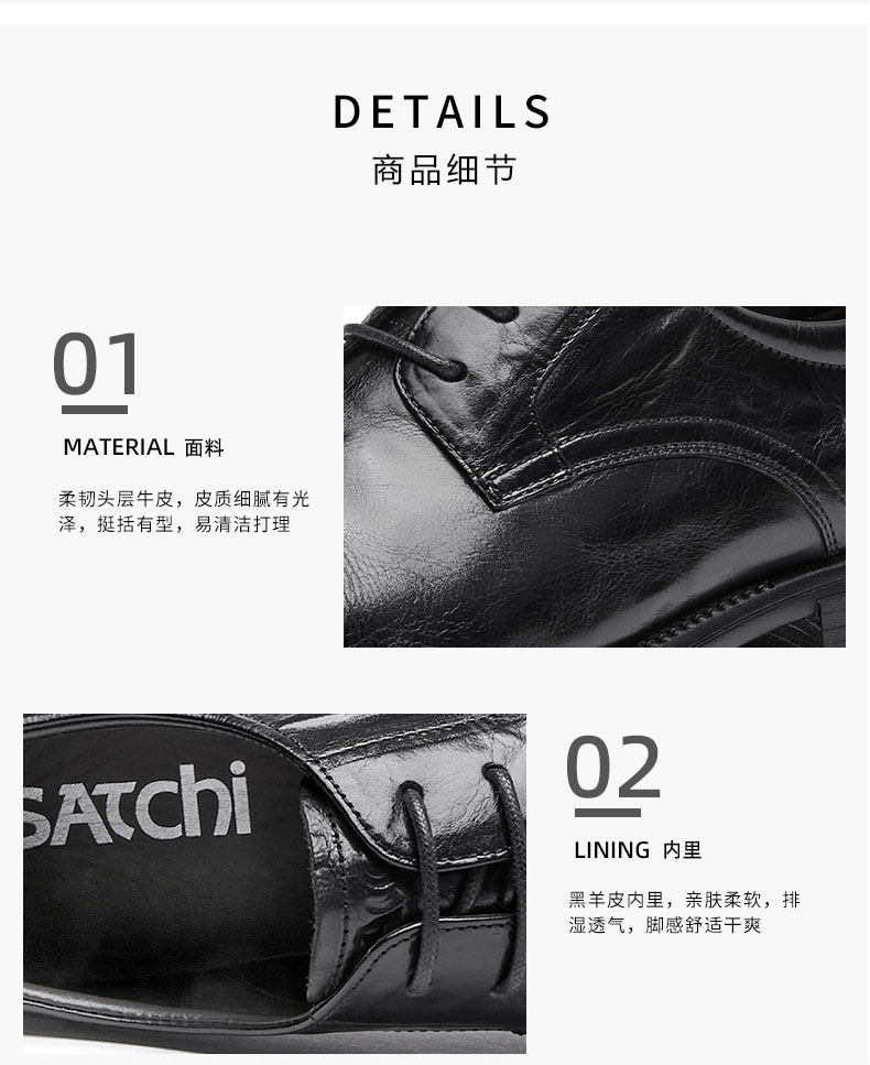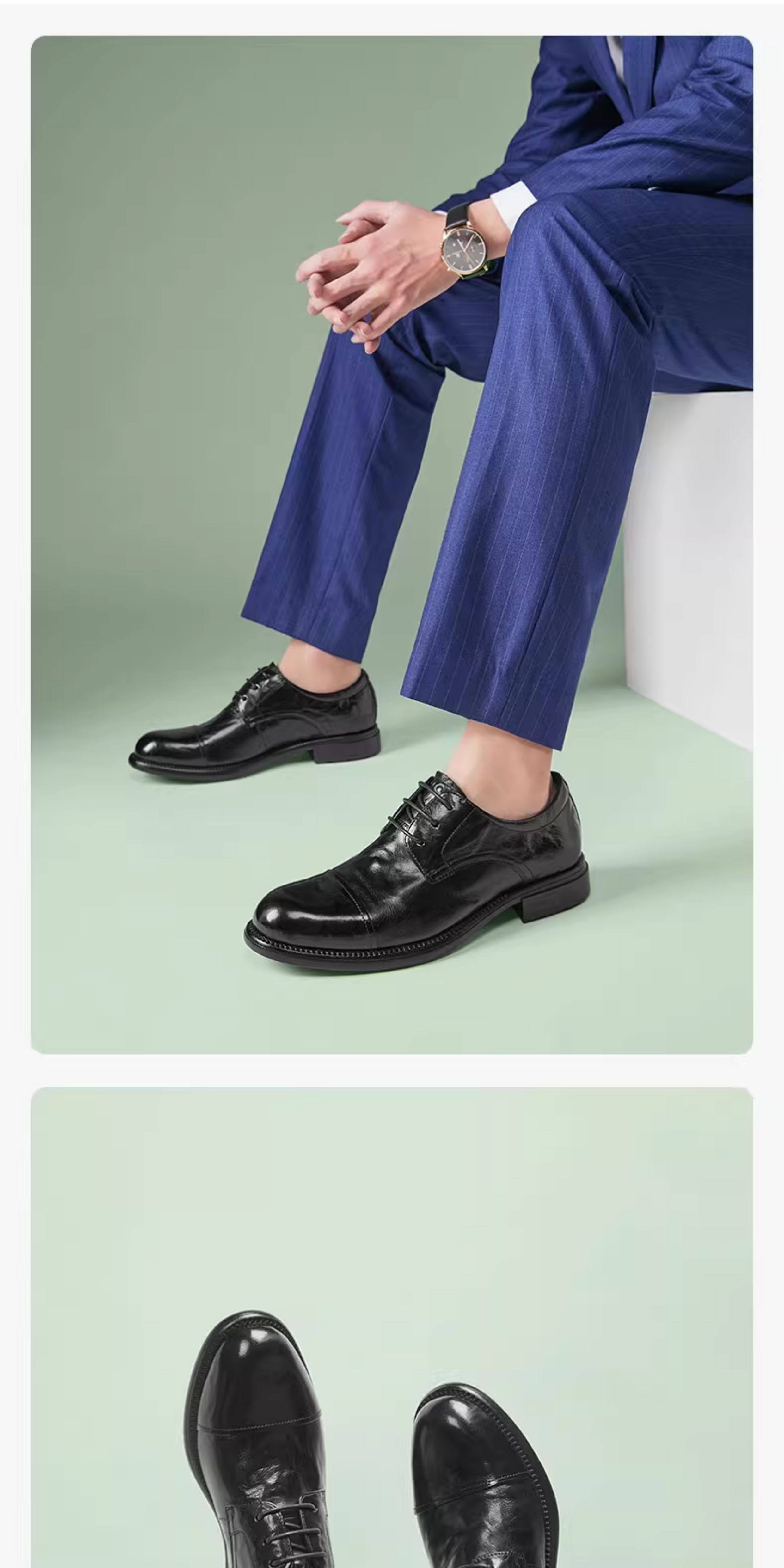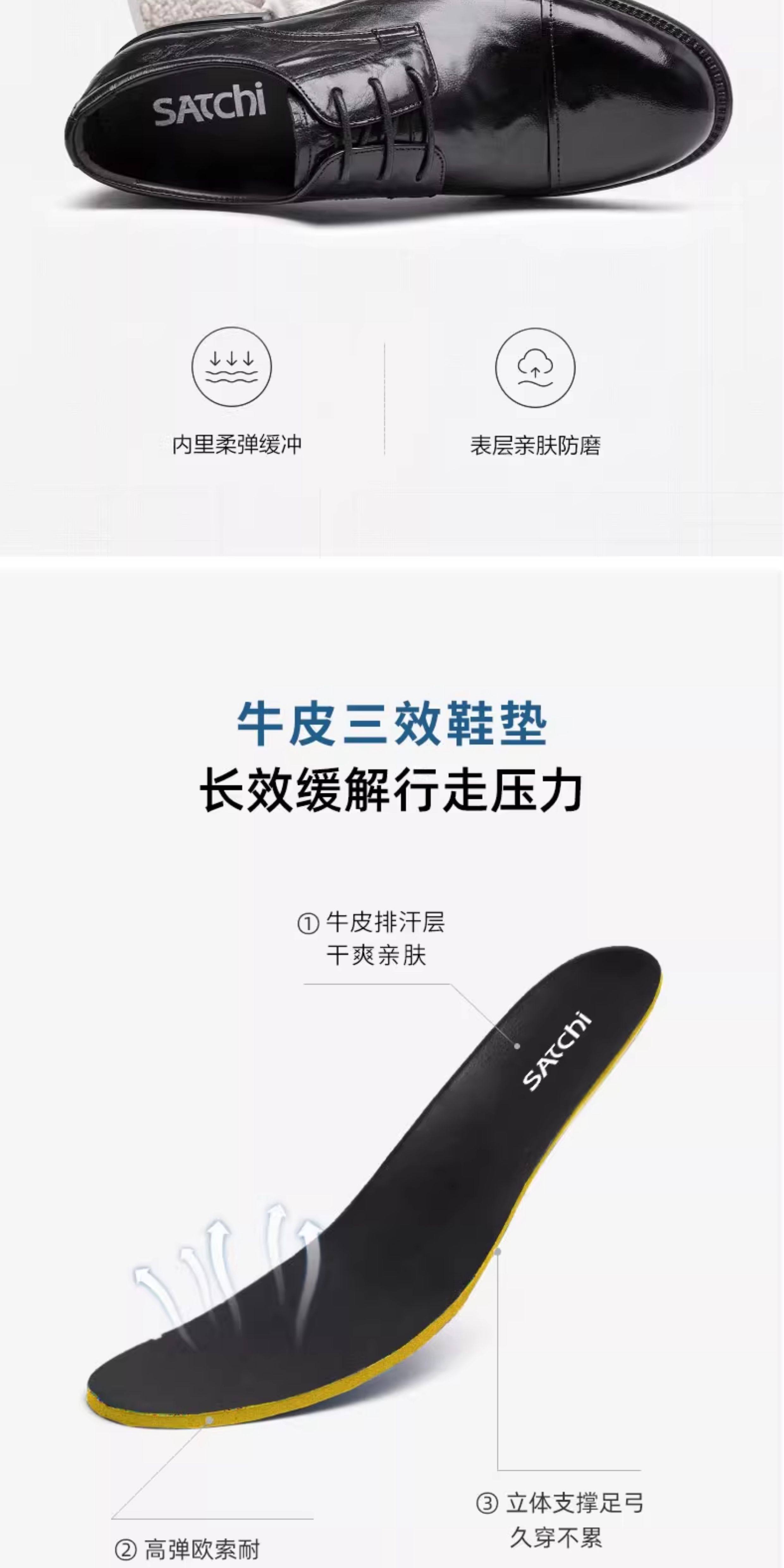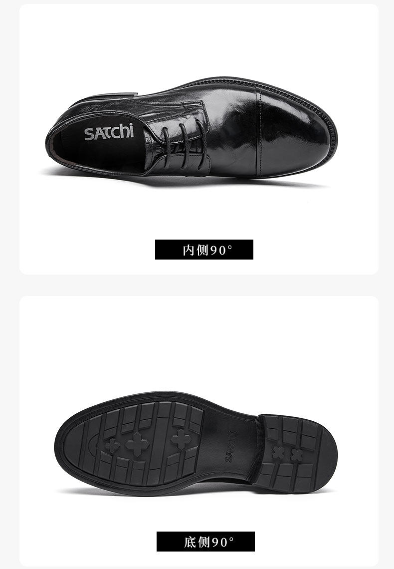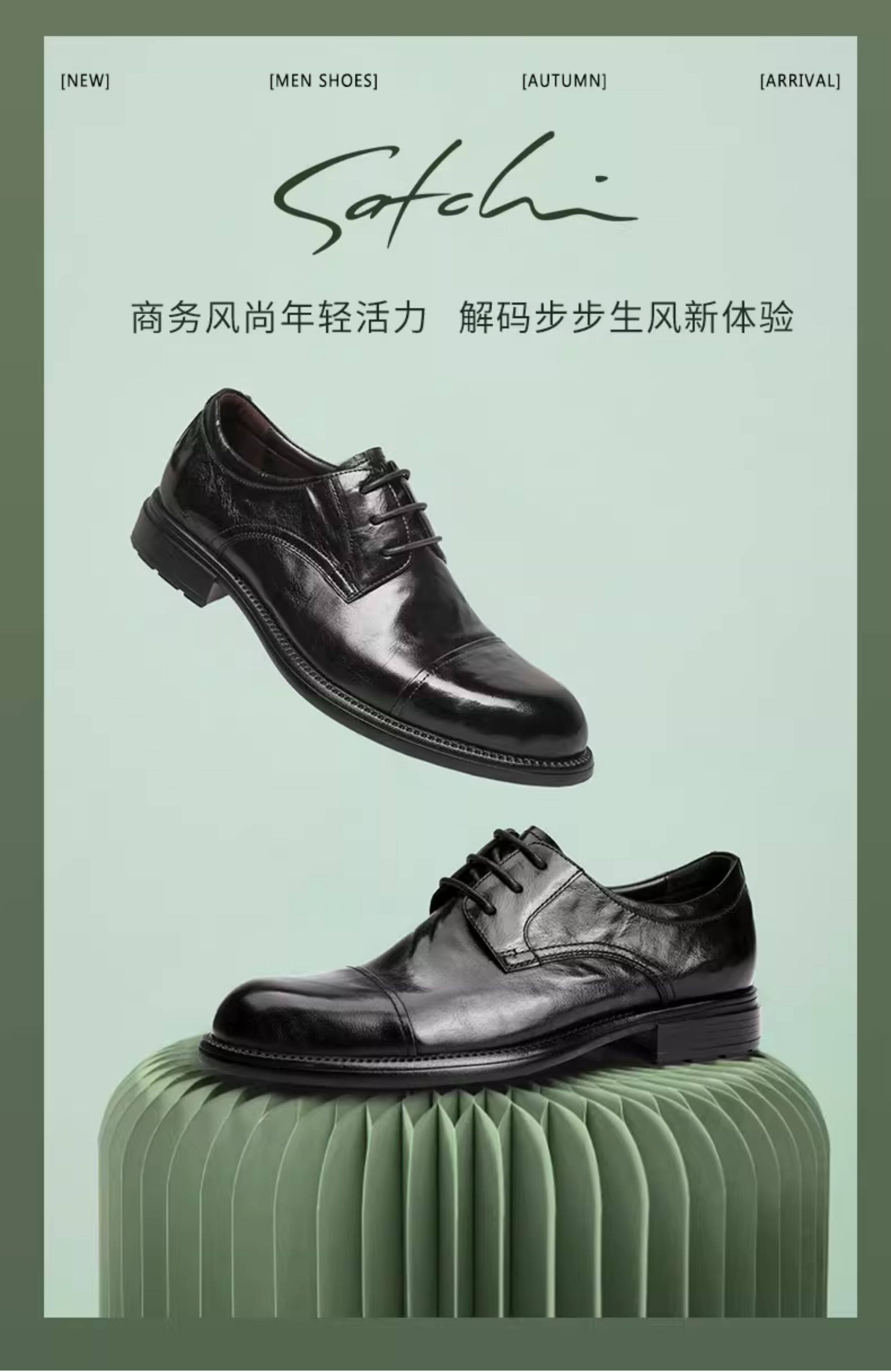 Sachi Men's Shoes 2026 Spring New Fashion Formal Business Derby Shoes with Textured Surface and Three-Panel Design, Fleece-Lined Leather Shoes for Men