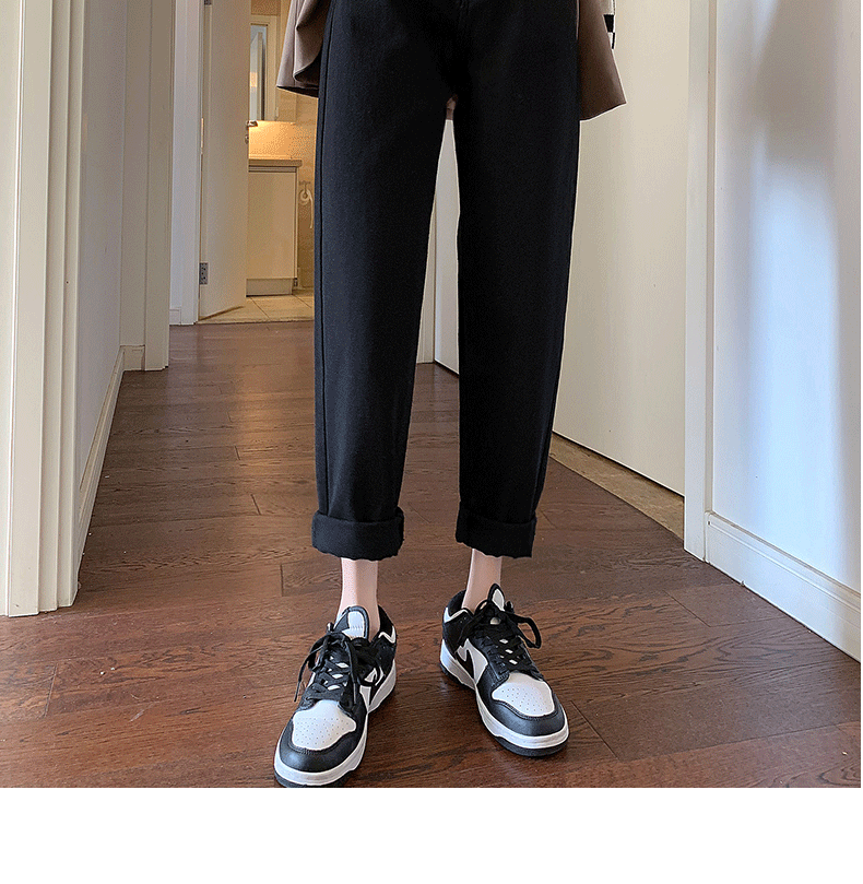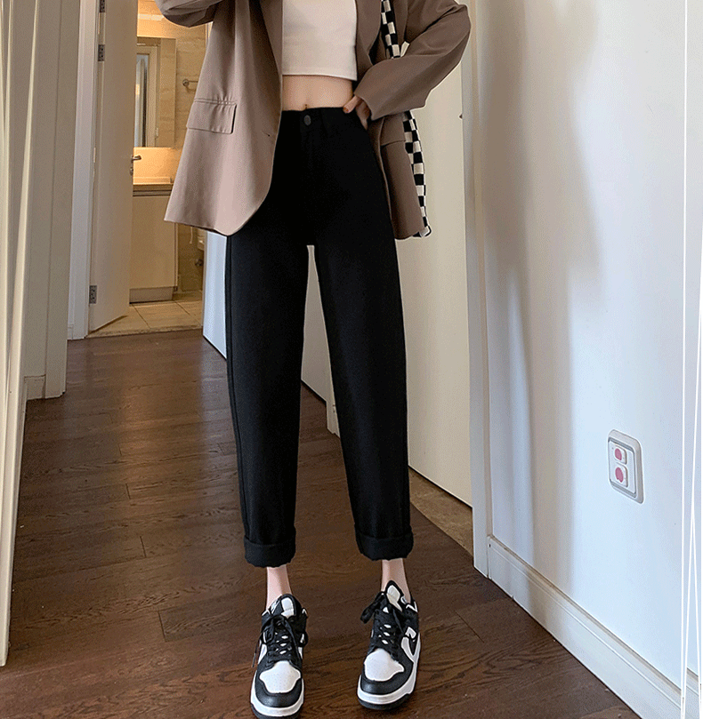 Stretchy Plus-Size Black Harem Jeans for Women, Autumn Fleece-Lined Dad Pants, Slimming Pants for Chubby Girls, Carrot Pants