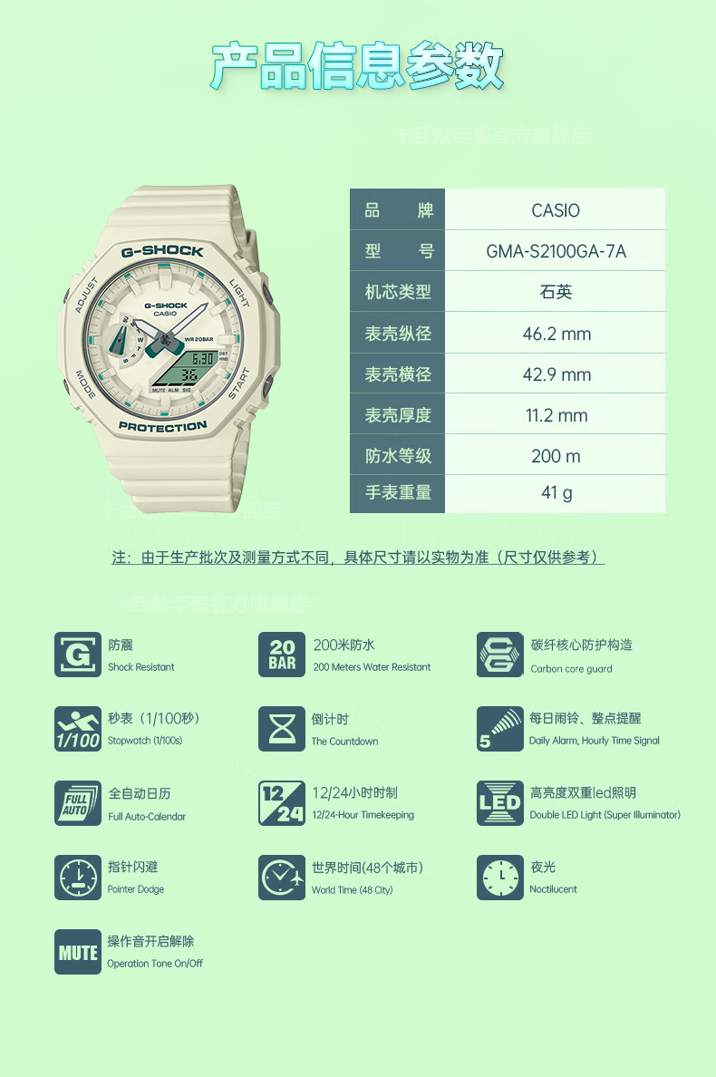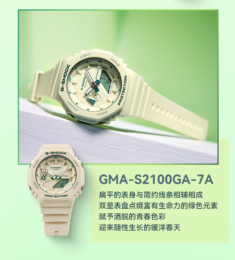 Casio Watch for Women Gshock Unisex Farmhouse Oak Gift Green Waterproof Student Watch Gma-S2100Ga