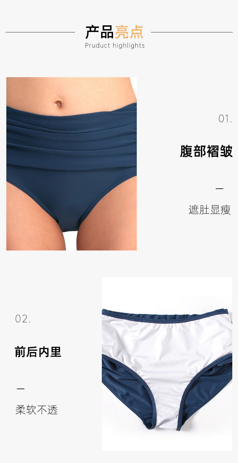 Lulu Zasuy European and American Style Swim Trunks, High-Waisted, Elastic, Ruched, Body-Covering, Anti-Exposure Swimming Trunks for Women, Conservative Triangle Swim Trunks