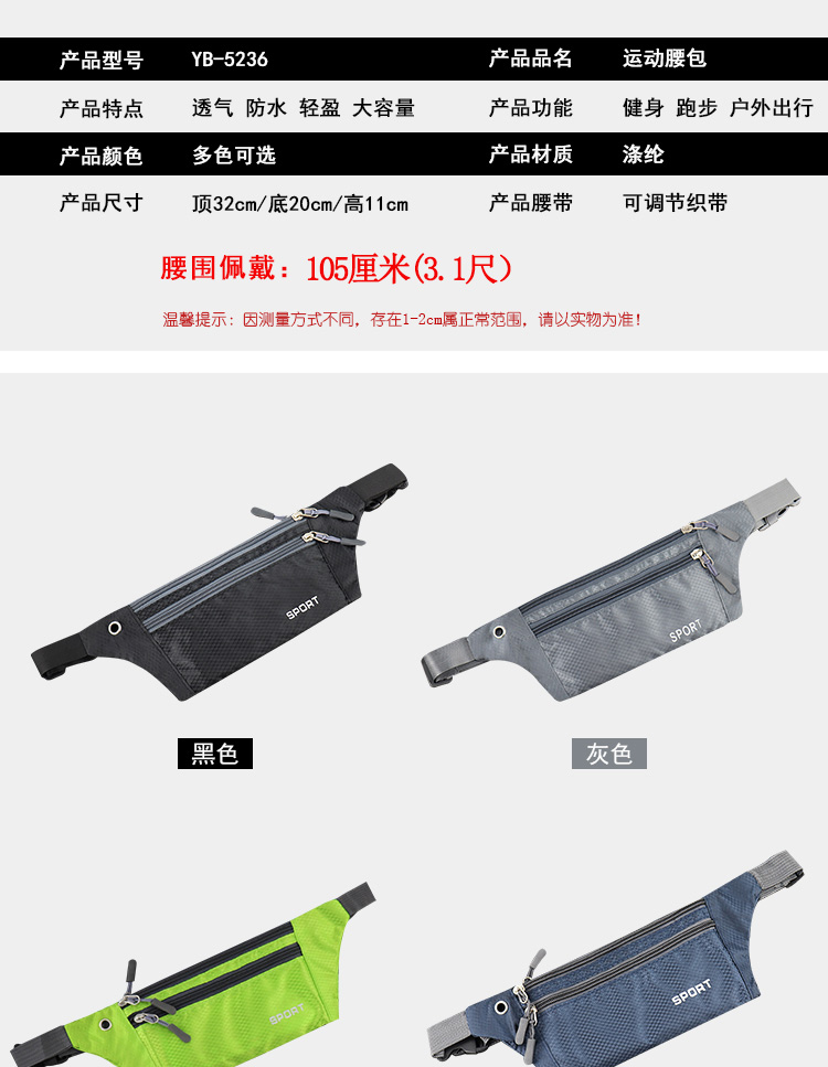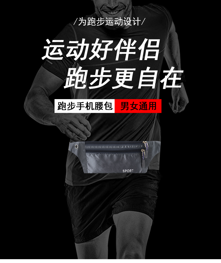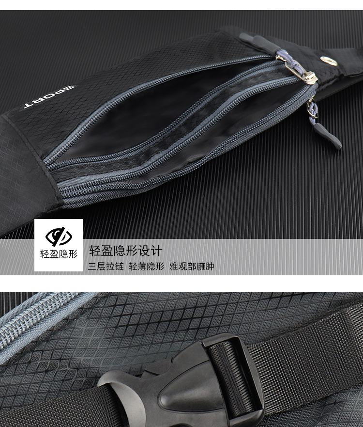 Sports Waist Bag, Thin, Running, Close-Fitting, Invisible, Waterproof, Fitness, Multi-Functional Mobile Phone Bag, Men and Women 7inch Mobile Phone Bag