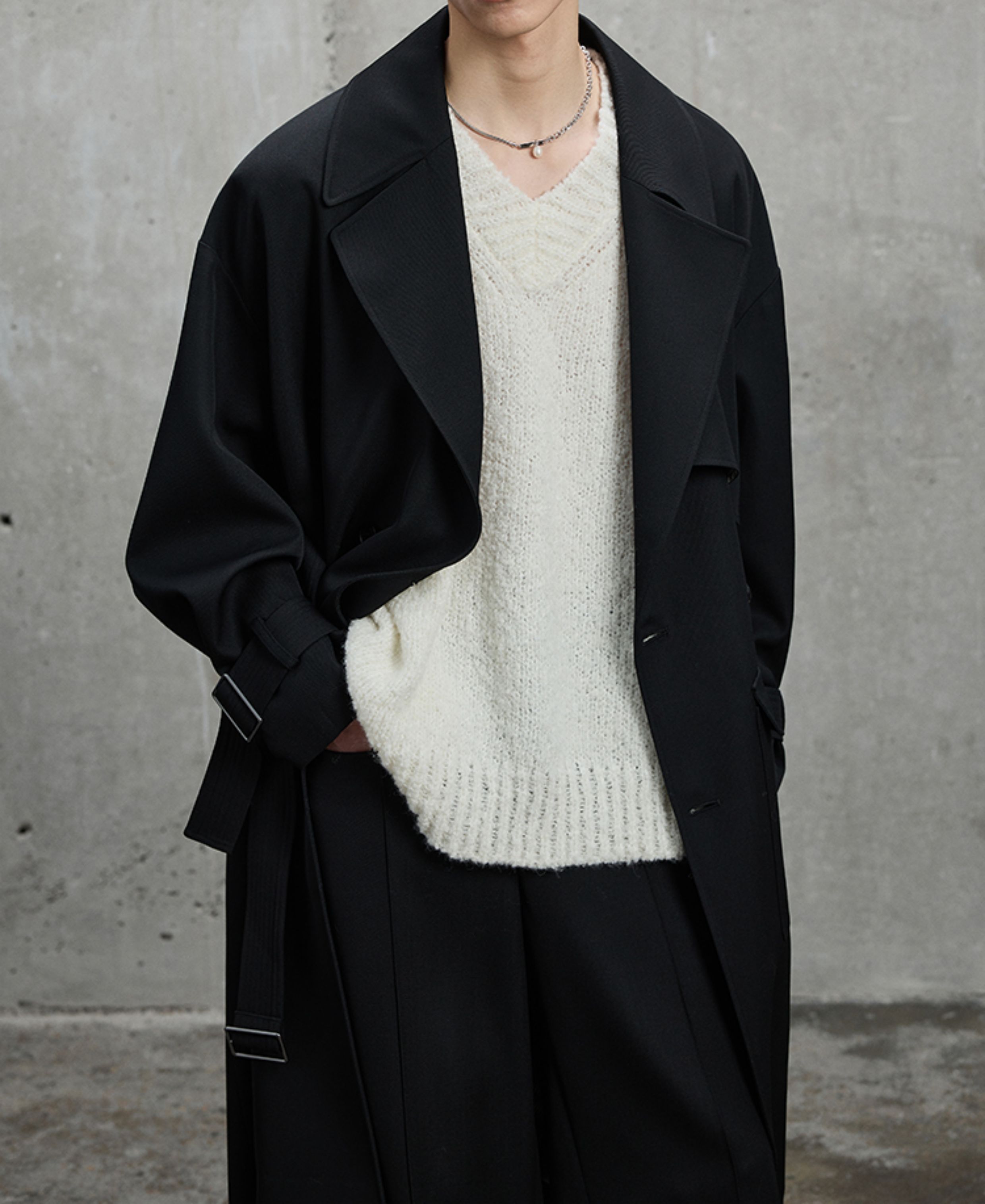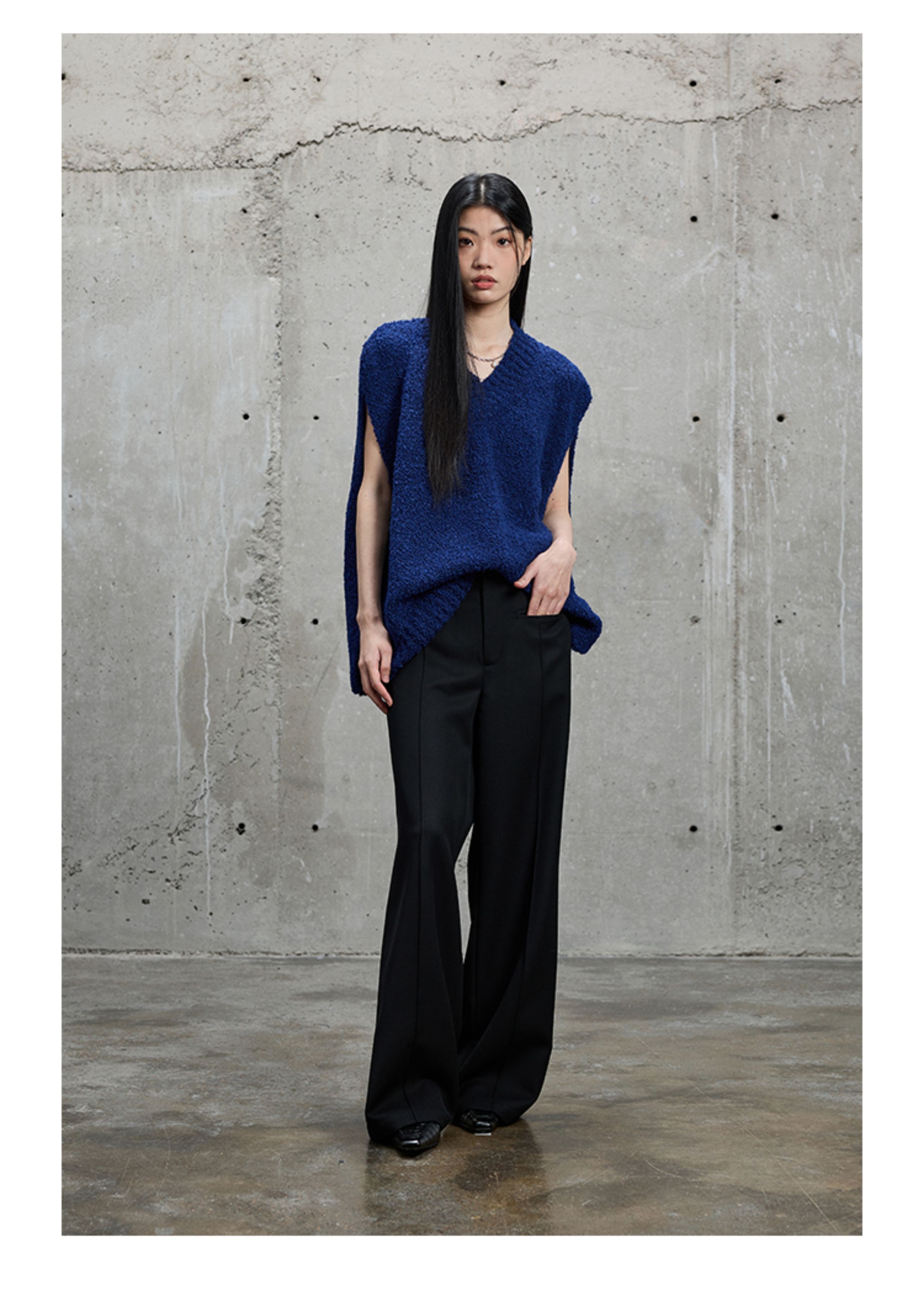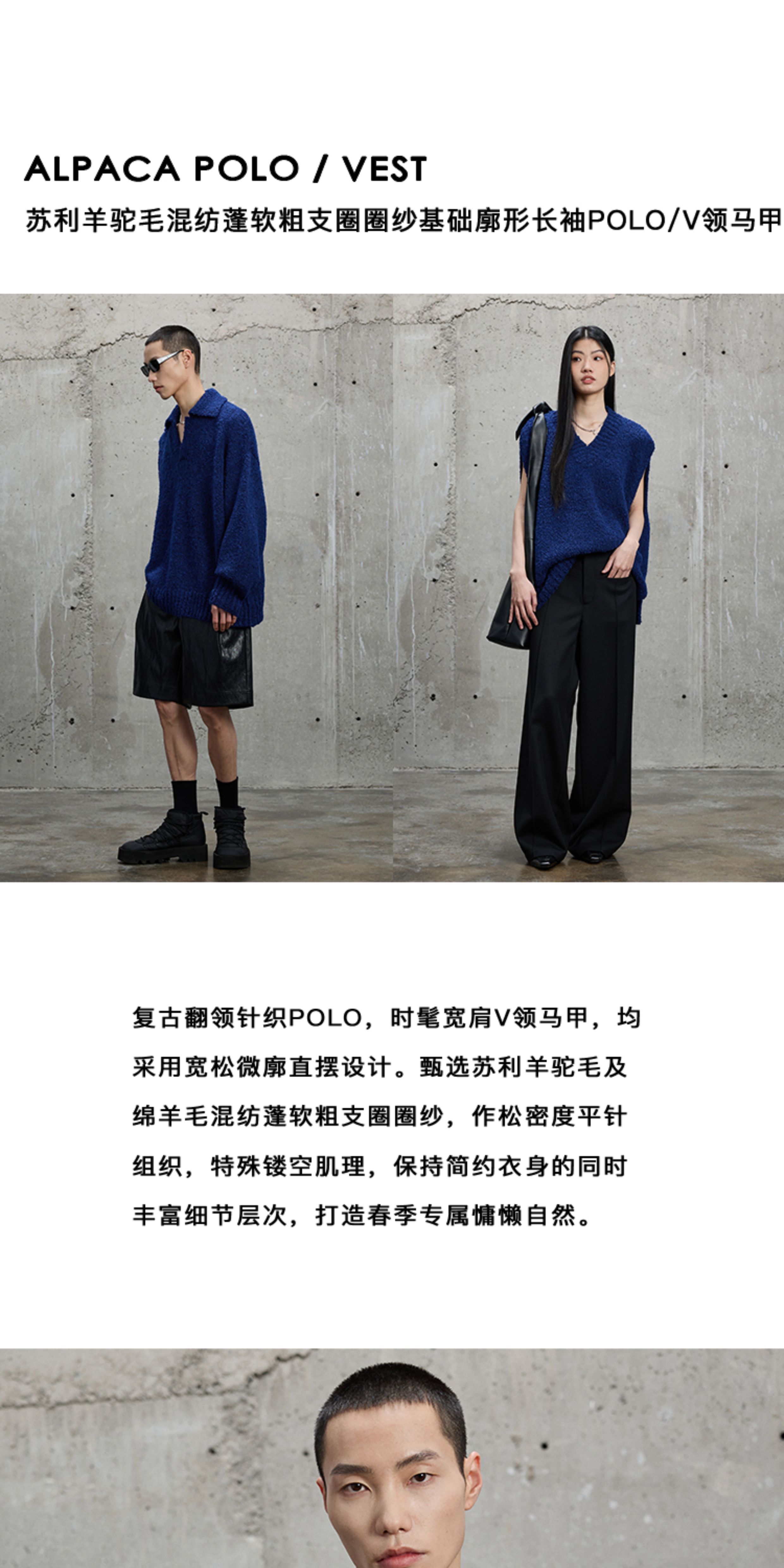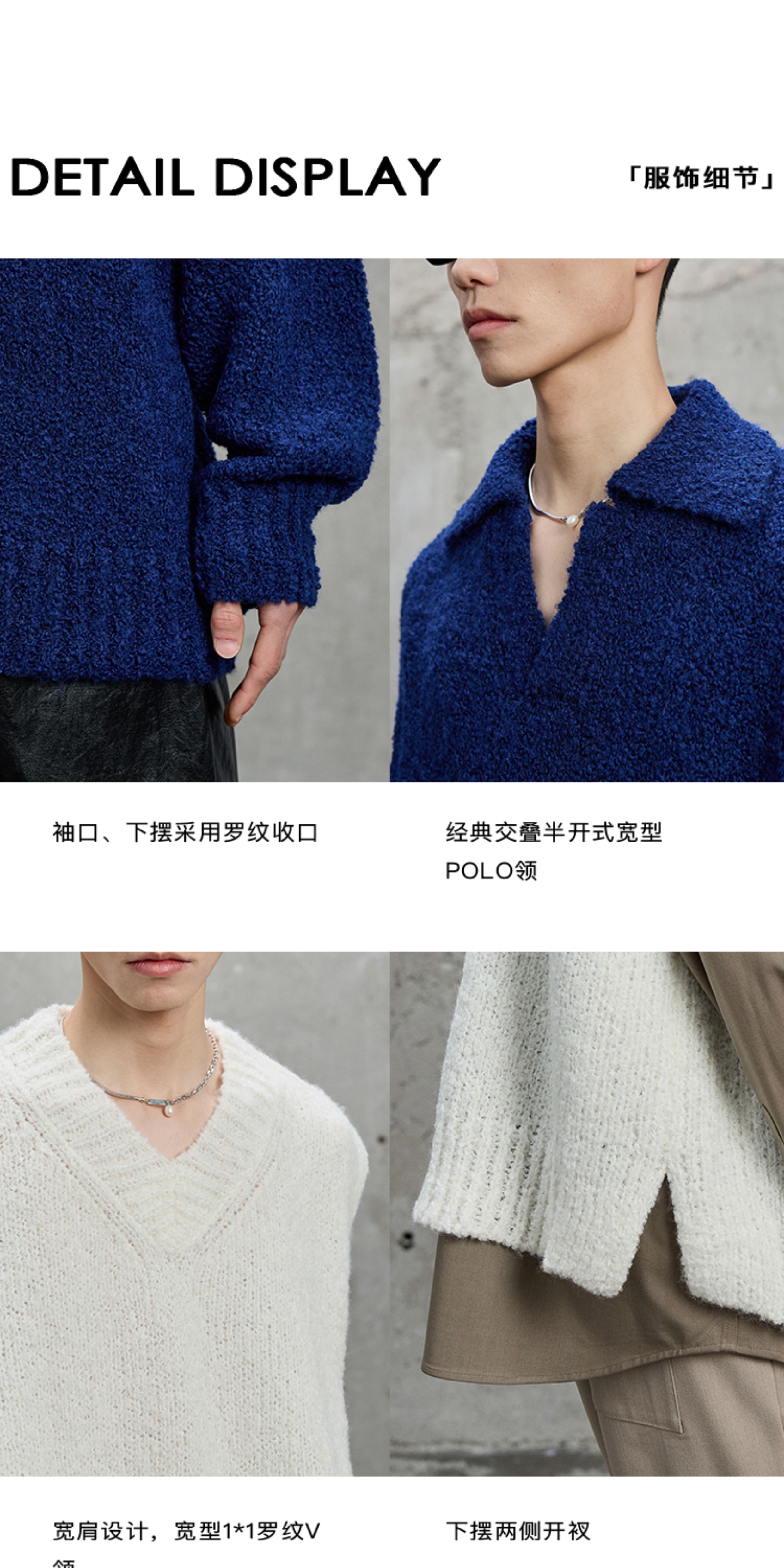 【Nans】Suli Alpaca Wool Blend Soft Chunky Loop Yarn Basic Silhouette Long-Sleeve Polo/V-Neck Vest