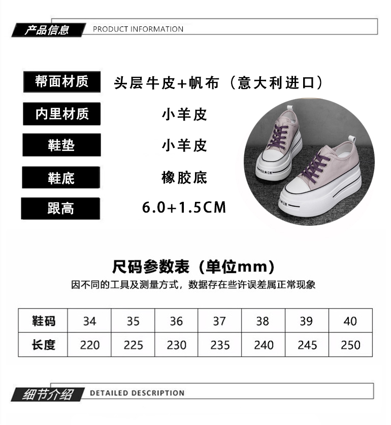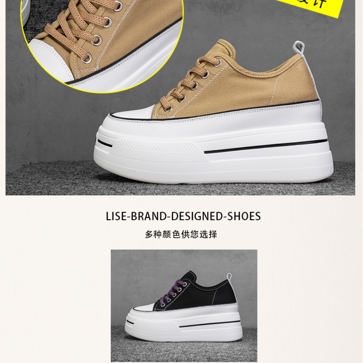 Hong Kong Thick-Soled Canvas Shoes for Women 2025 New Spring and Autumn Platform Low-Top Height-Increasing Women's Shoes Breathable Casual White Shoes