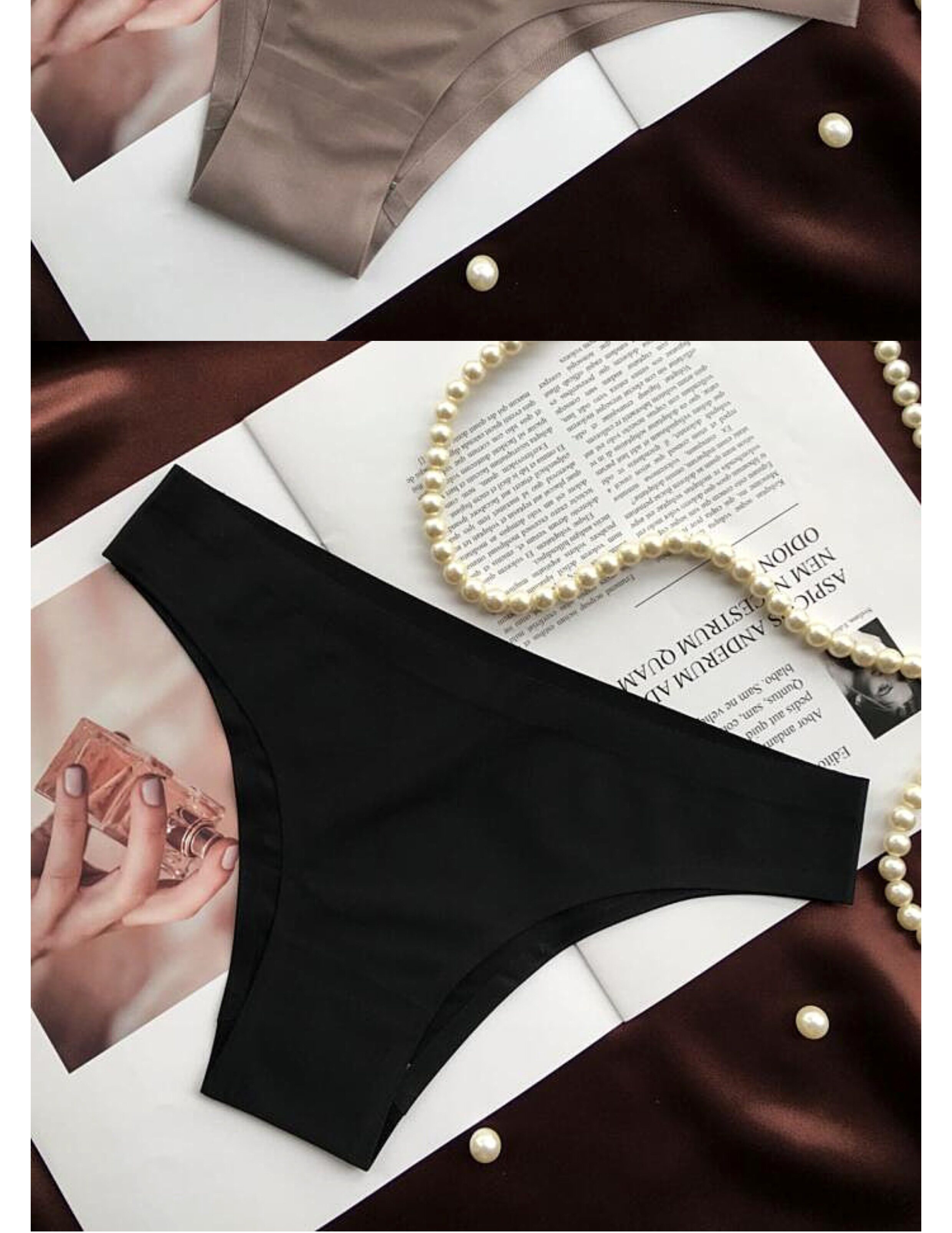 Luxurious European and American Style High-End Low-Waist Underwear for Women, One-Piece Seamless Glossy Thong T-Pants, Silky Adhesive Shorts