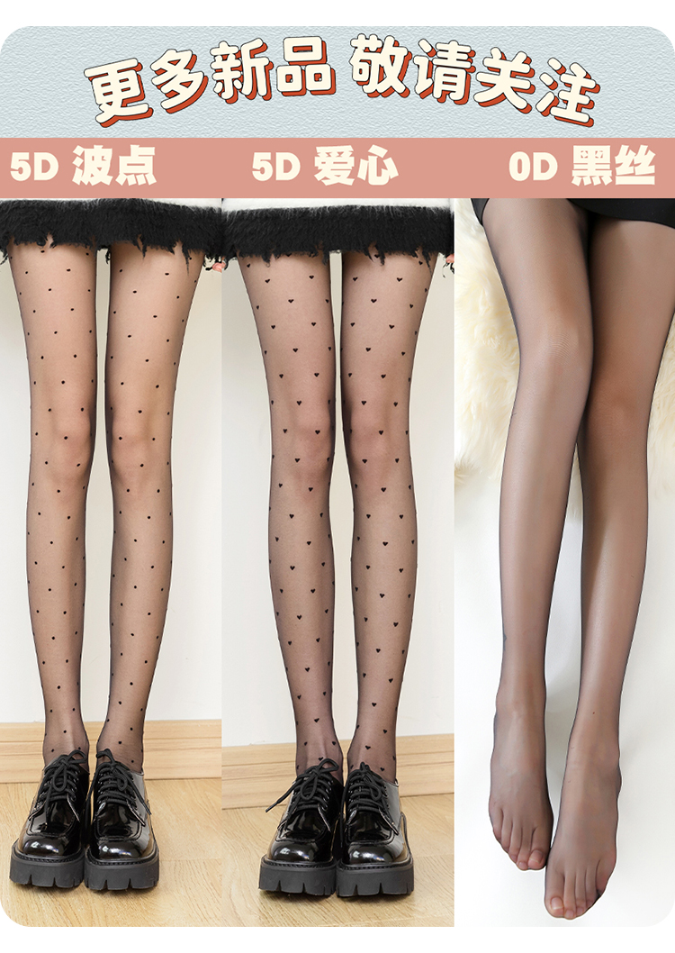 Polka Dot Stockings for Women in Spring and Autumn, Thin Black Dotted Pantyhose, 0D Black Sheer Pantyhose, Heart-Shaped Black Stockings