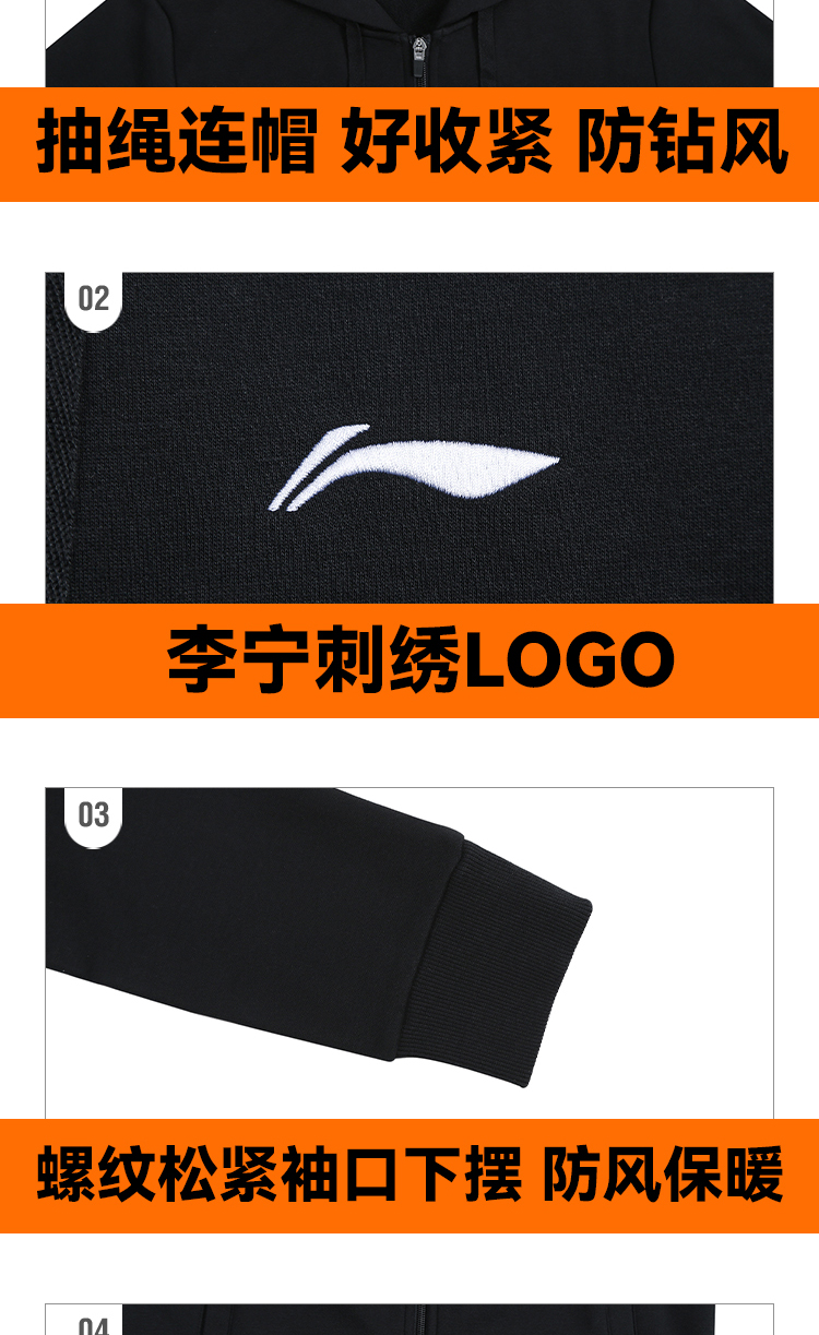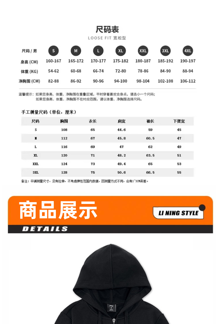 Li-Ning Men's Sweatshirt Jacket 2025 Spring and Autumn New Cardigan Hooded Sports Top Large Size Fleece-Lined Running Training Wear