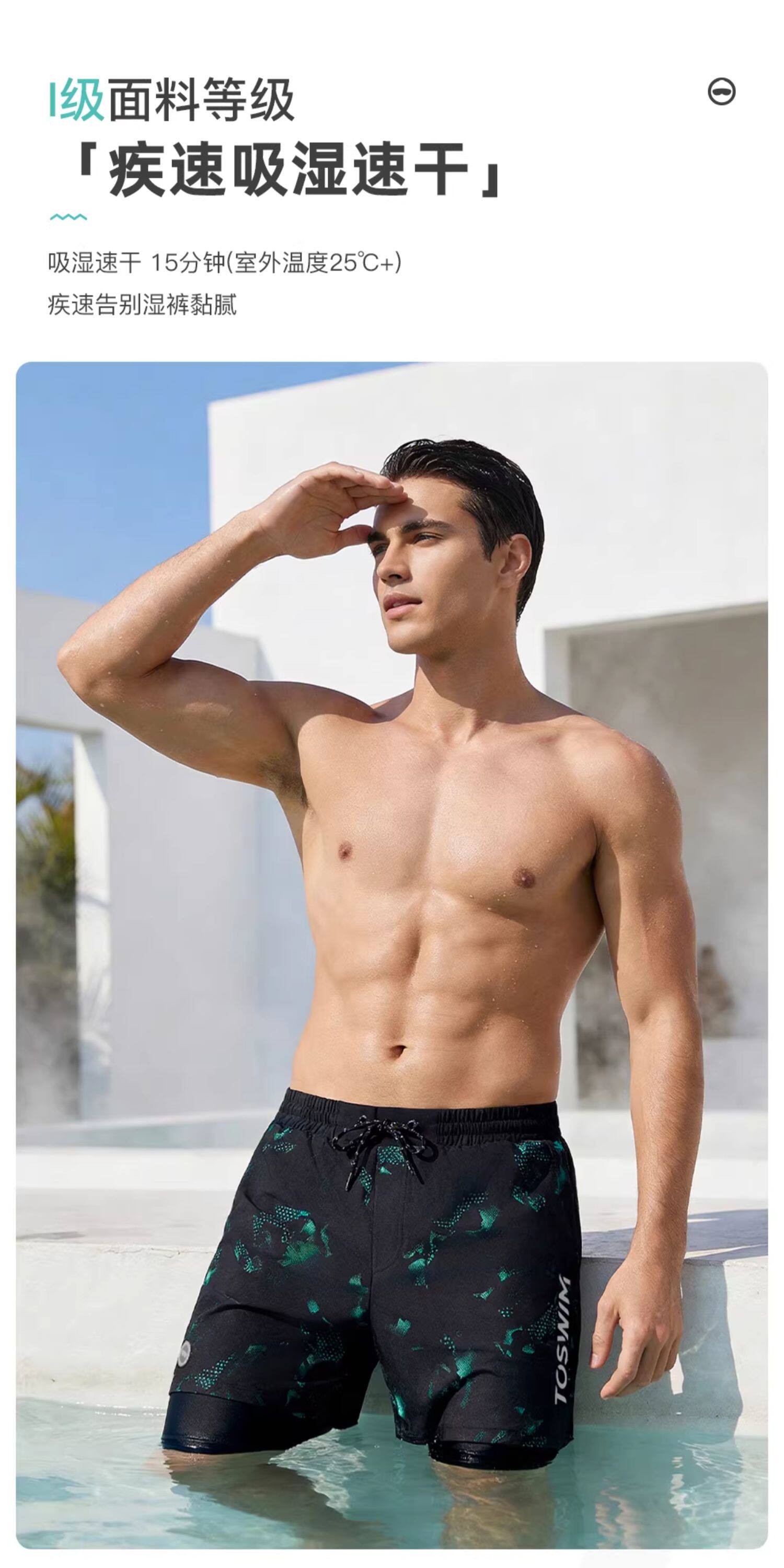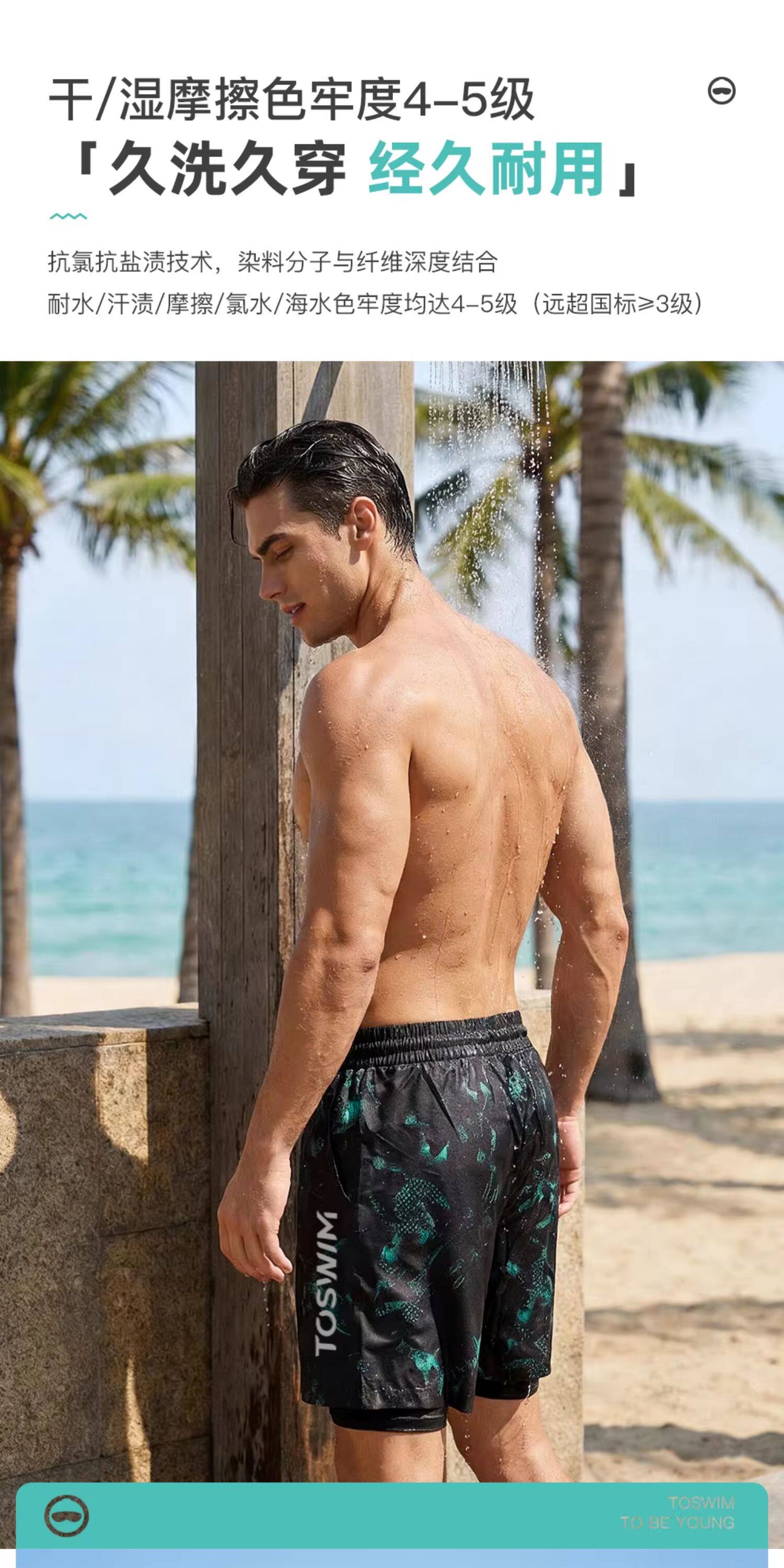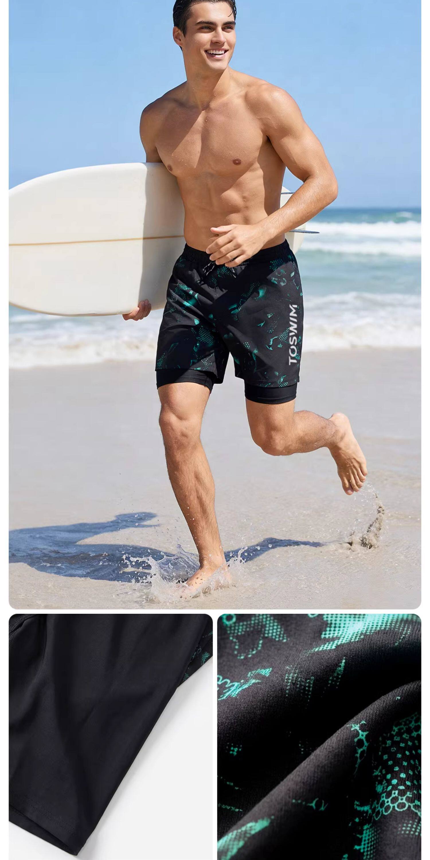 Toswim Men's Swim Trunks, Five-Point Length, Quick-Drying, Sun-Protective, Suitable for the Beach, Loose Fit, Anti-Embarrassment, Suitable for Hot Springs, Surfing, and Beach