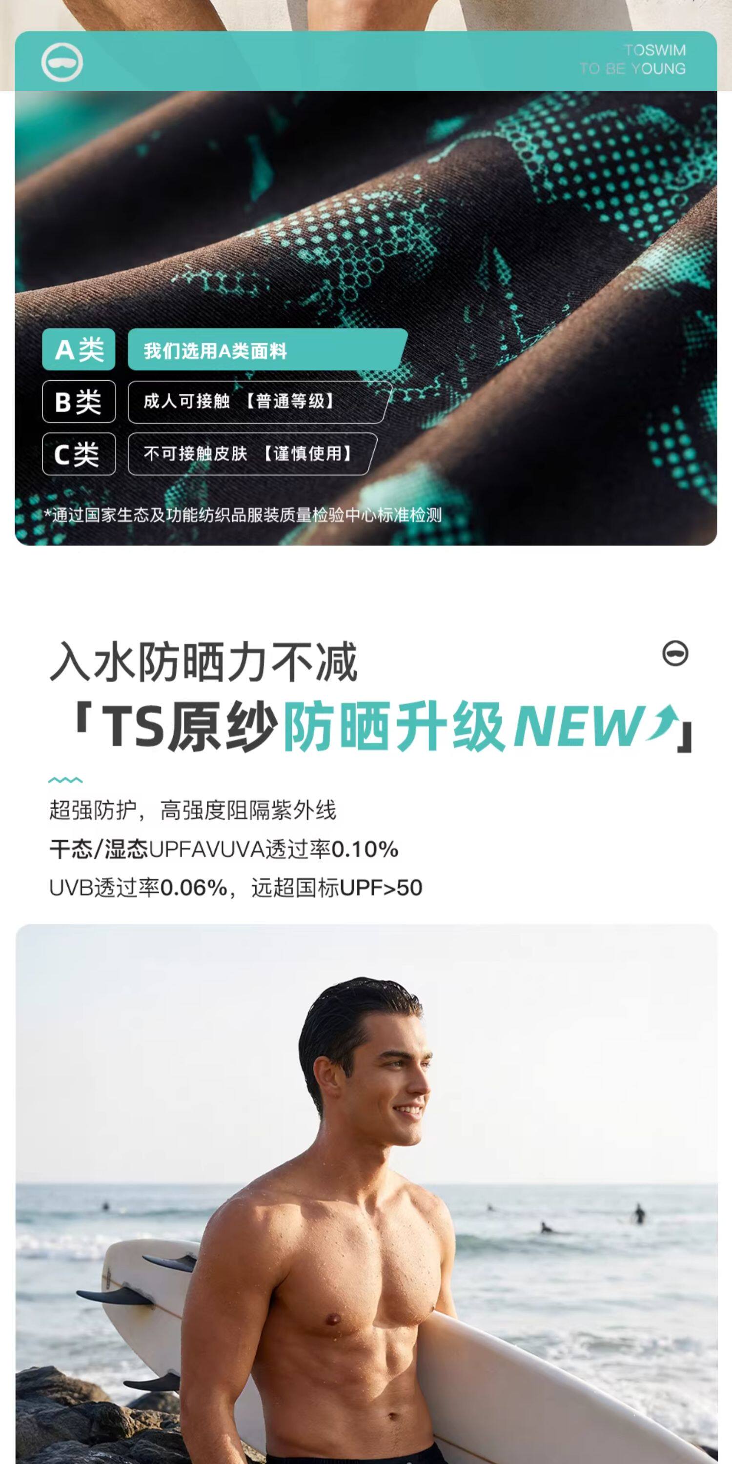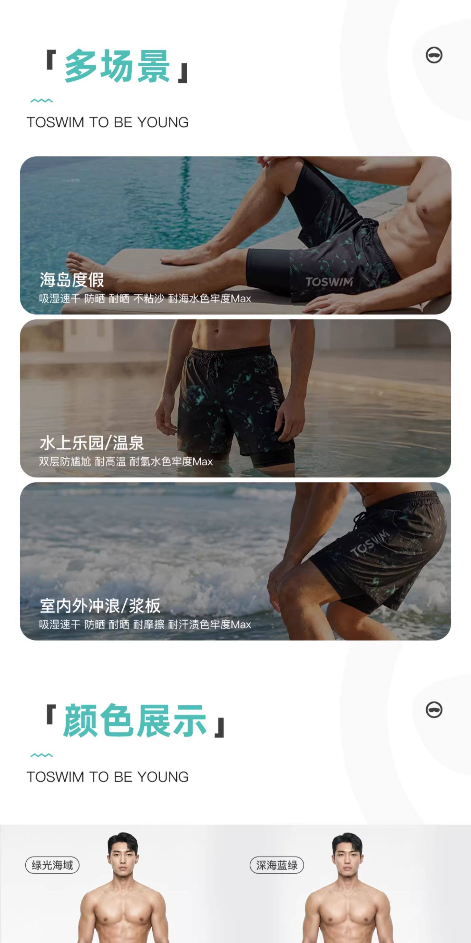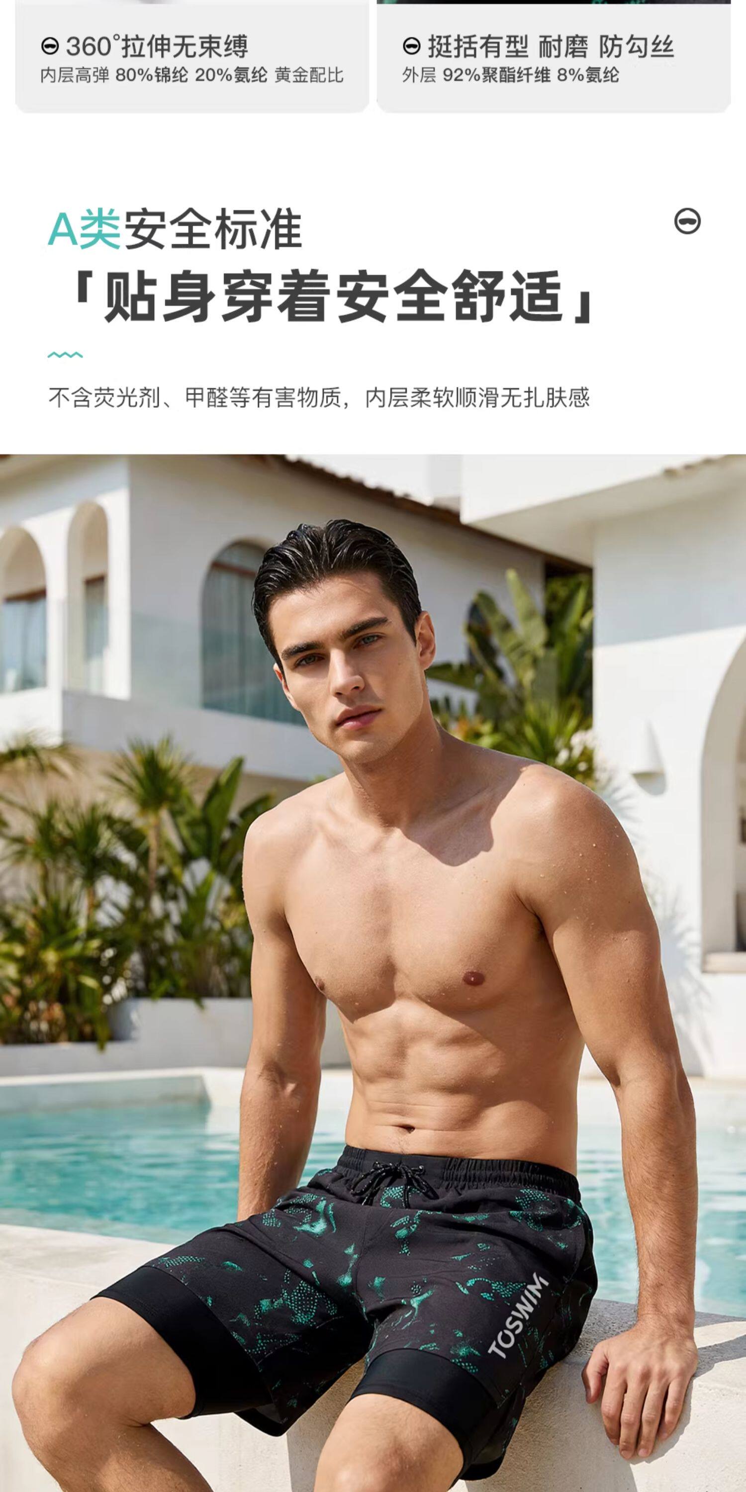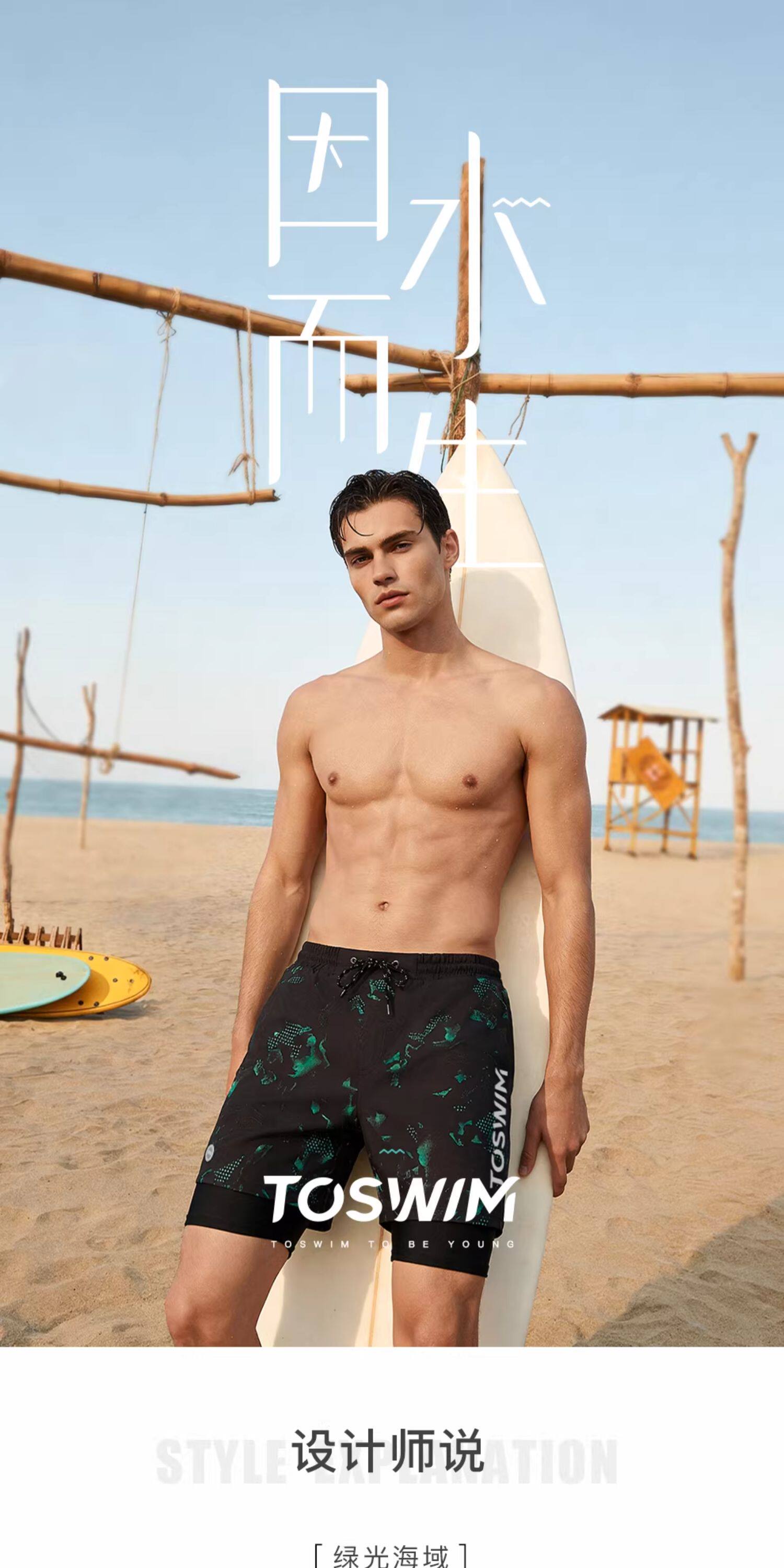 Toswim Men's Swim Trunks, Five-Point Length, Quick-Drying, Sun-Protective, Suitable for the Beach, Loose Fit, Anti-Embarrassment, Suitable for Hot Springs, Surfing, and Beach
