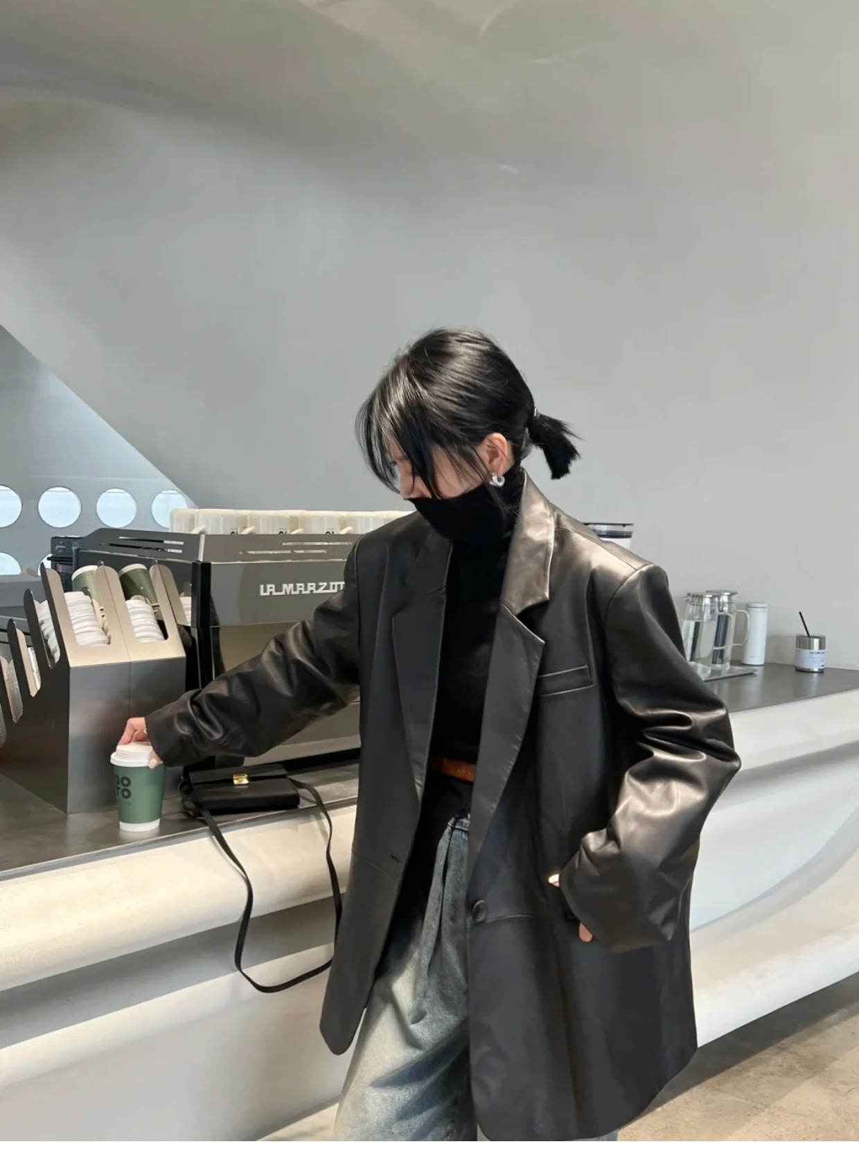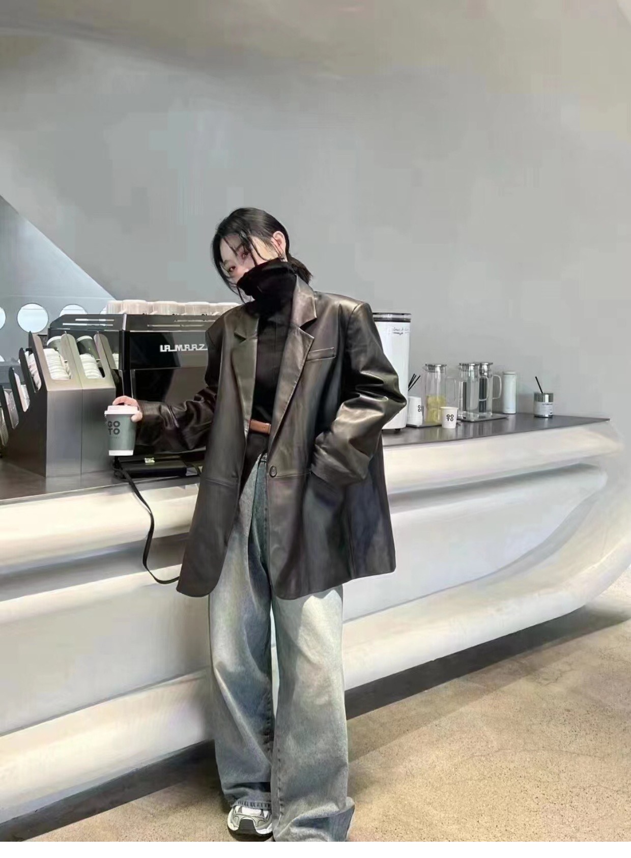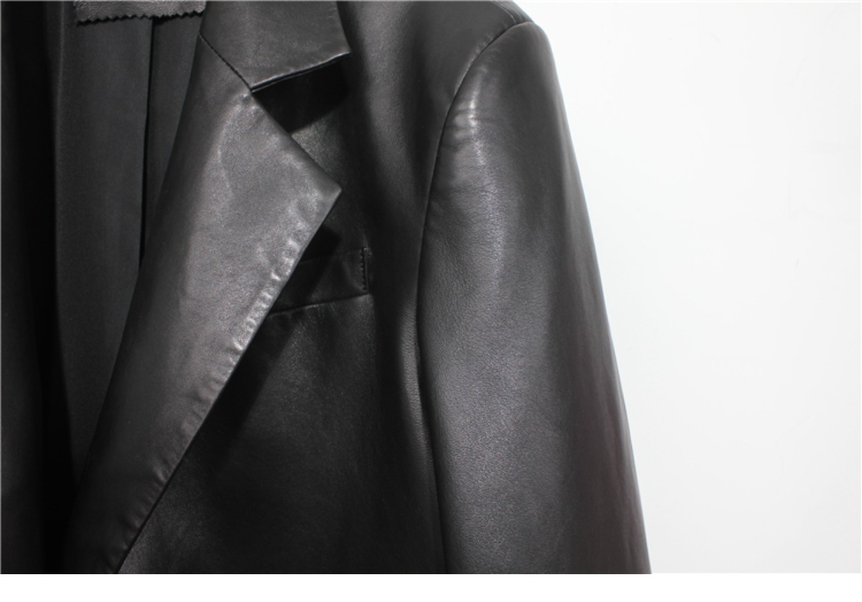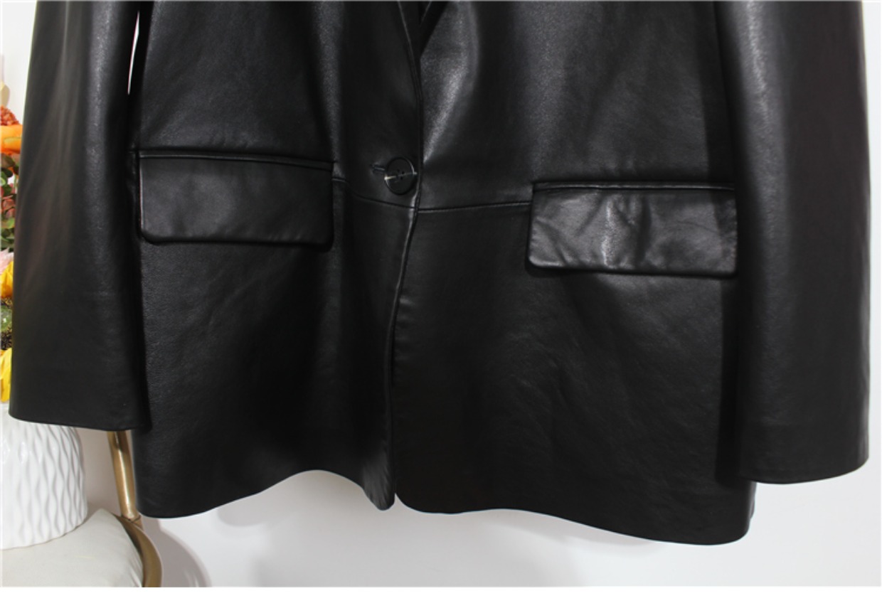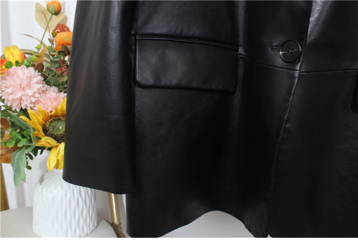 2025 New arrival Spring & Fall Loose Sheepskin Leather Women's Slim Looking Genuine Leather Suit jacket Work Clothing Outwear Mid Length Long Length